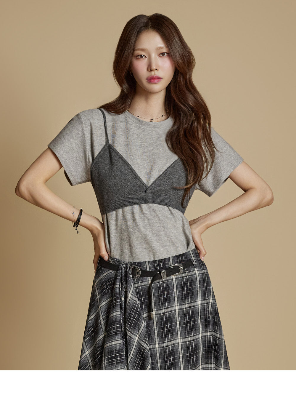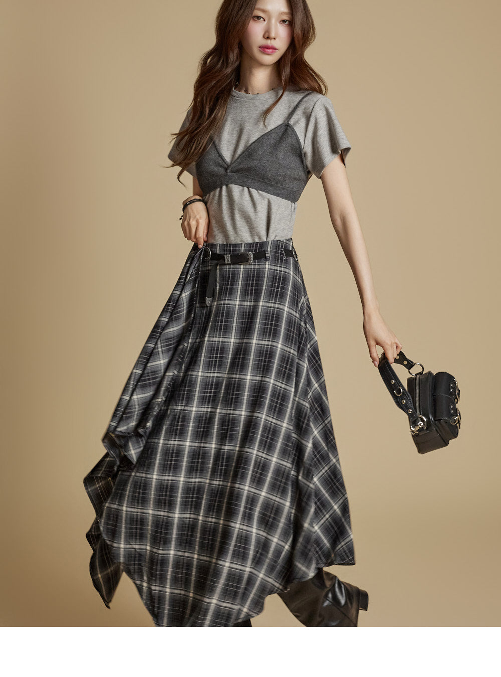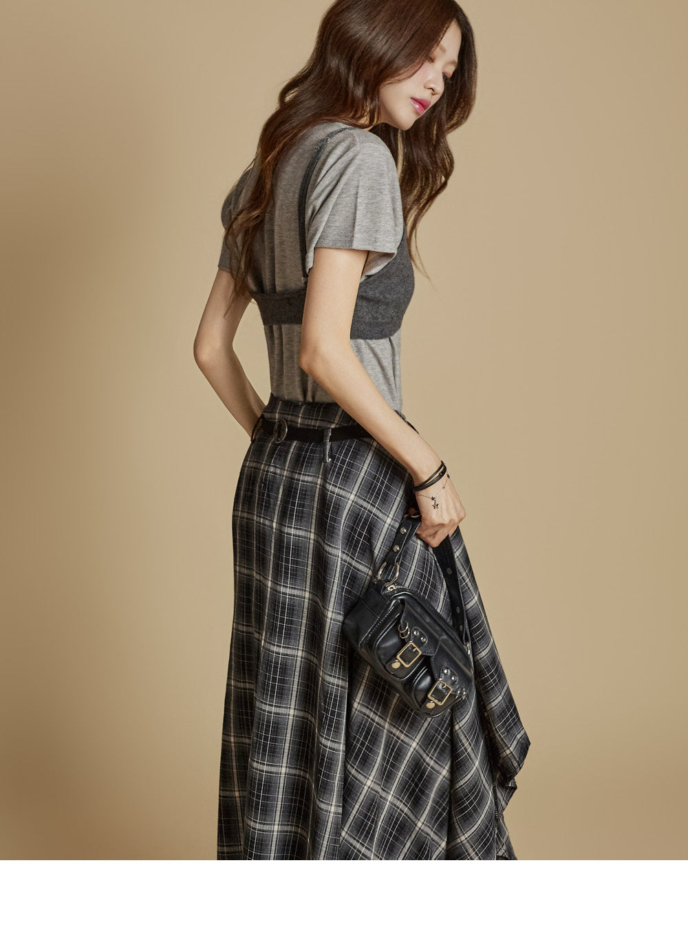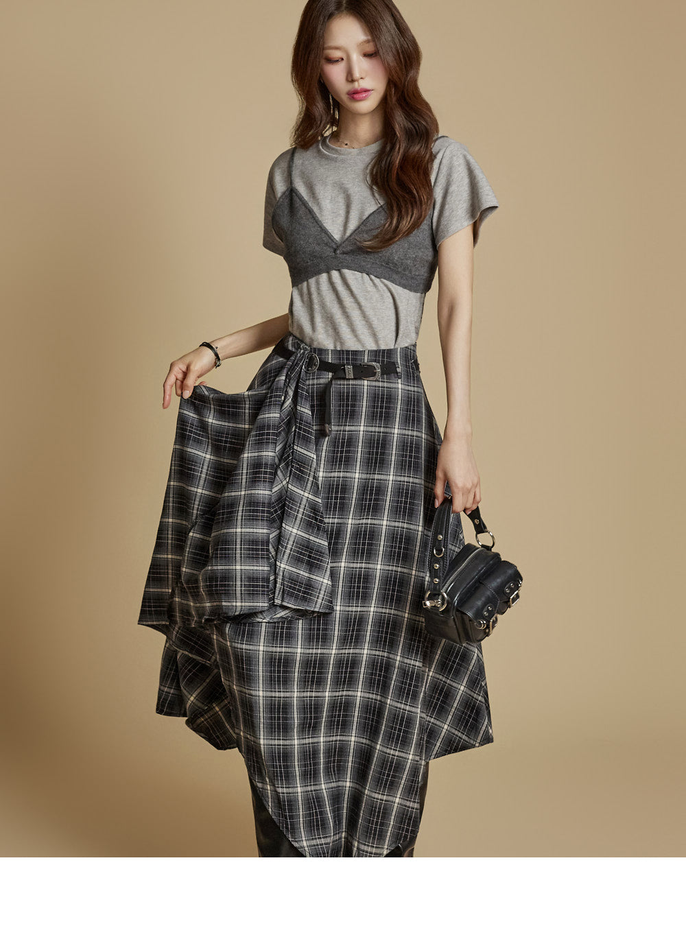 The model is 171cm tall and wears ONE size in charcoal.