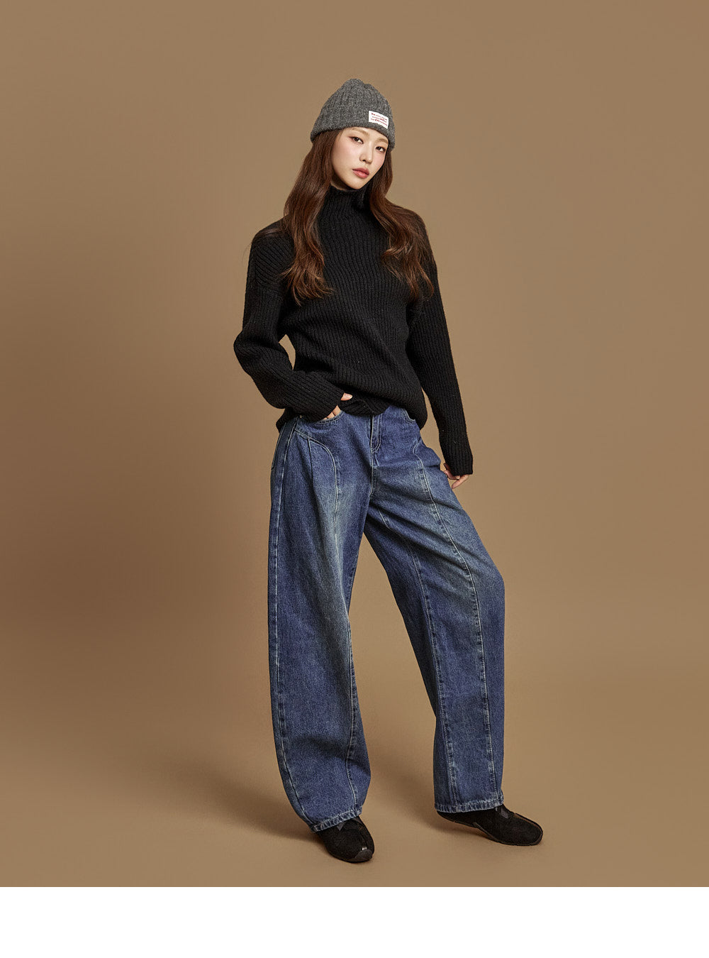 and the vertical ribbed weave and loose fit