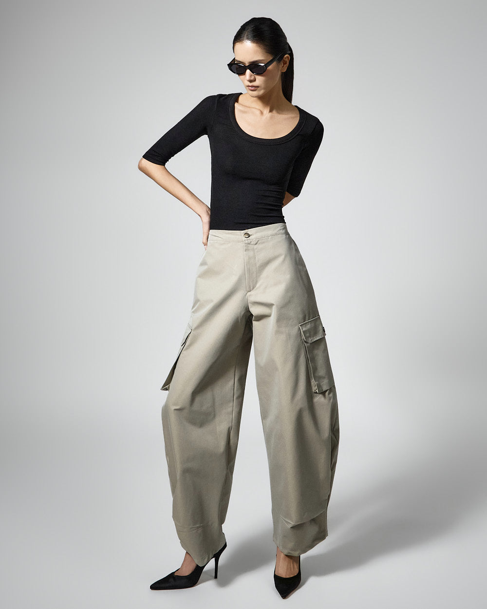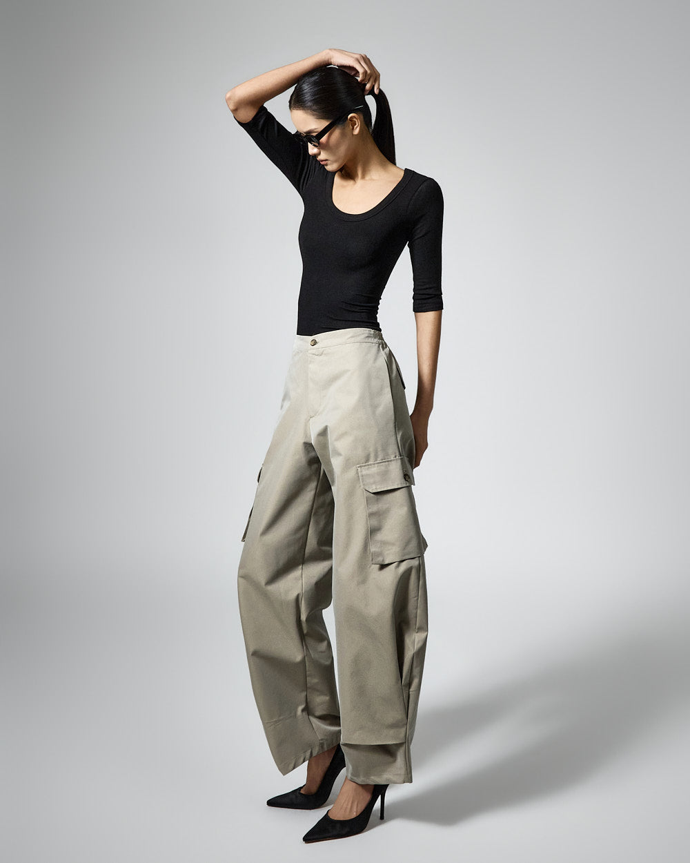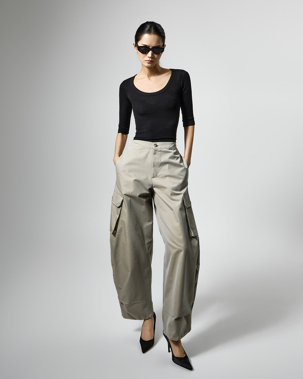 The 173cm model is wearing size ONE in BLACK.