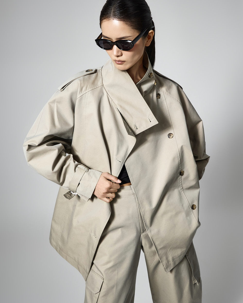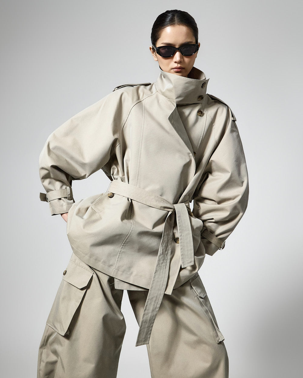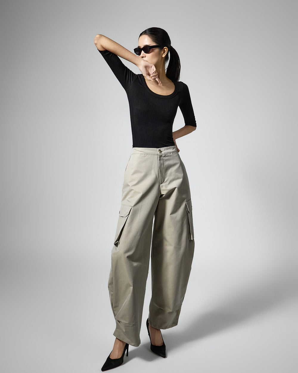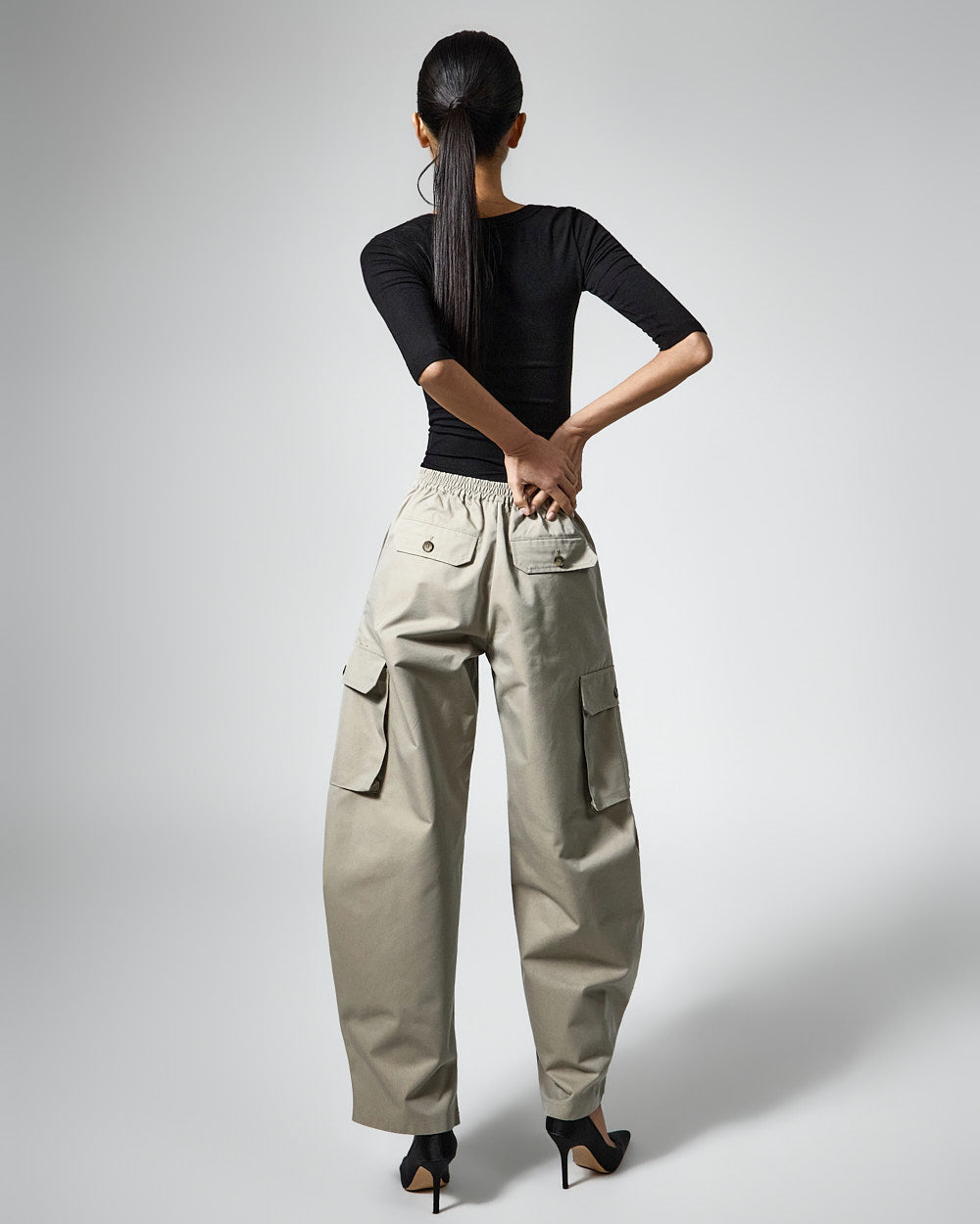 The 173cm model is wearing size ONE in BLACK.