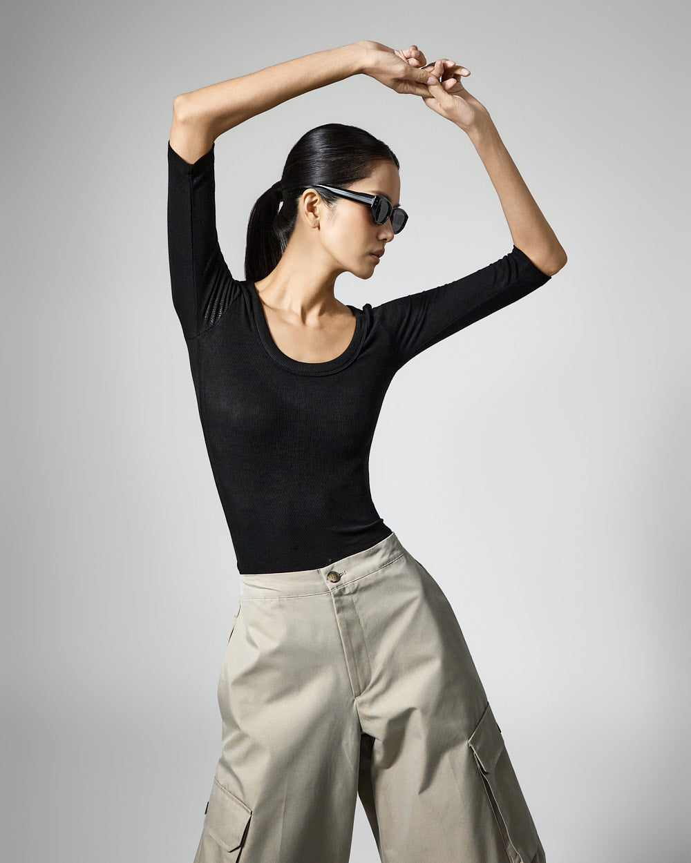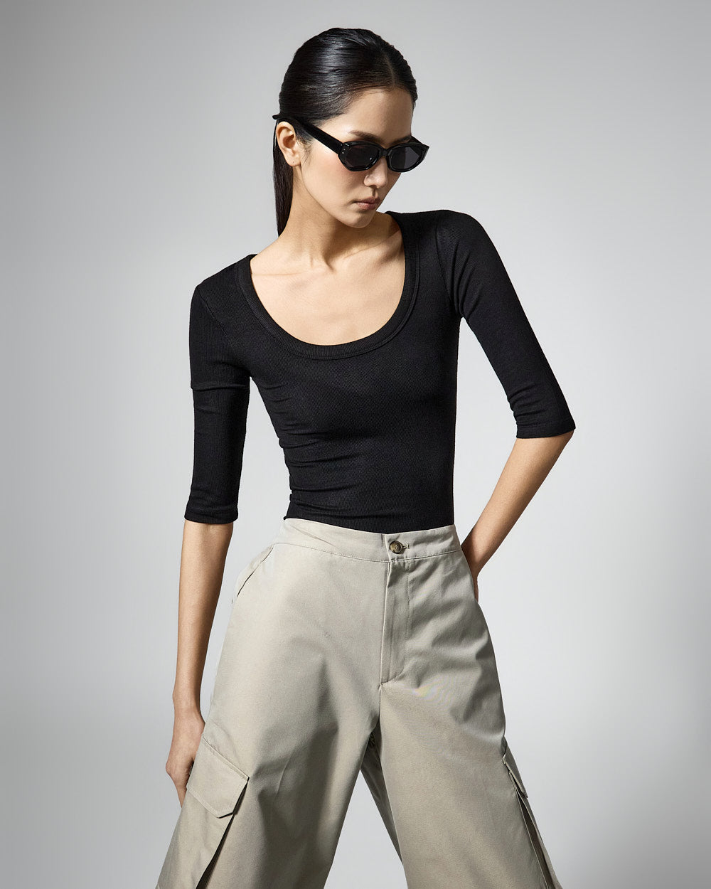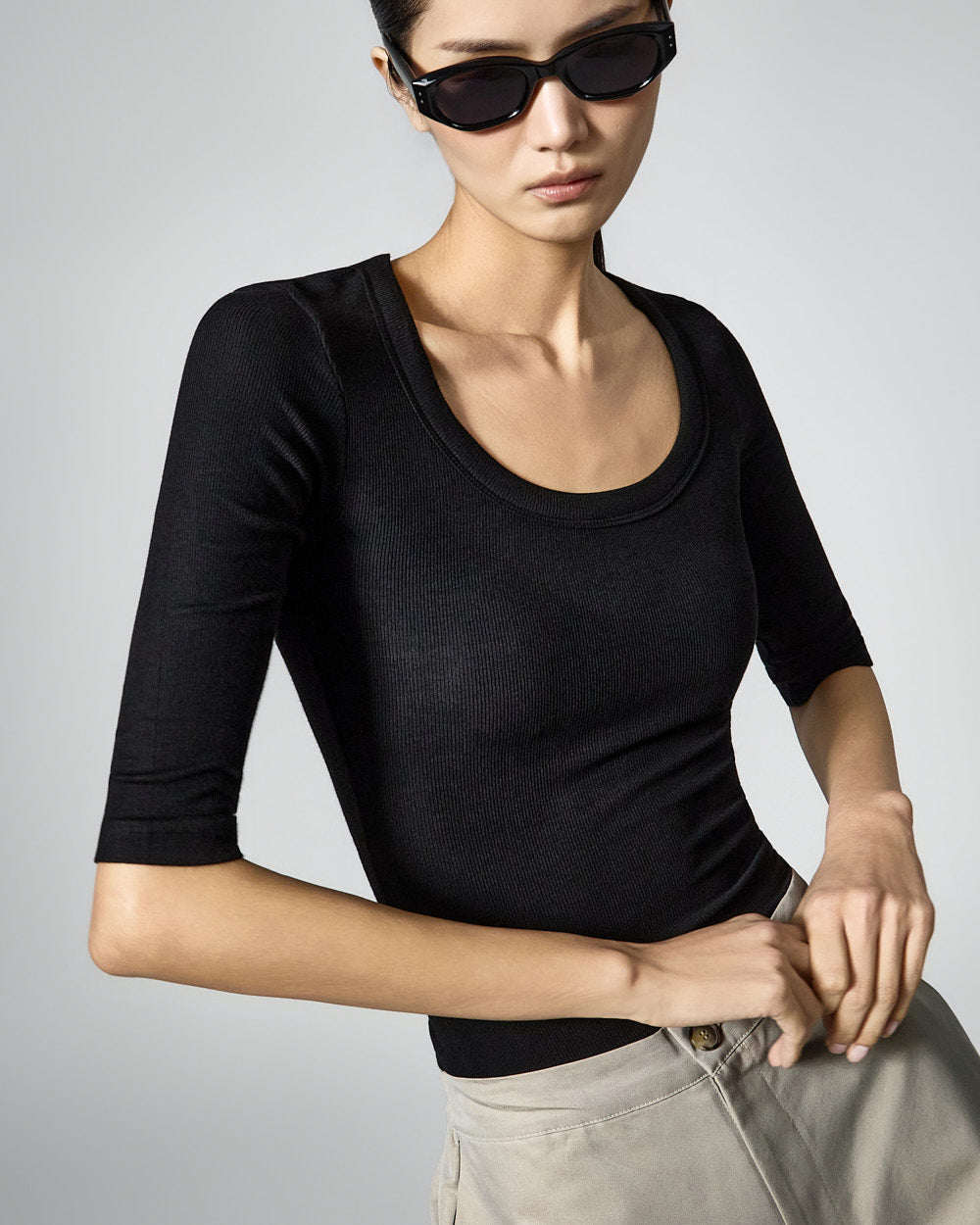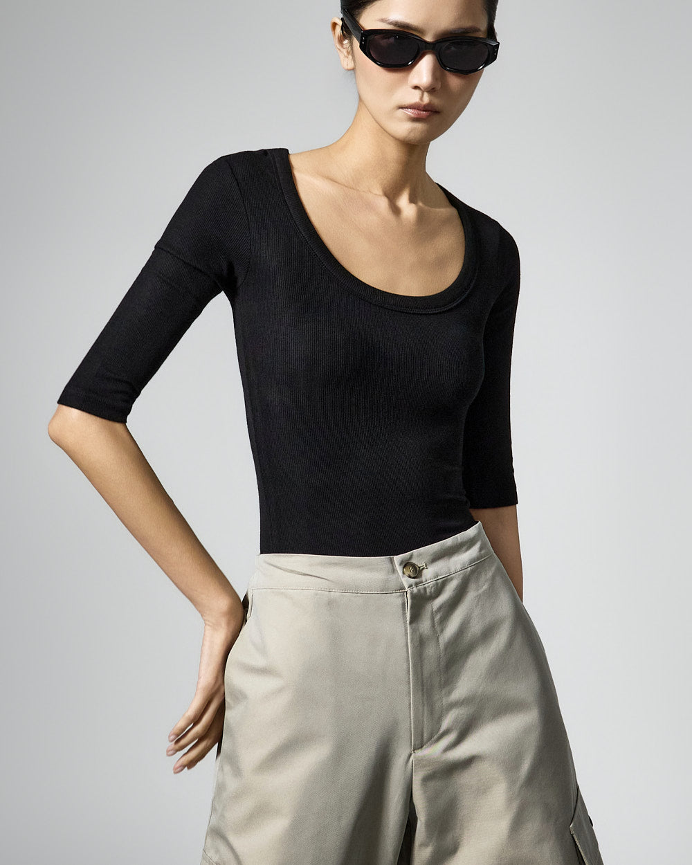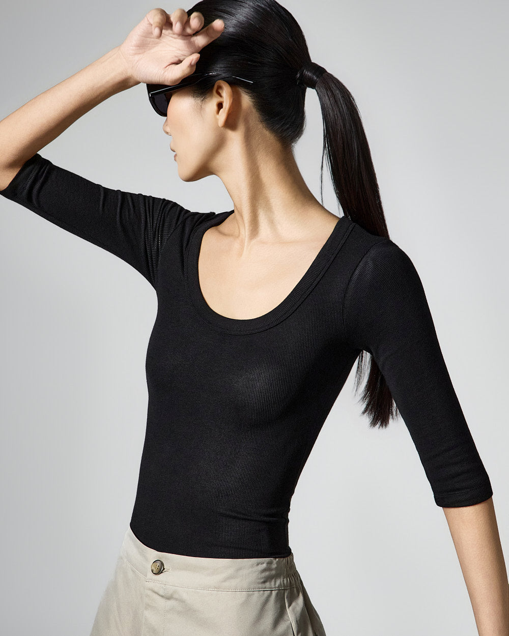 This slim U-neck top has a casual vibe.