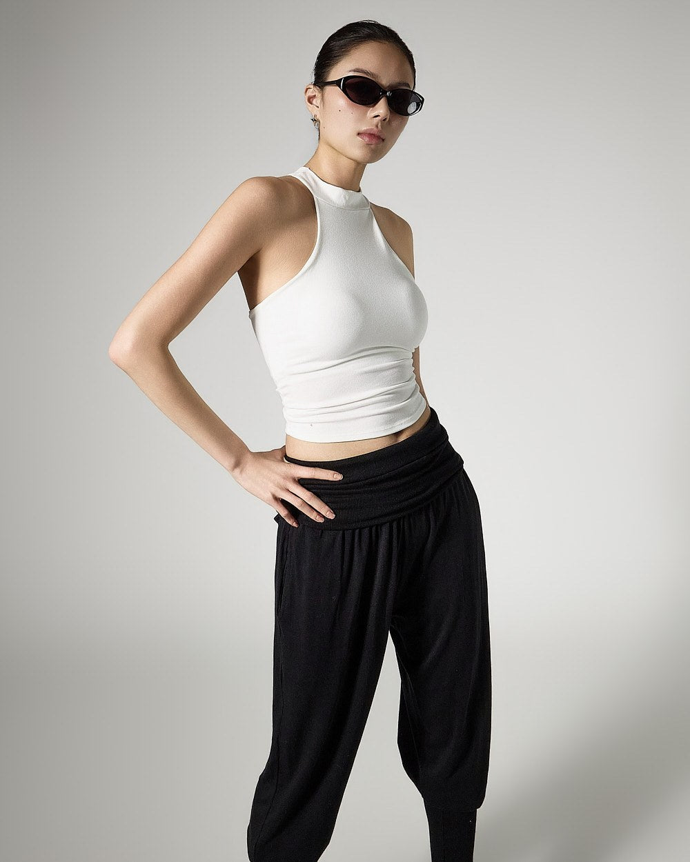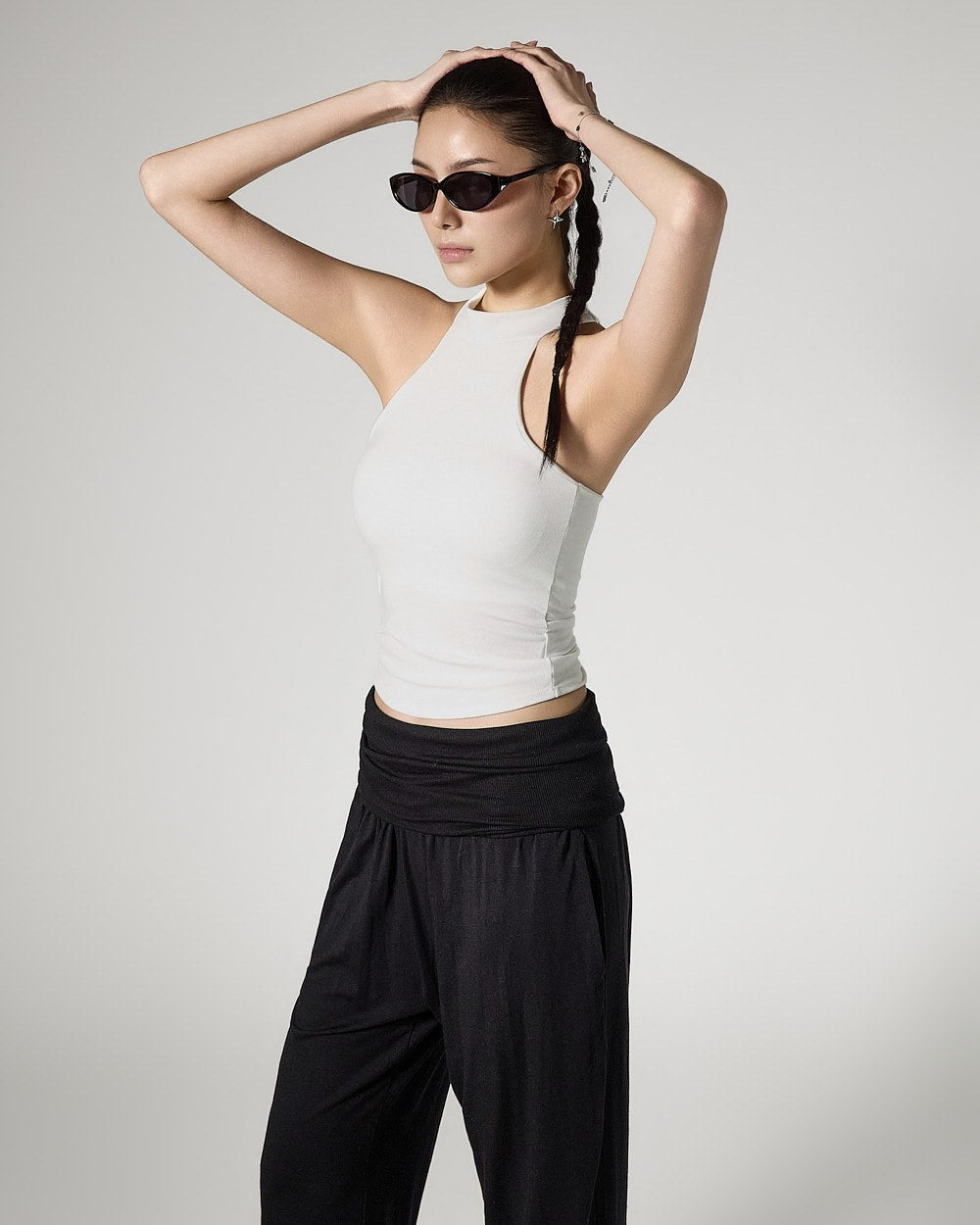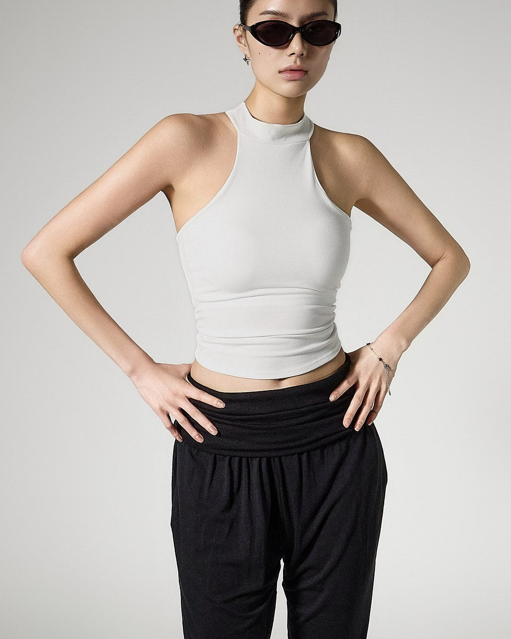 and as a halter-neck cropped sleeveless top,