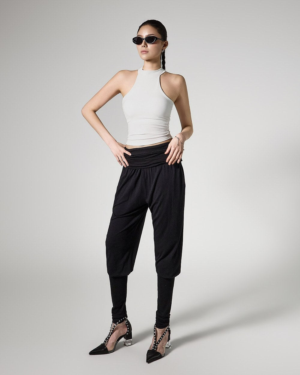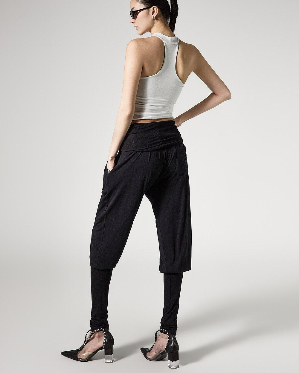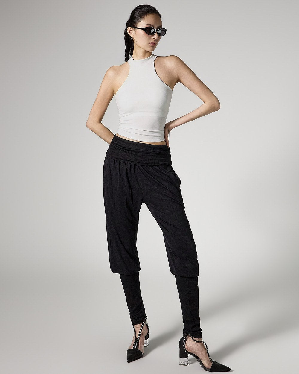 and as a halter-neck cropped sleeveless top,