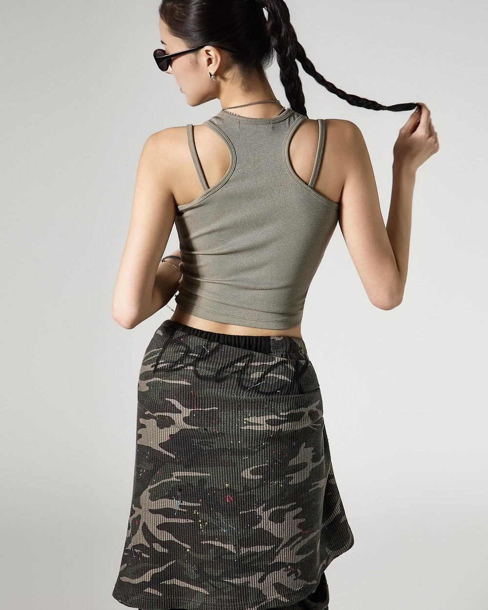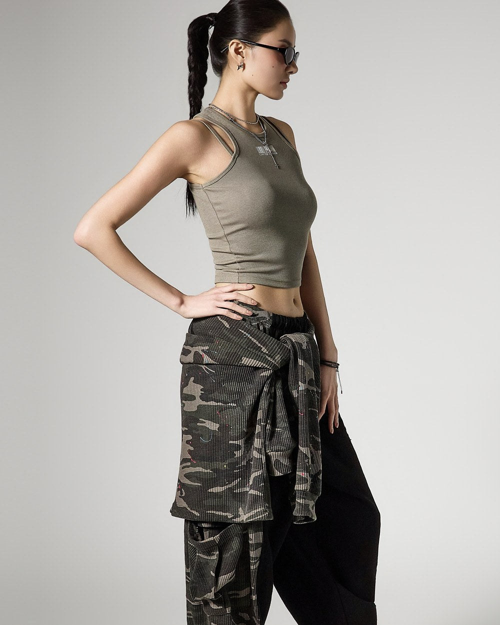 This is a sleeveless top with a modern vibe.