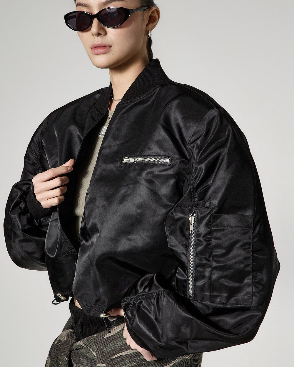 Model 171cm is wearing size ONE in the KHAKI color.