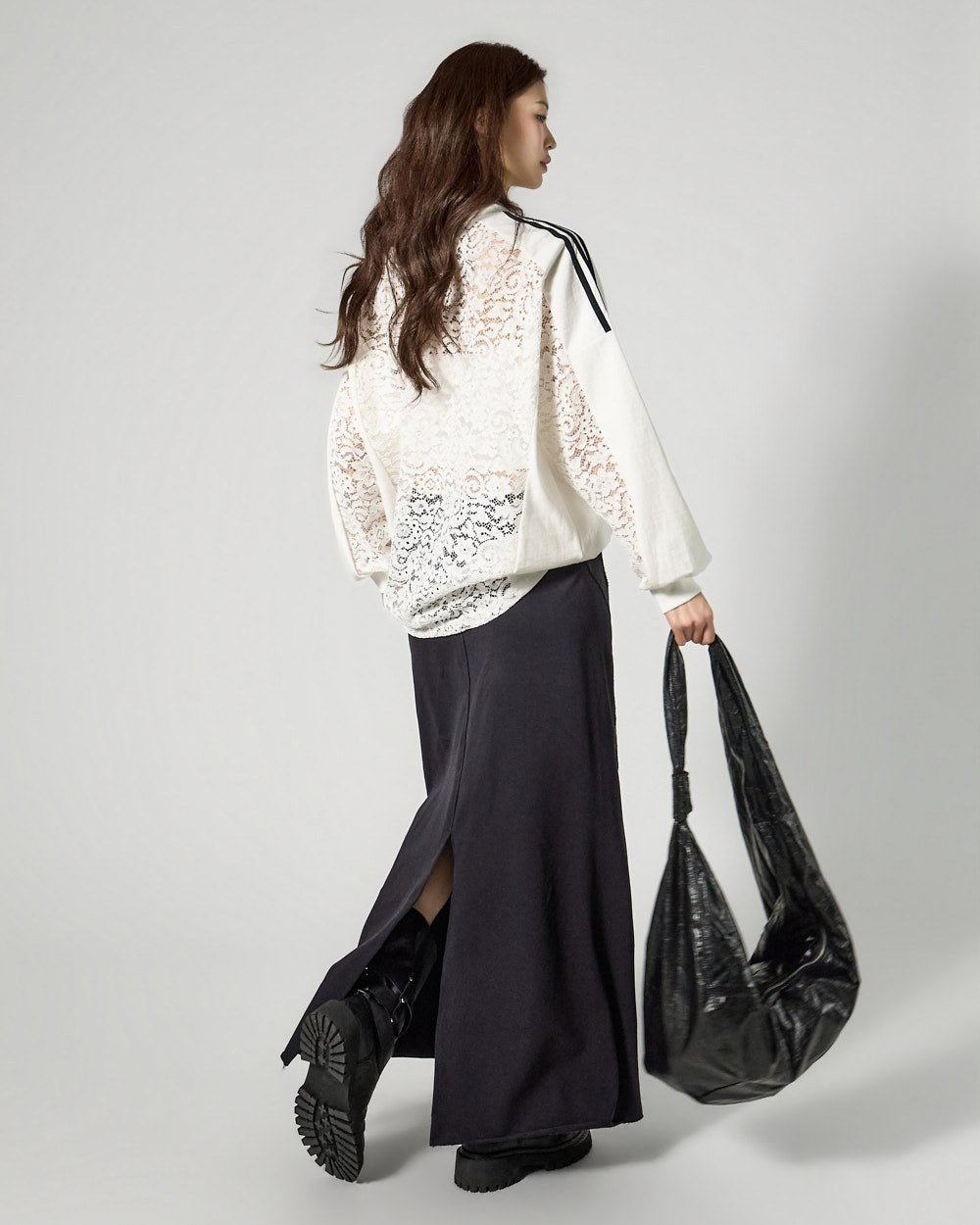 模特身高171cm,穿着ONE码,颜色为象牙白。