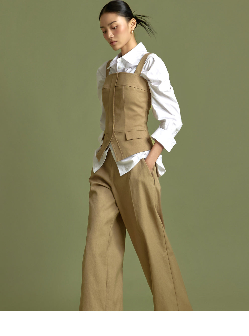 由聚酯纤维、Sorona、棉和亚麻混合制成,