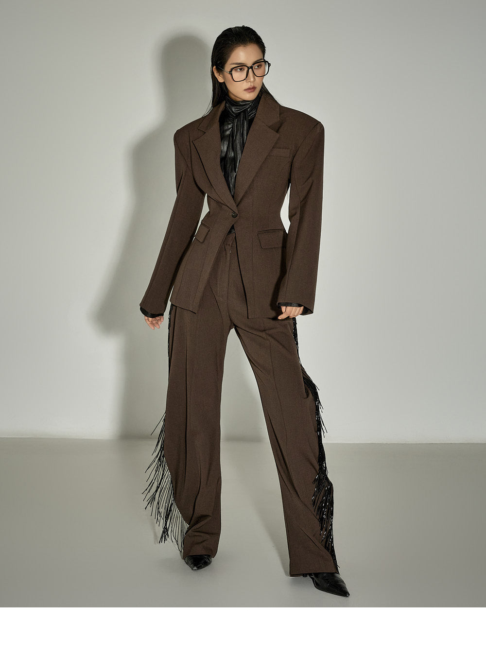 With moderate shoulder pads and a slim fit that hugs the waist,