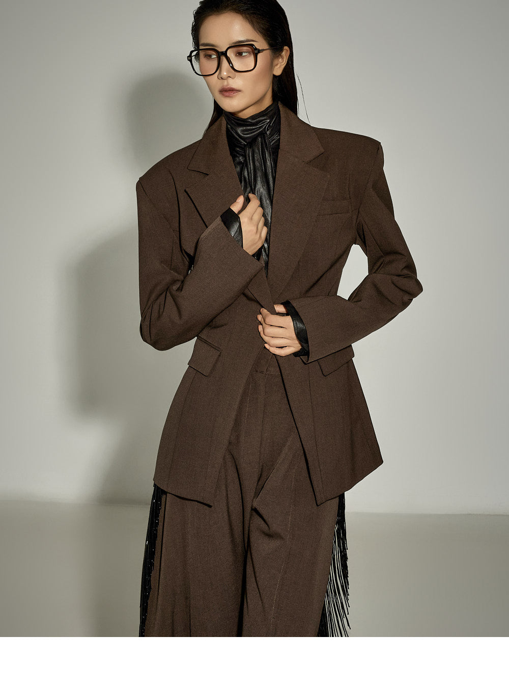 Model is 173cm and wearing size S, DARK BROWN.