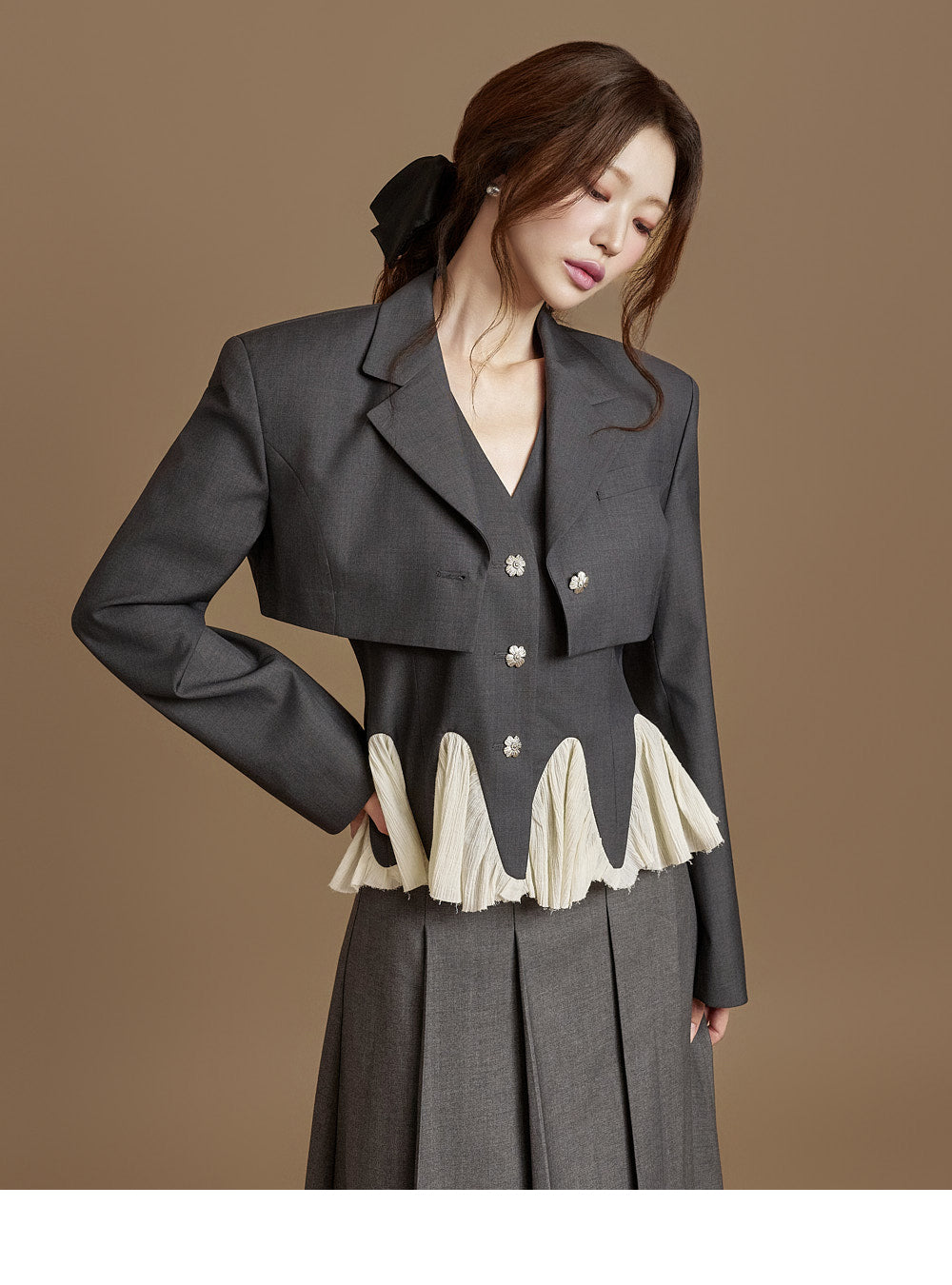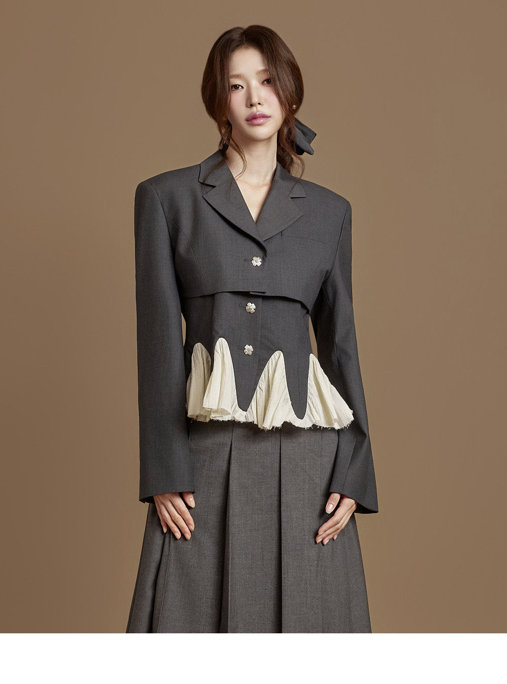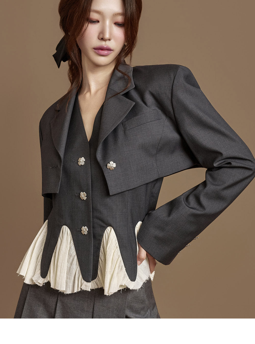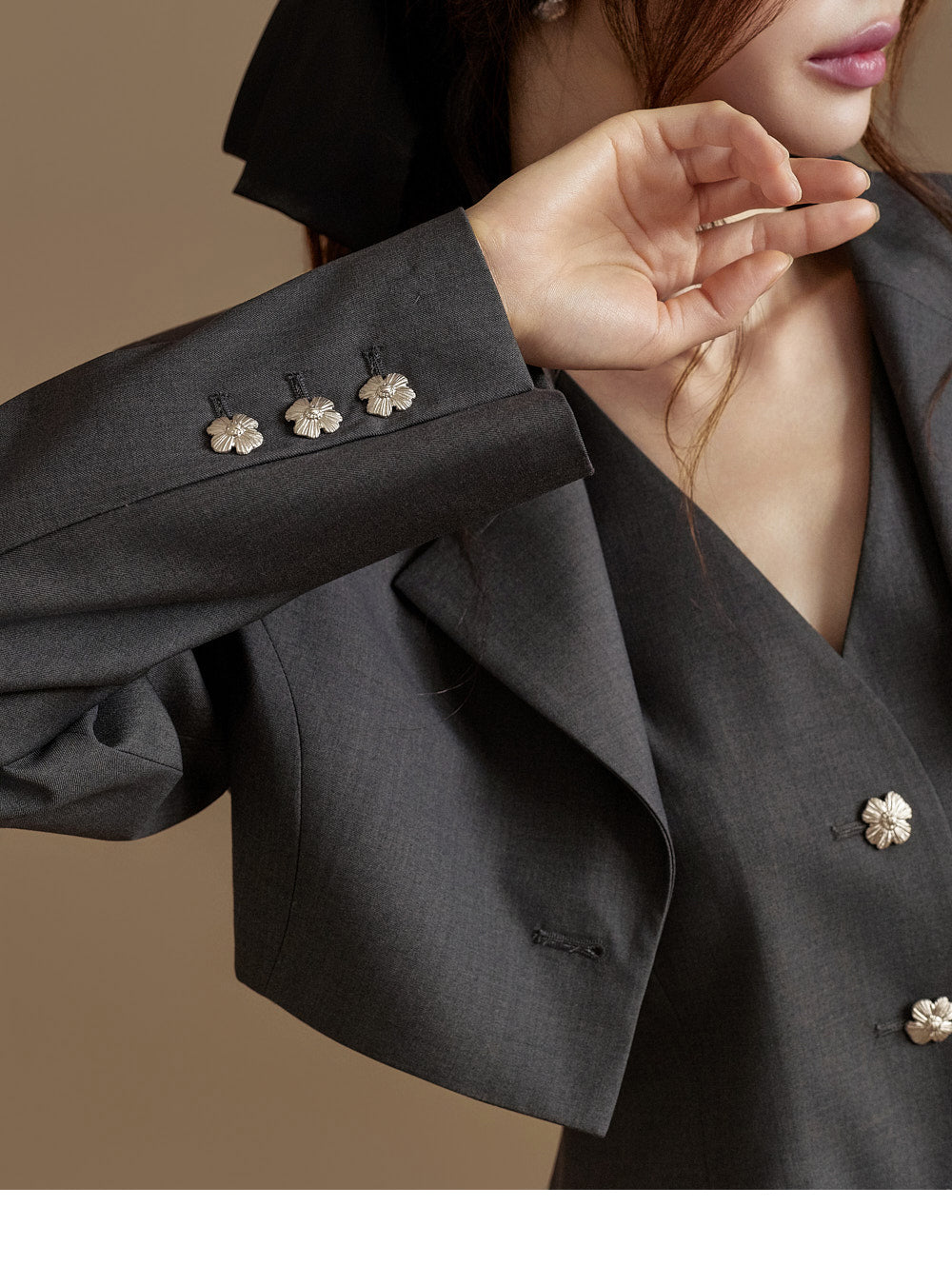 Flower button details on the front and sleeves add a feminine yet unique touch.