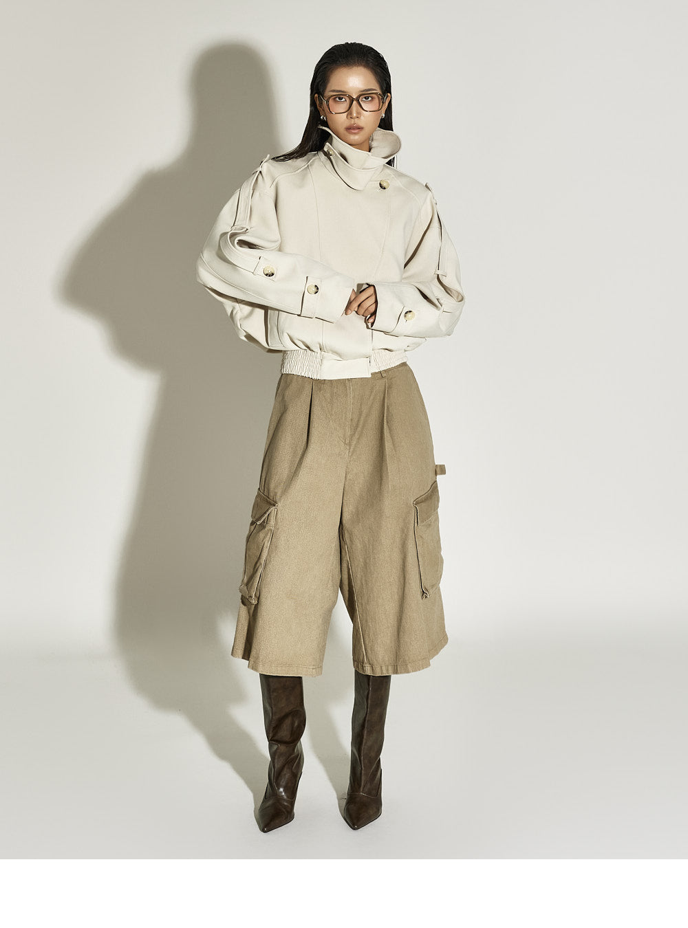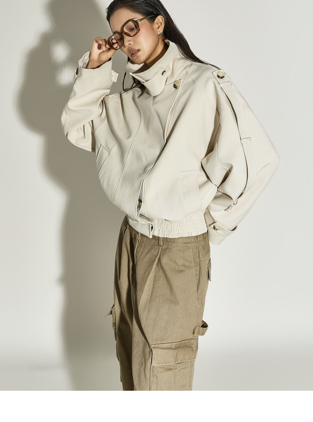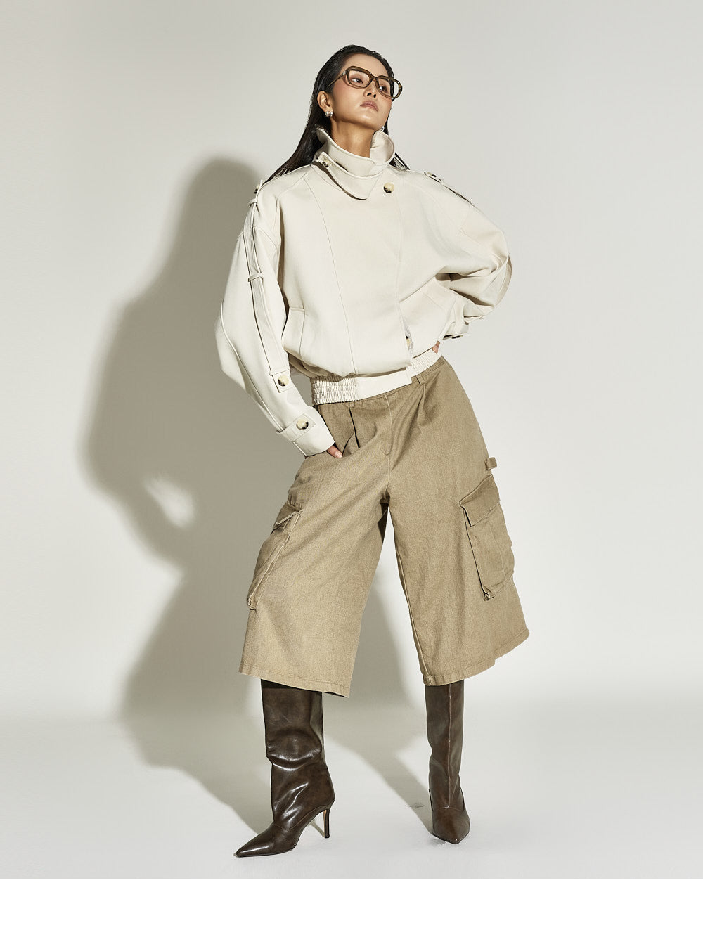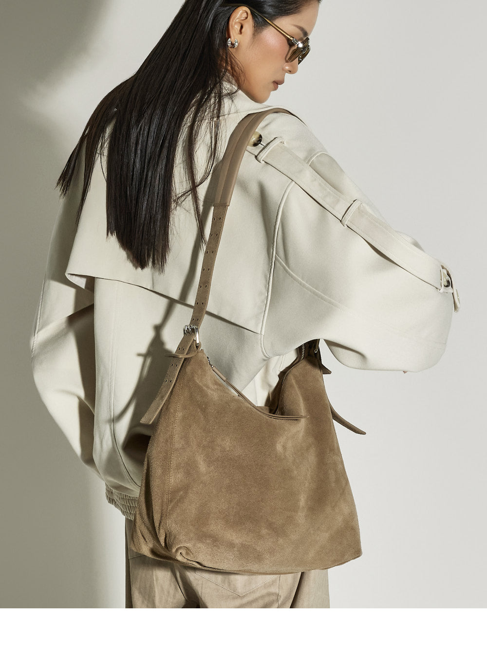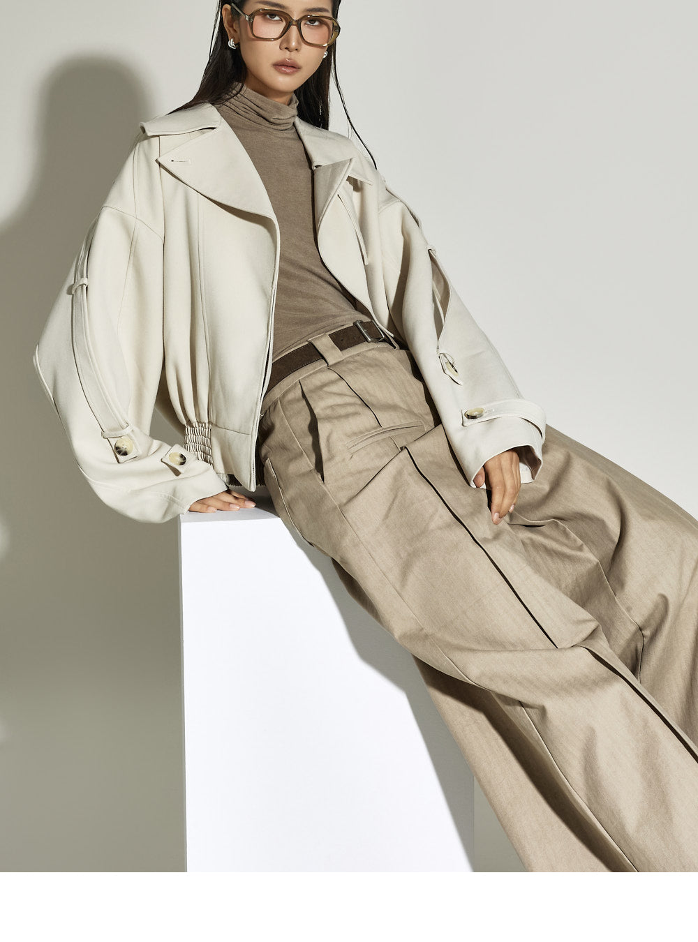 Model is 173cm tall and is wearing size S in beige.