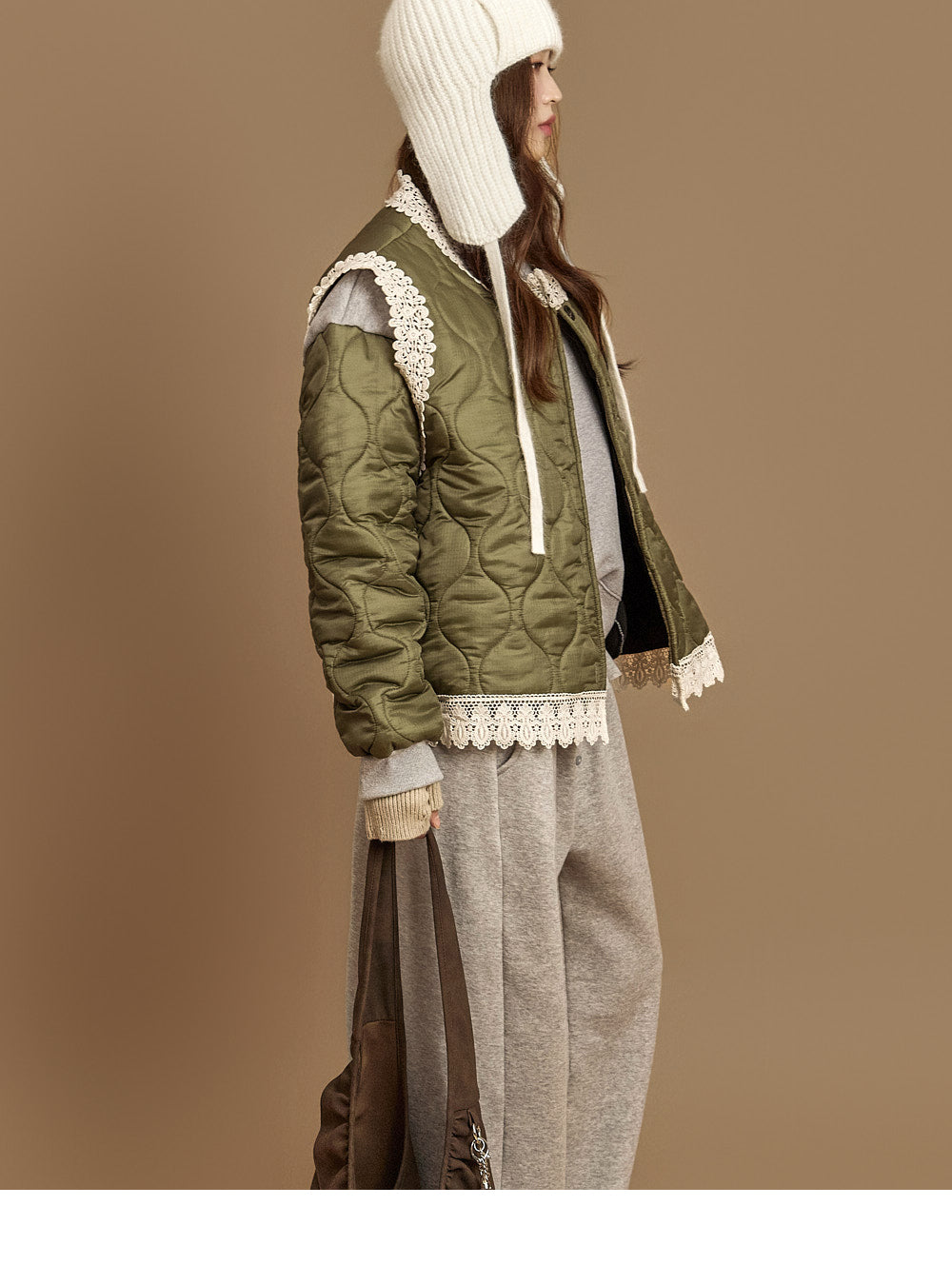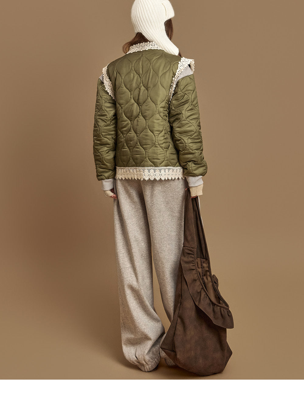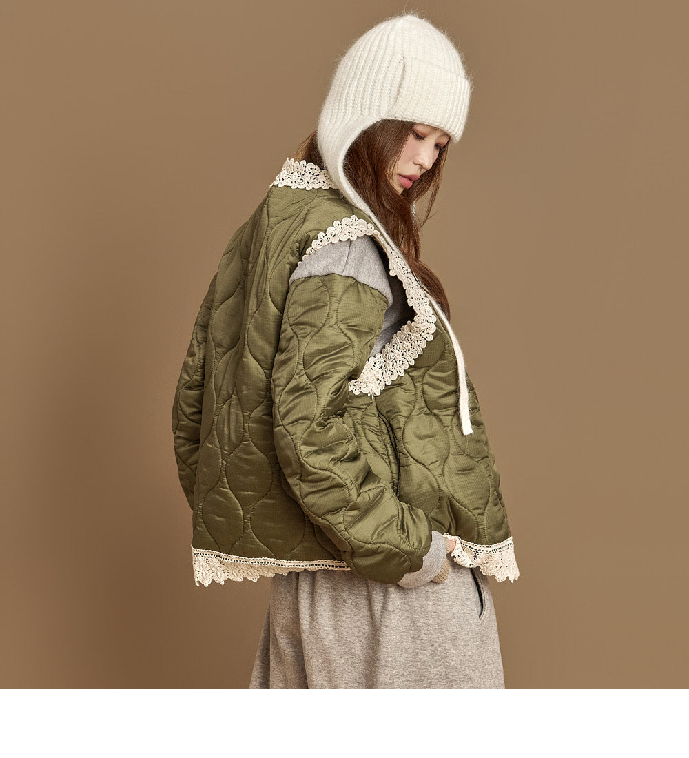 This lace-quilted vest exudes a casual vibe.