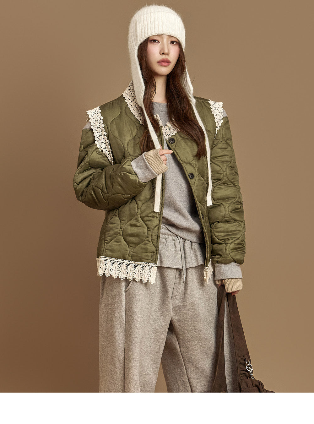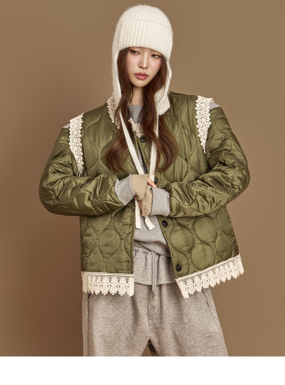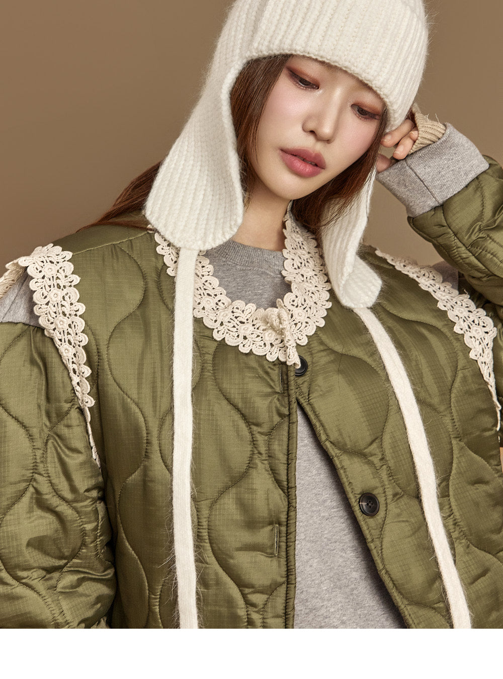 This lace-quilted vest exudes a casual vibe.