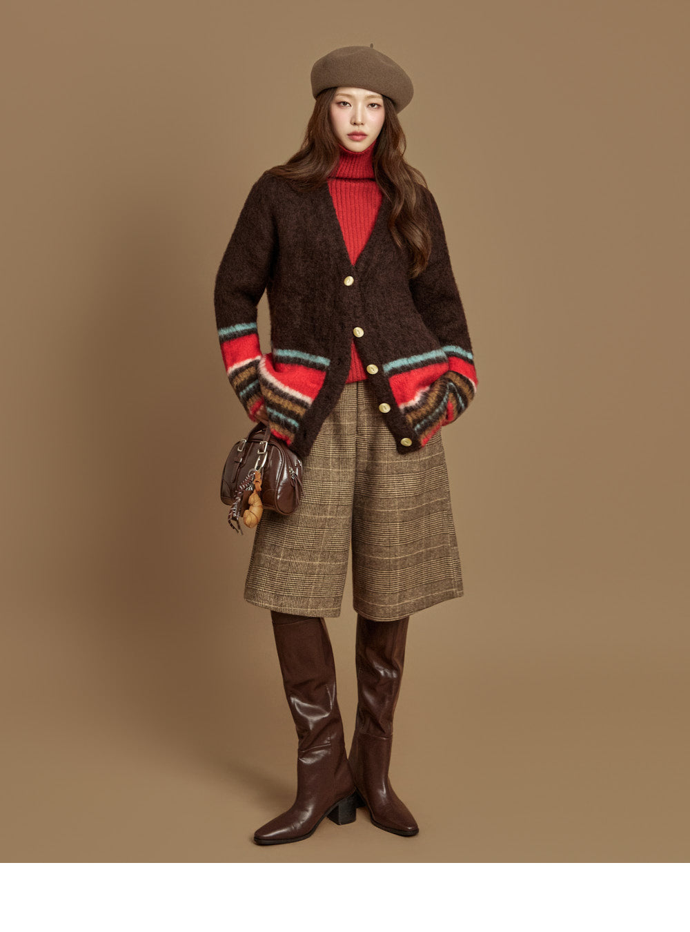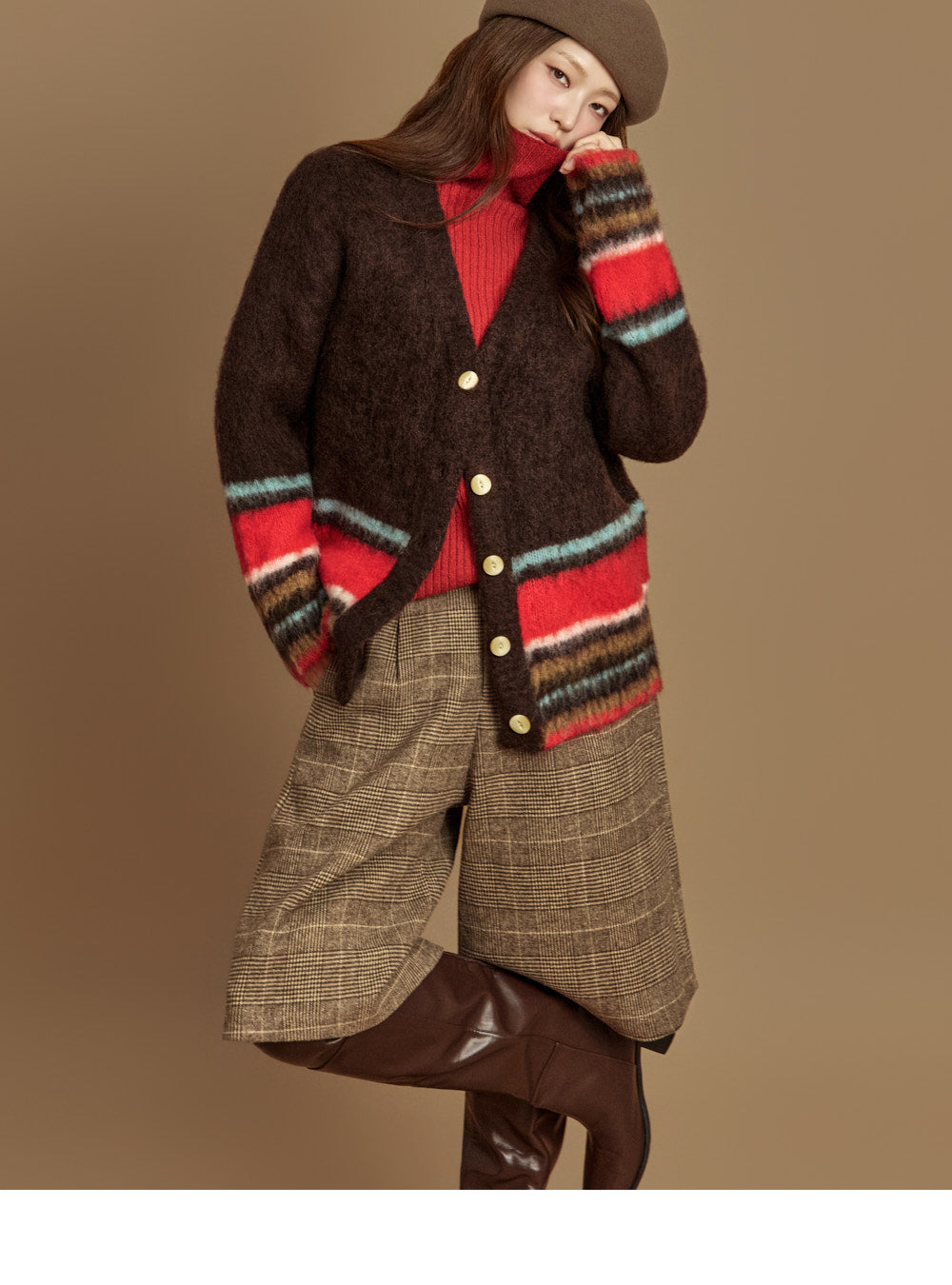 The dangara pattern and V-neck design combine to create a casual yet stylish look.