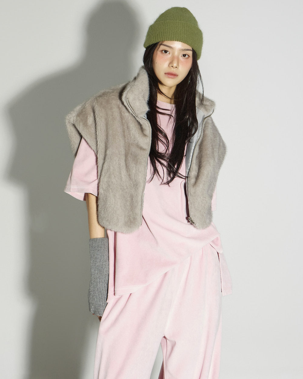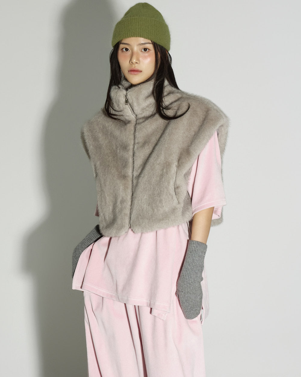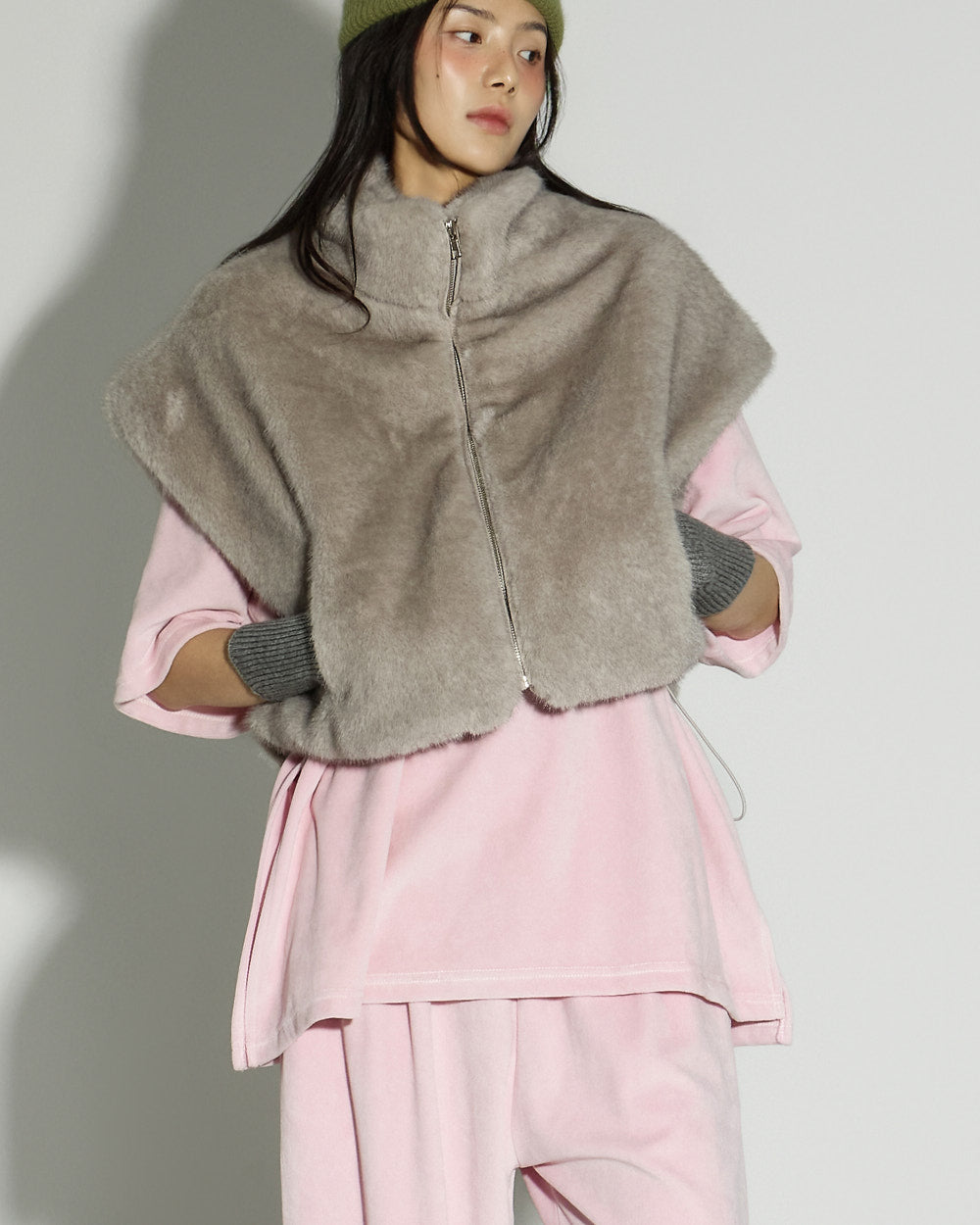 This faux fur vest exudes a lovely mood.