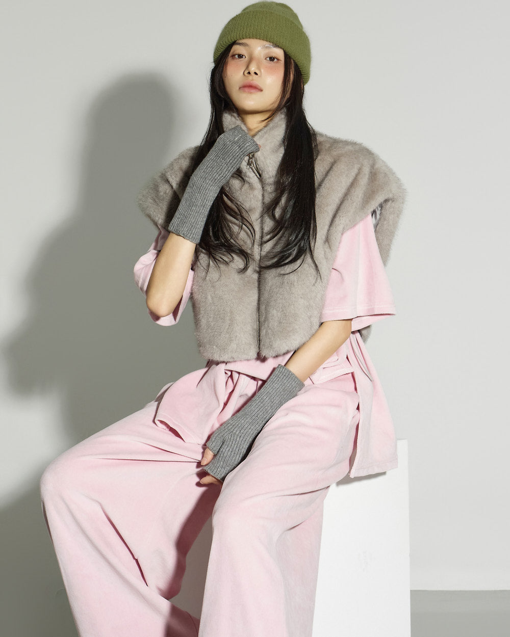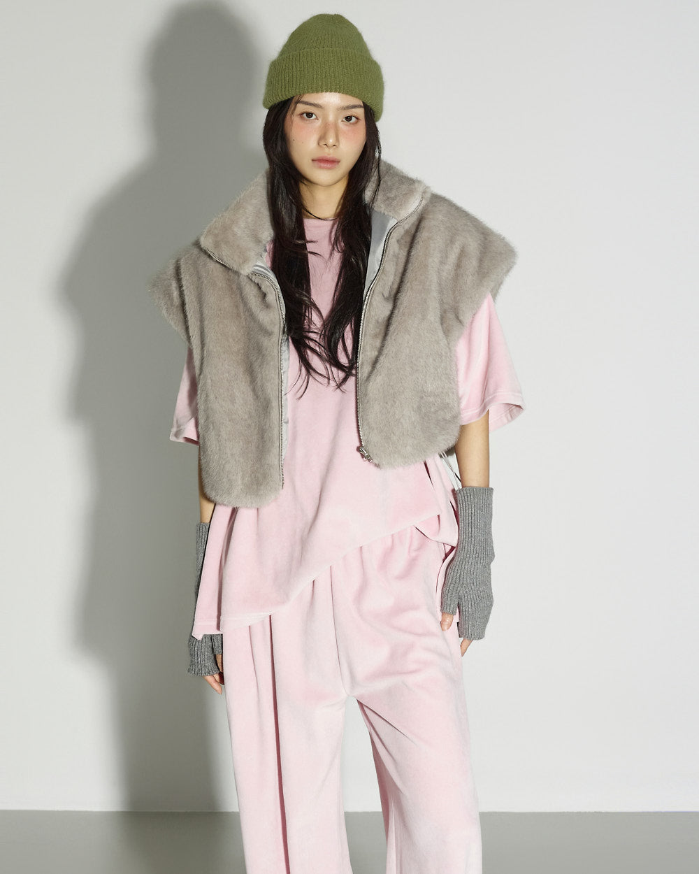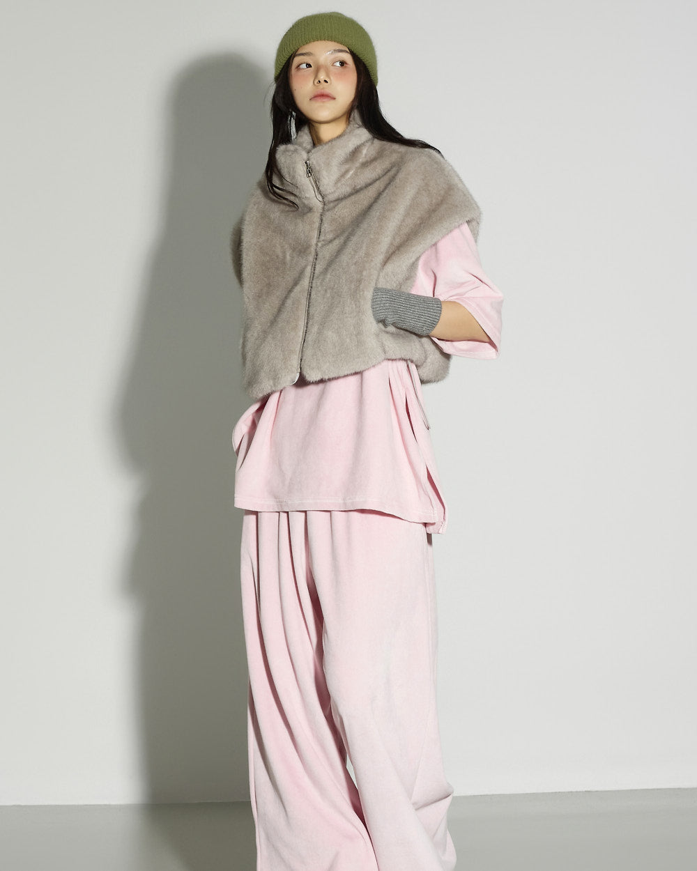 This faux fur vest exudes a lovely mood.