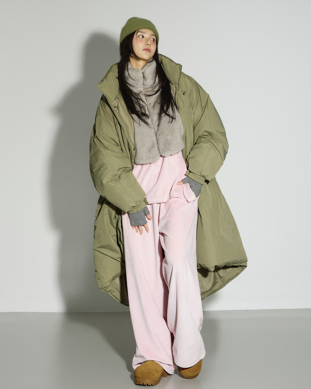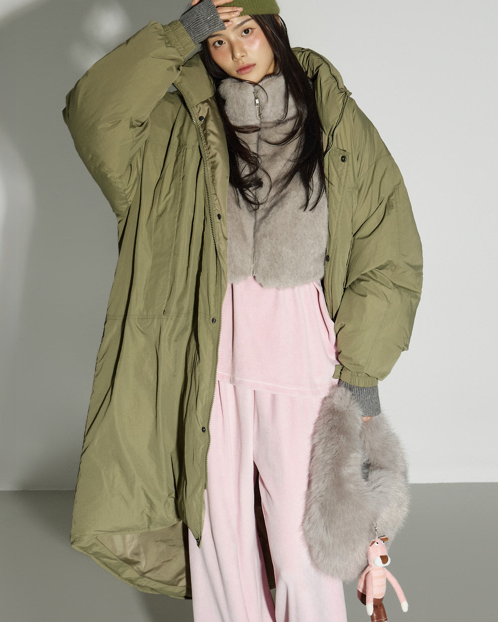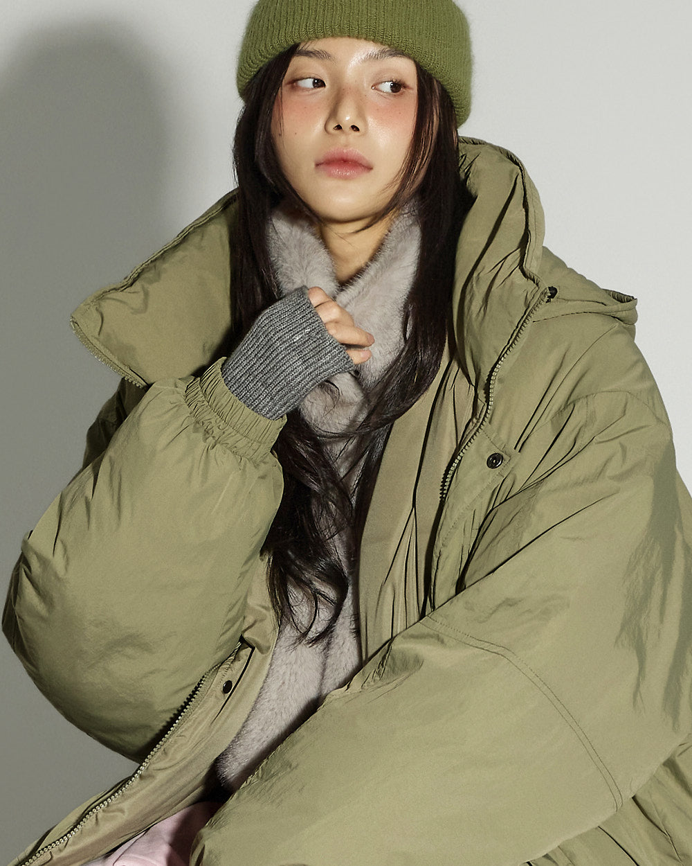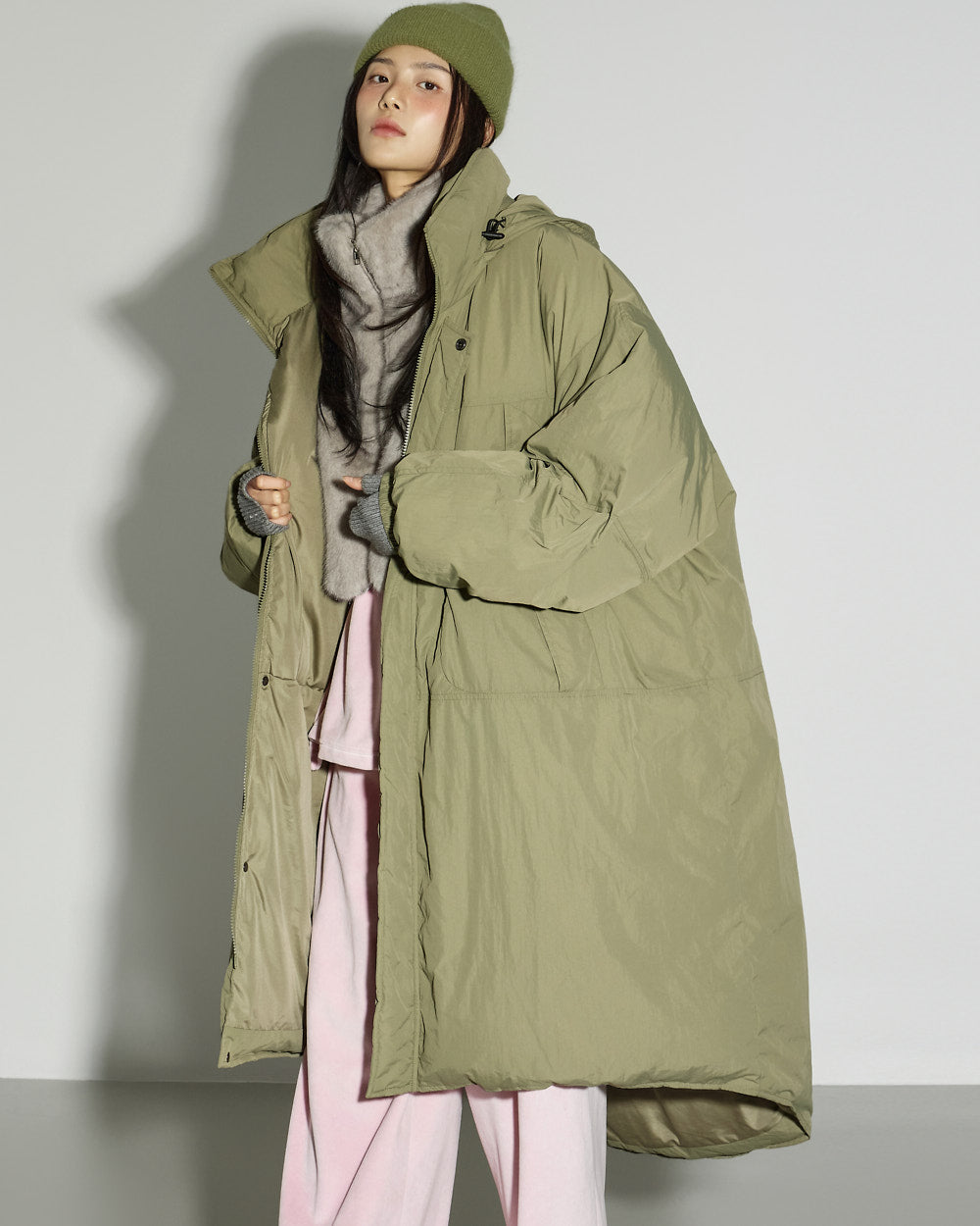The 171cm model is wearing size ONE in GRAY.
