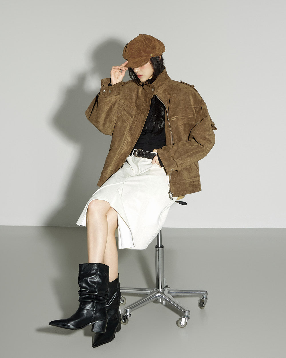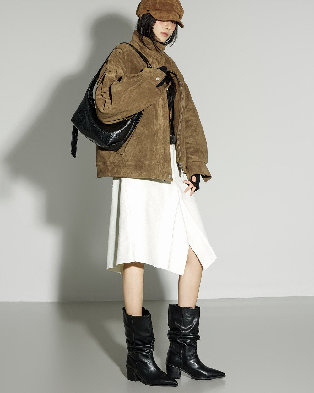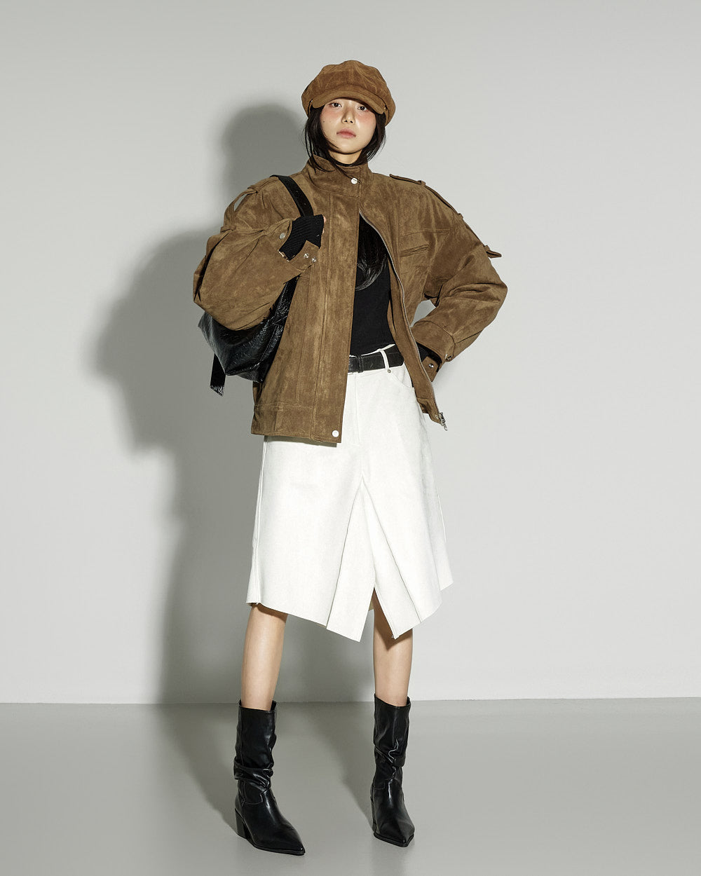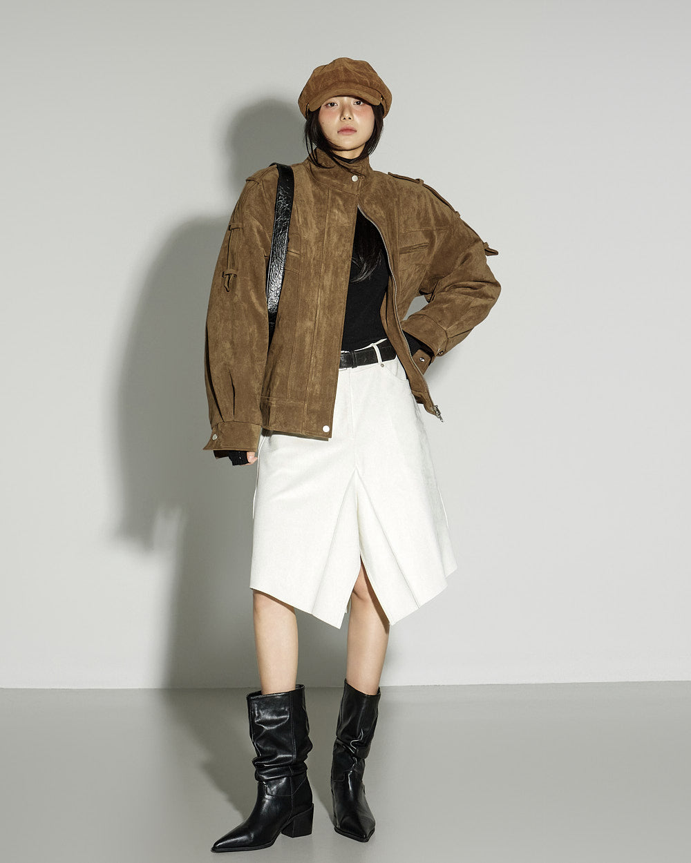 and the semi-high neck design securely hugs the neckline for added warmth.