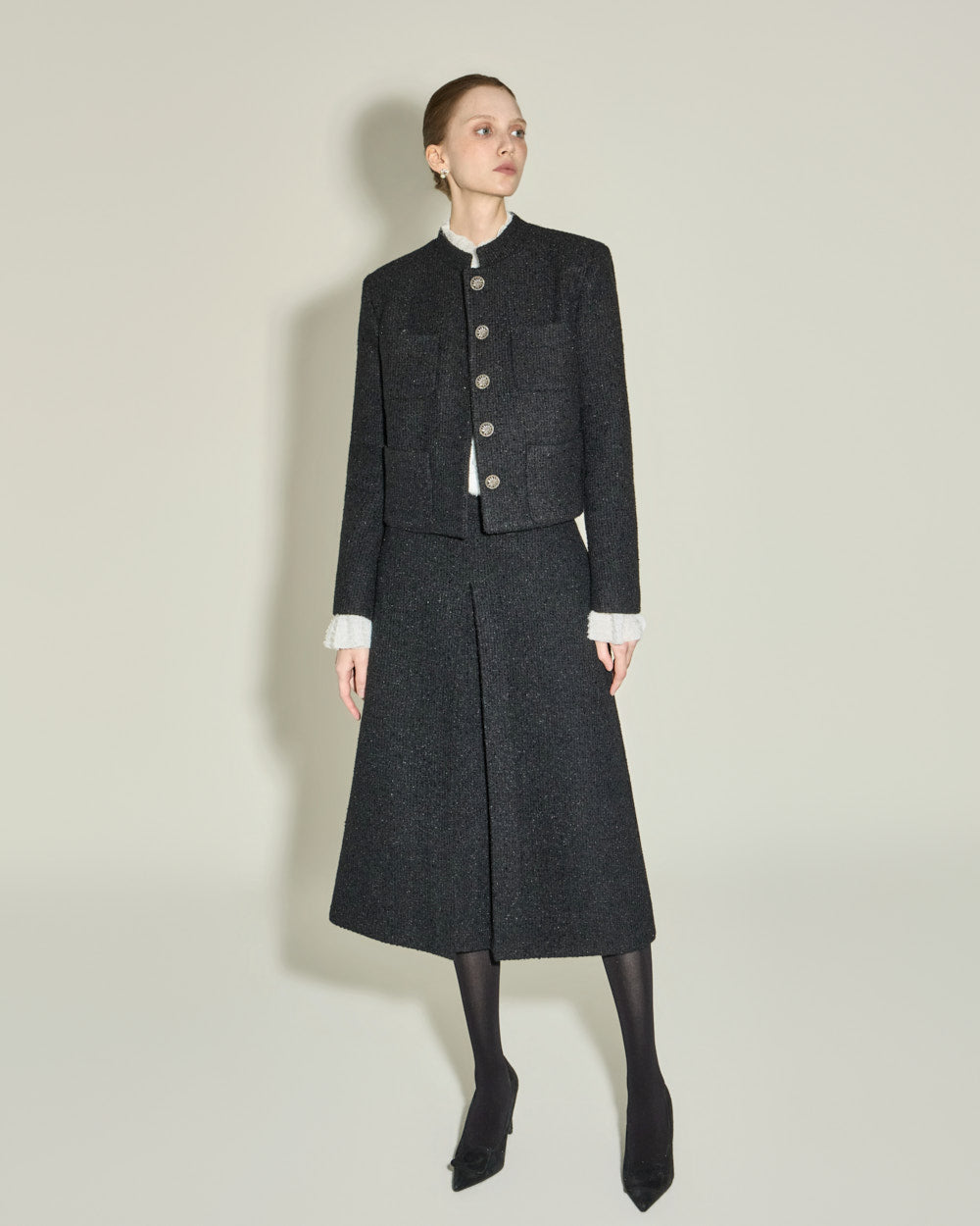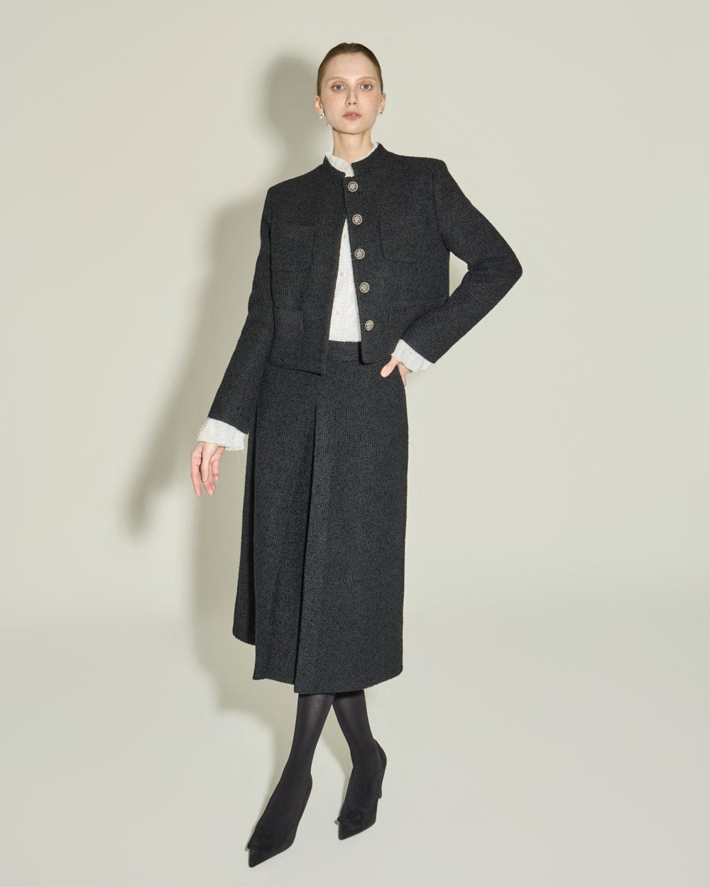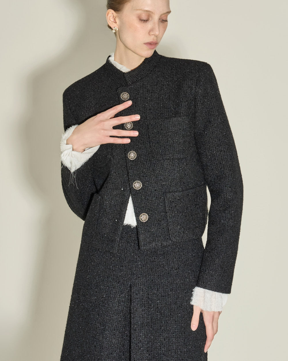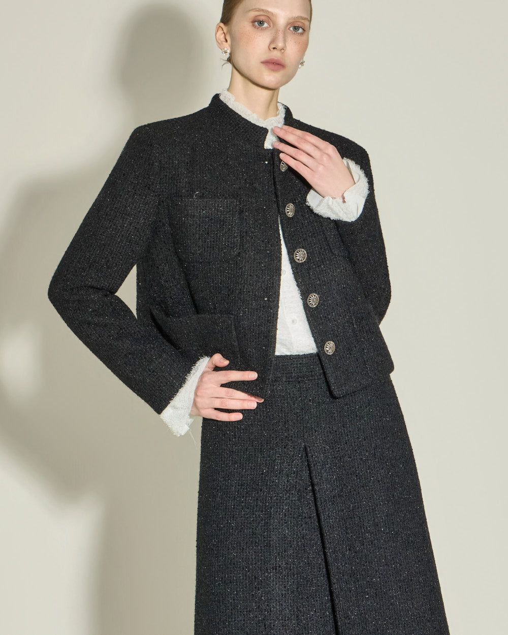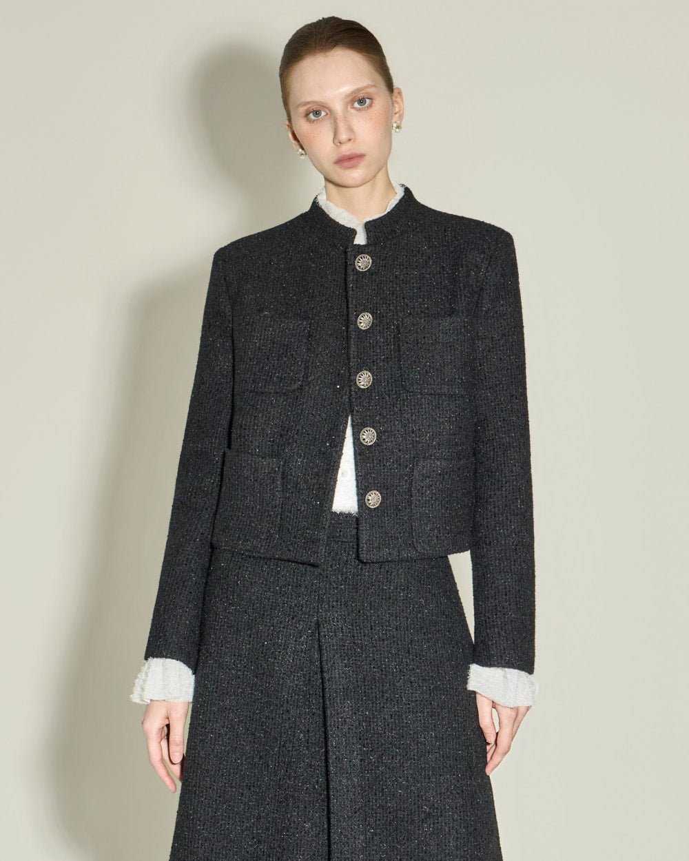 The short jacket design with a fitted silhouette