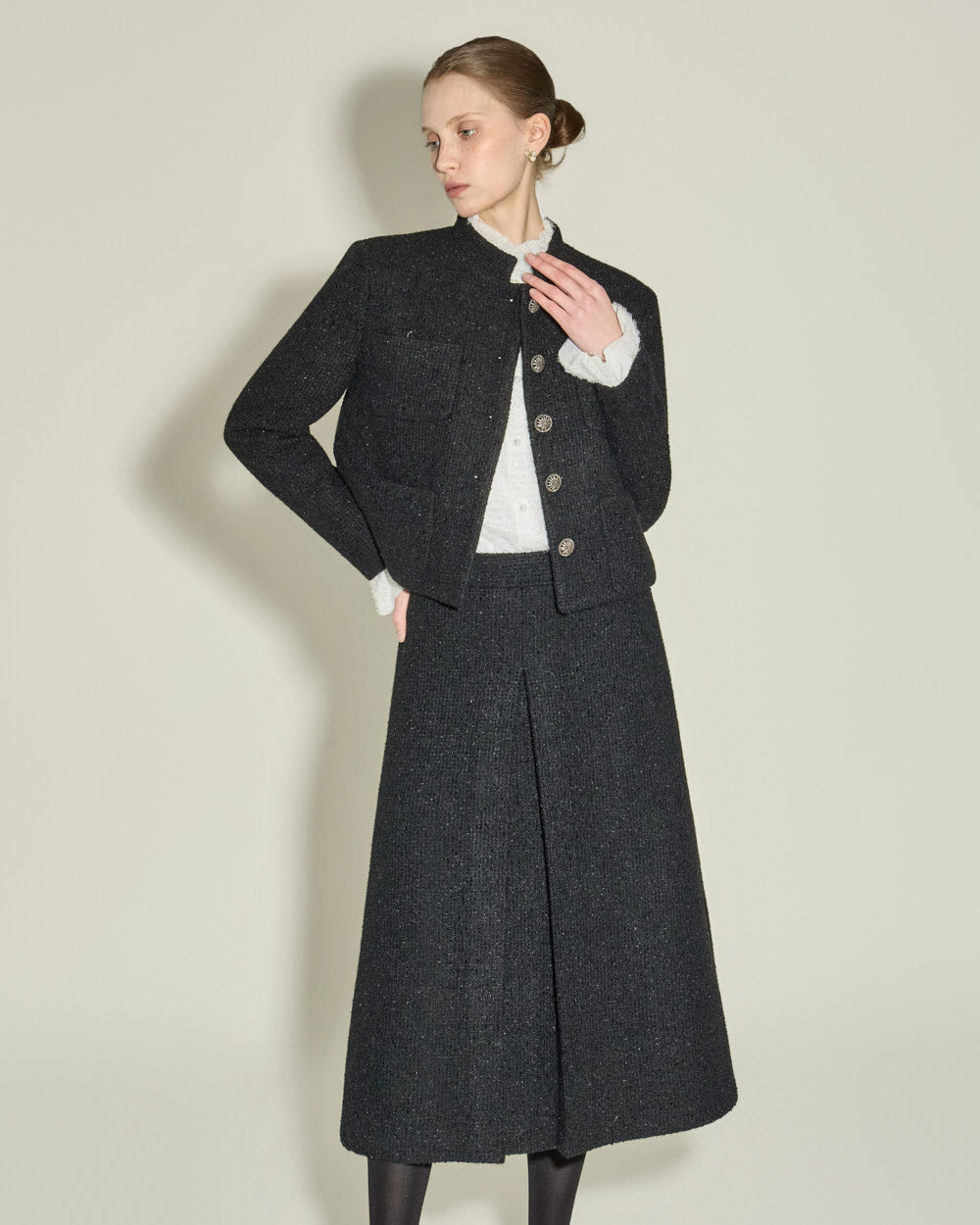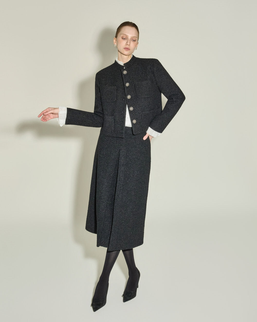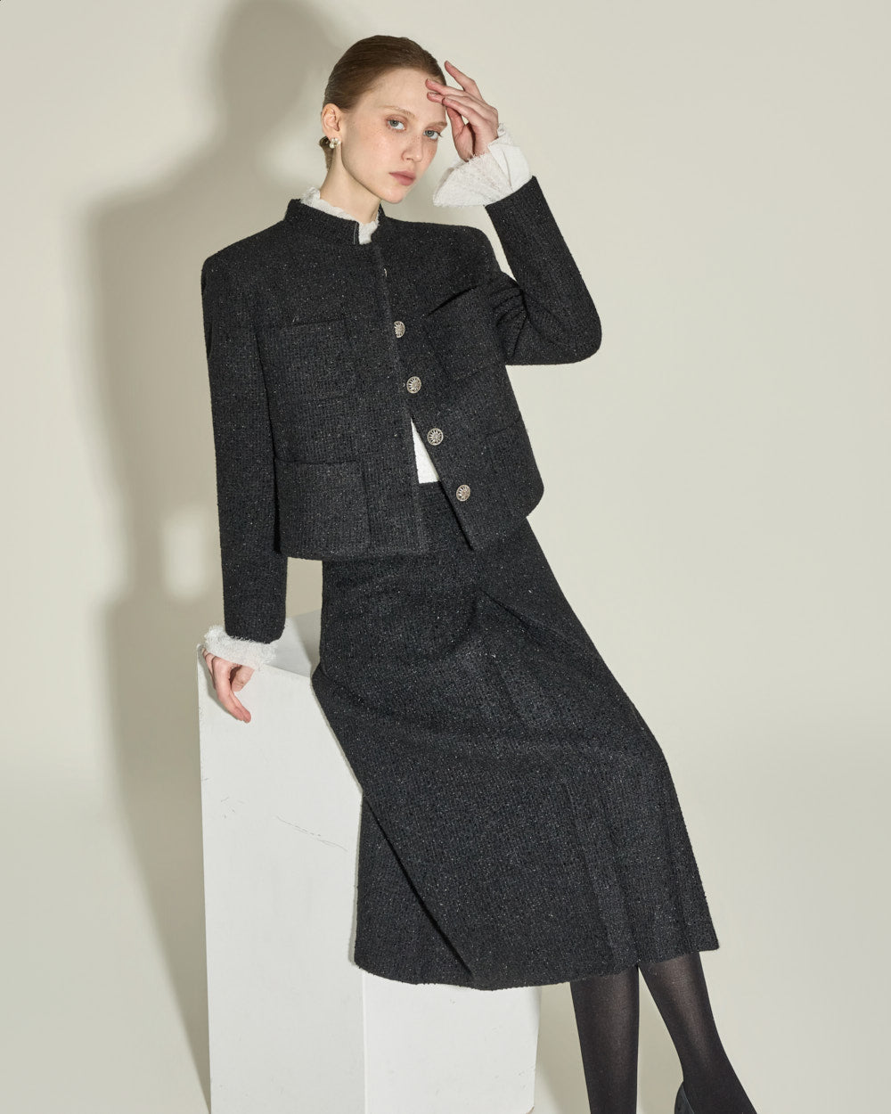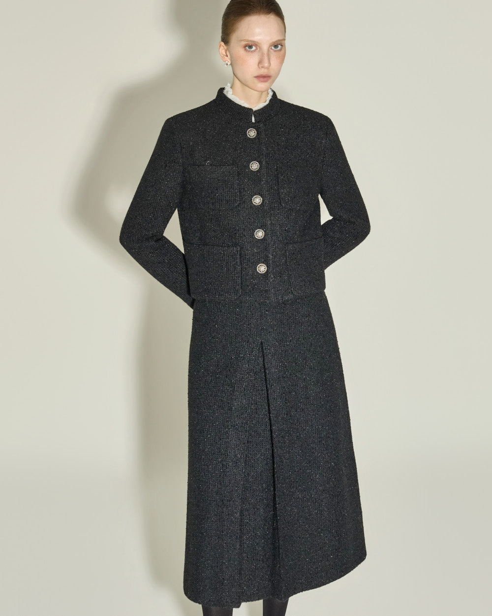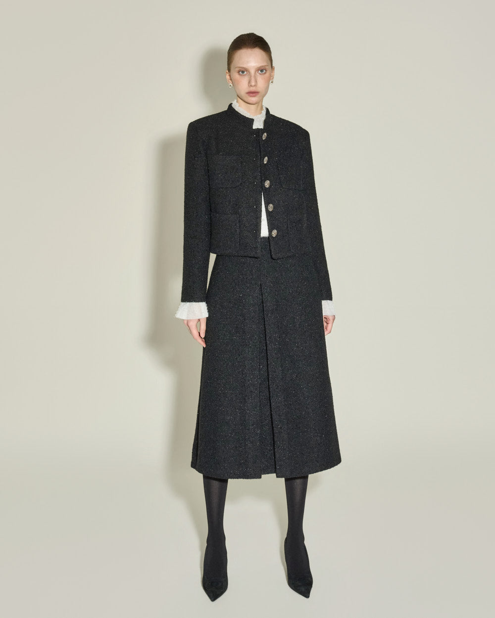 The short jacket design with a fitted silhouette
