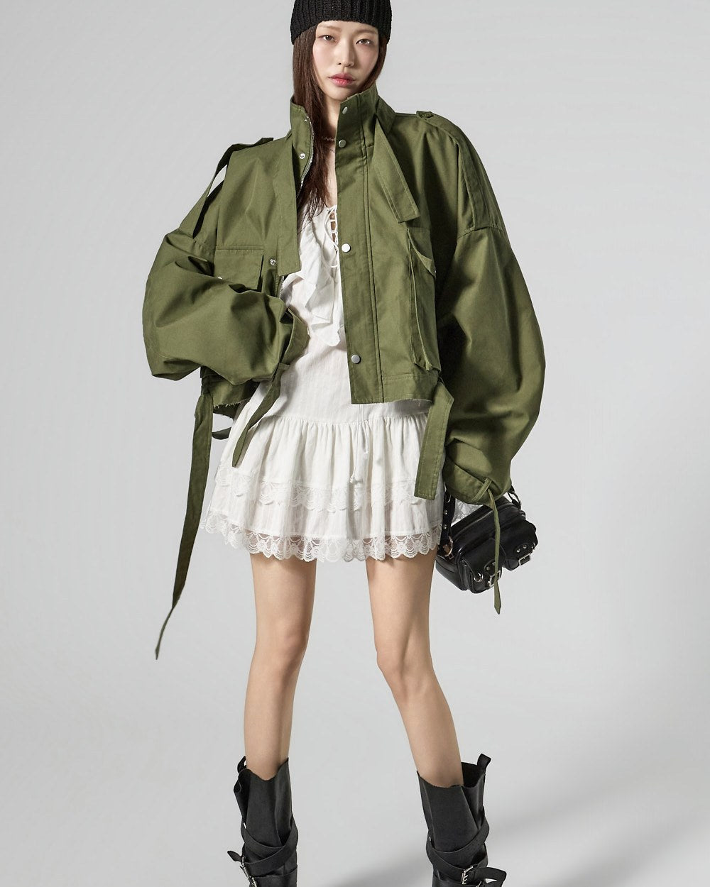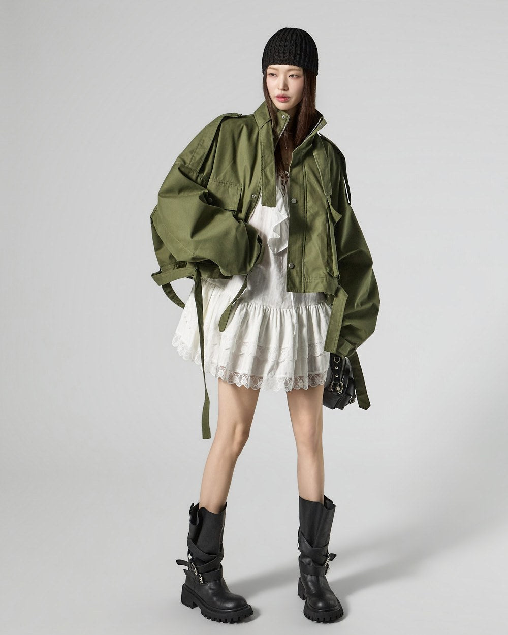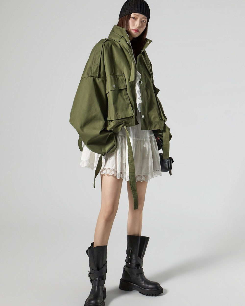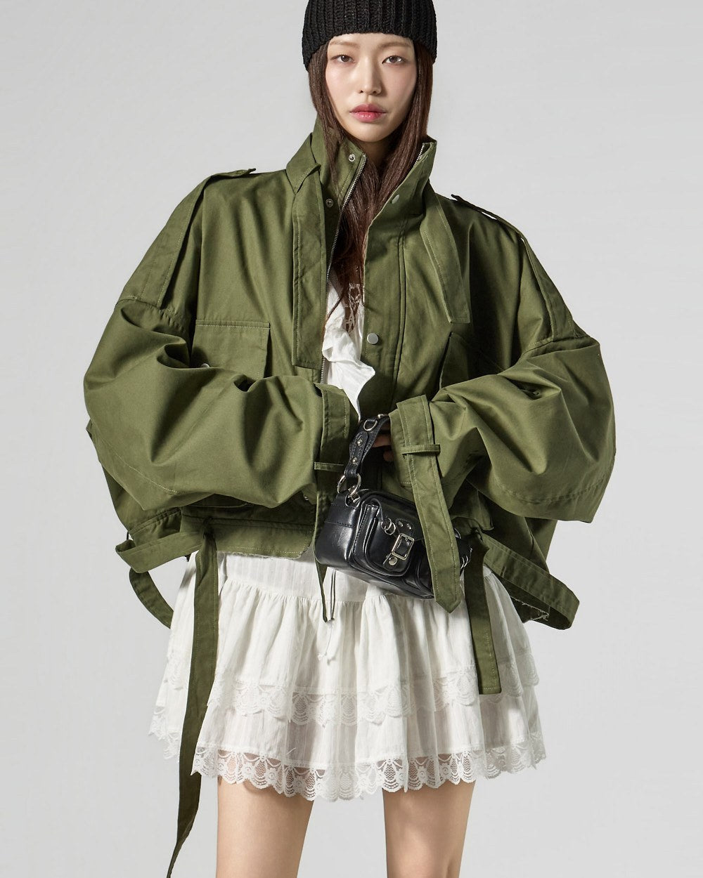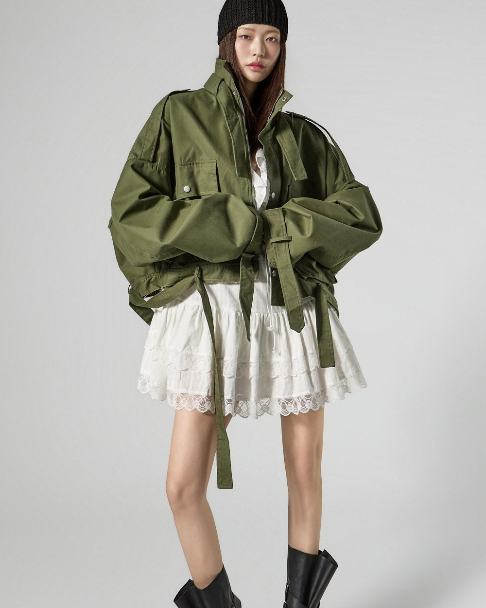 The 171cm model is wearing size ONE in the KHAKI color.