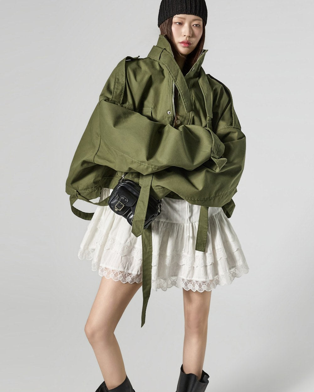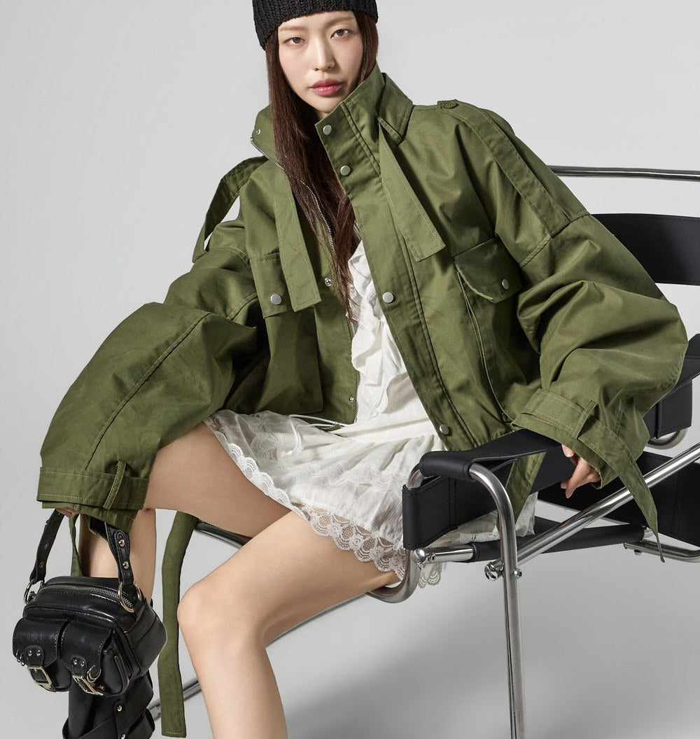 The short trench style creates a unique,