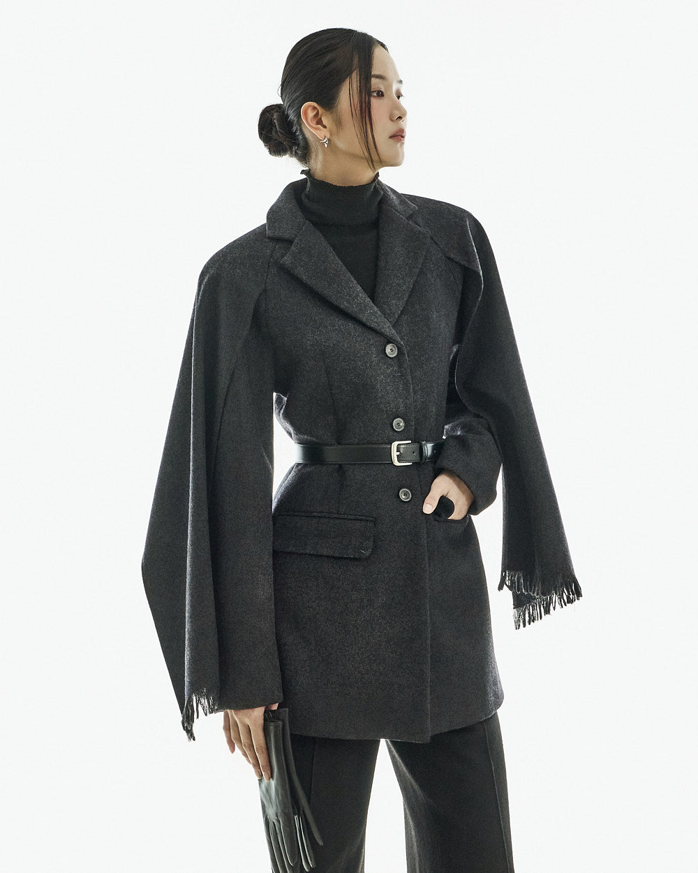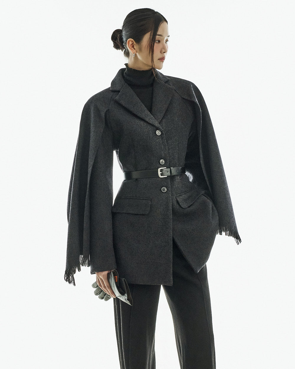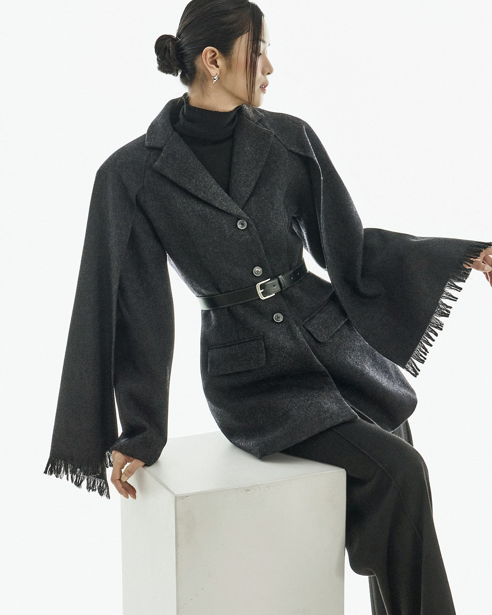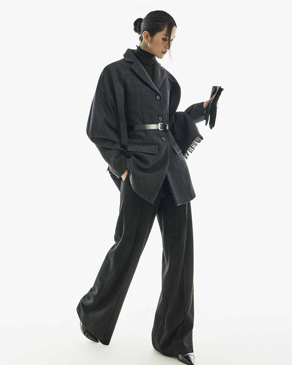 The model is 173cm tall and is wearing size ONE in BLACK.