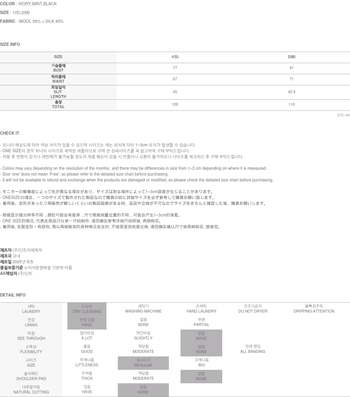 收到退回Dint的商品后,请填写随附的退货申请表,并按照收到时的包装方式重新包装(塑料袋、衣架、按金额赠送)。然后将其寄回Dint。
