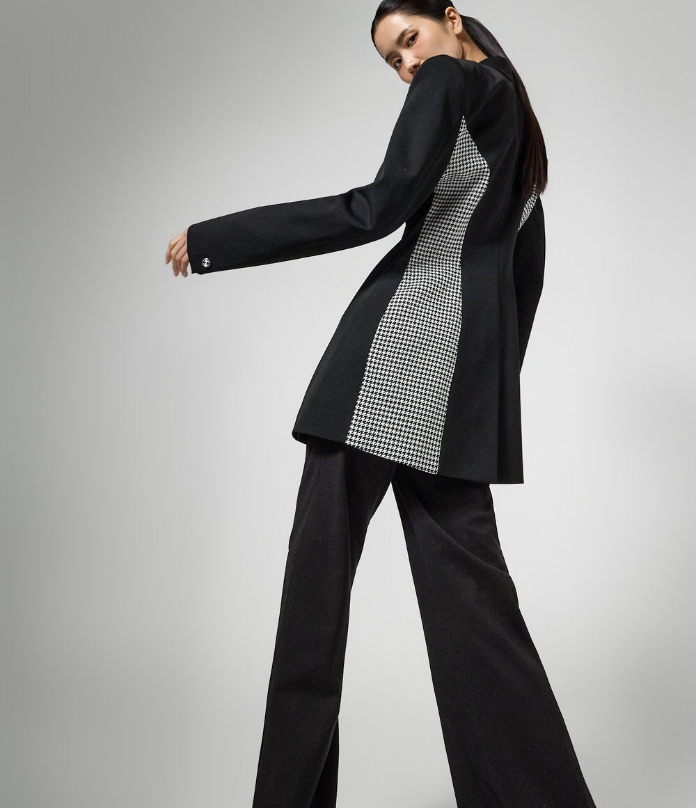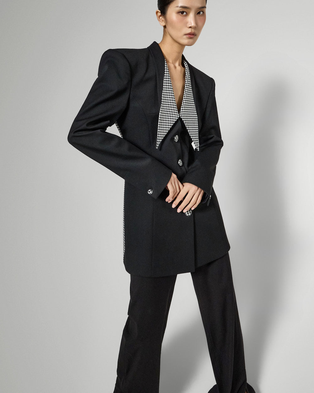 身高 174 厘米的模特穿着均码的黑色衣服。