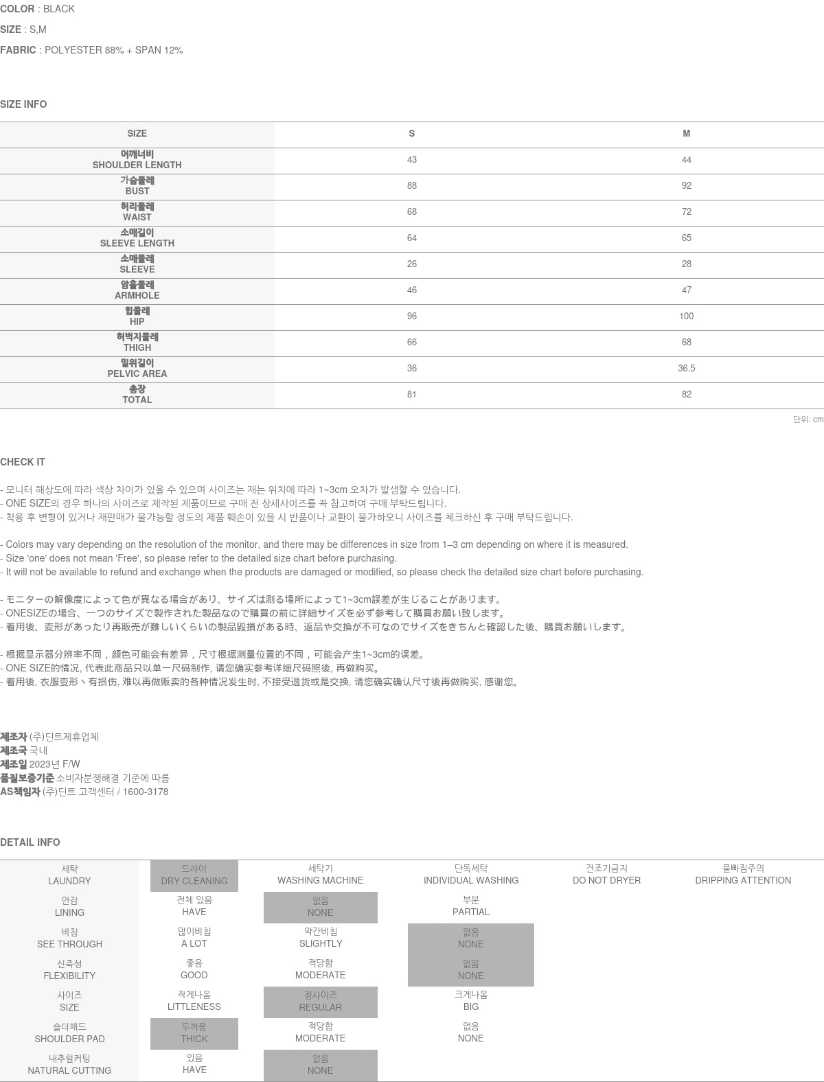 身高 174CM 的模特穿着黑色 S 码的衣服。