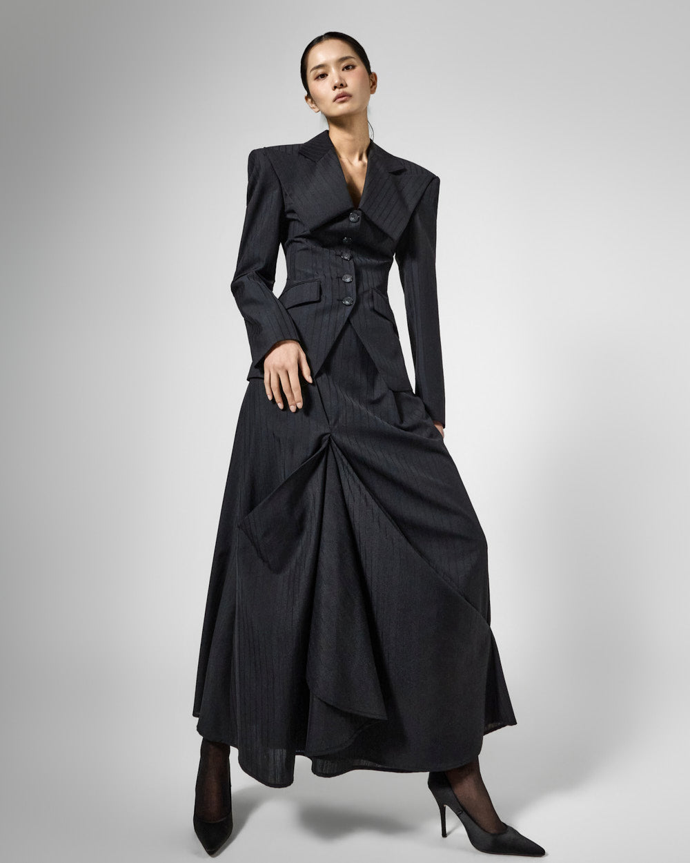 正面的褶裥细节营造出层次感,