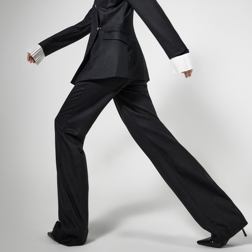 这是一套具有男性化轮廓的西装。
