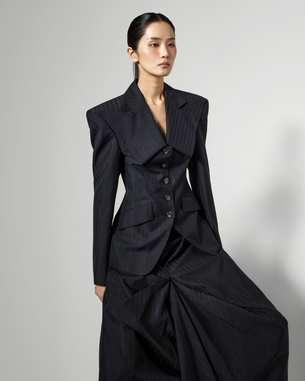 修身的轮廓营造出女性化的外观。