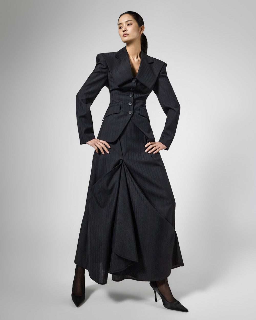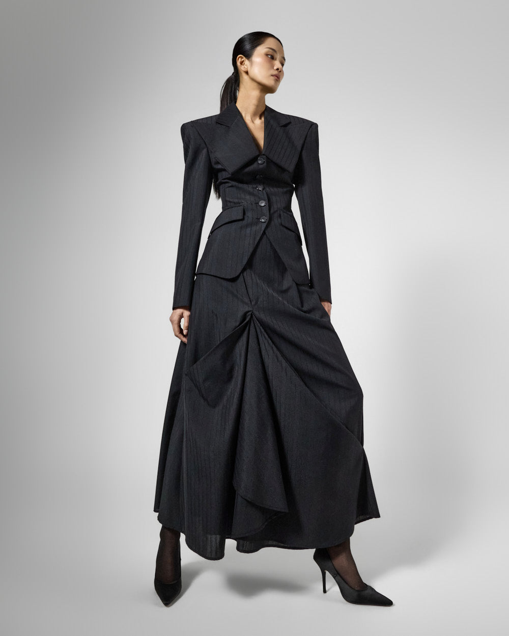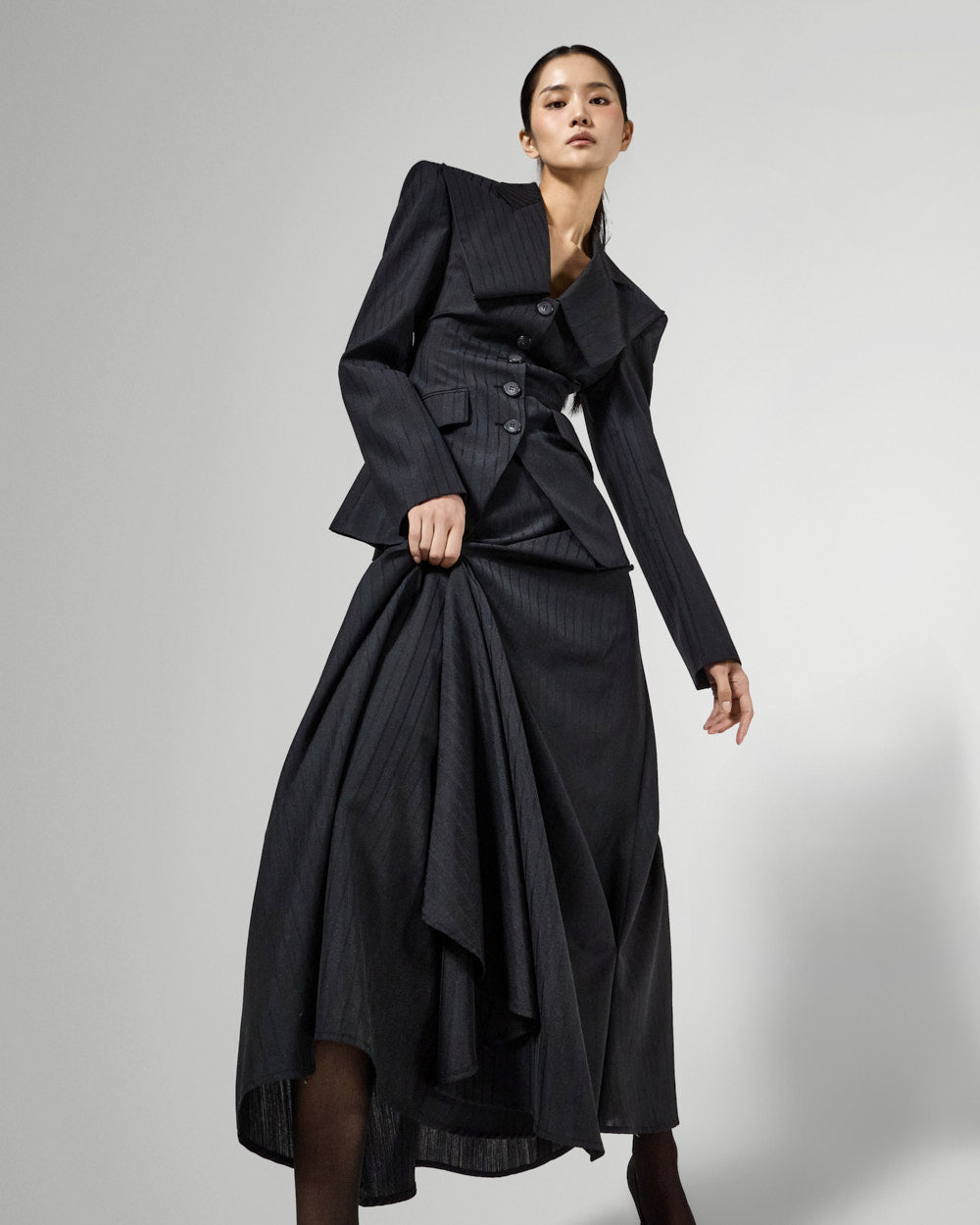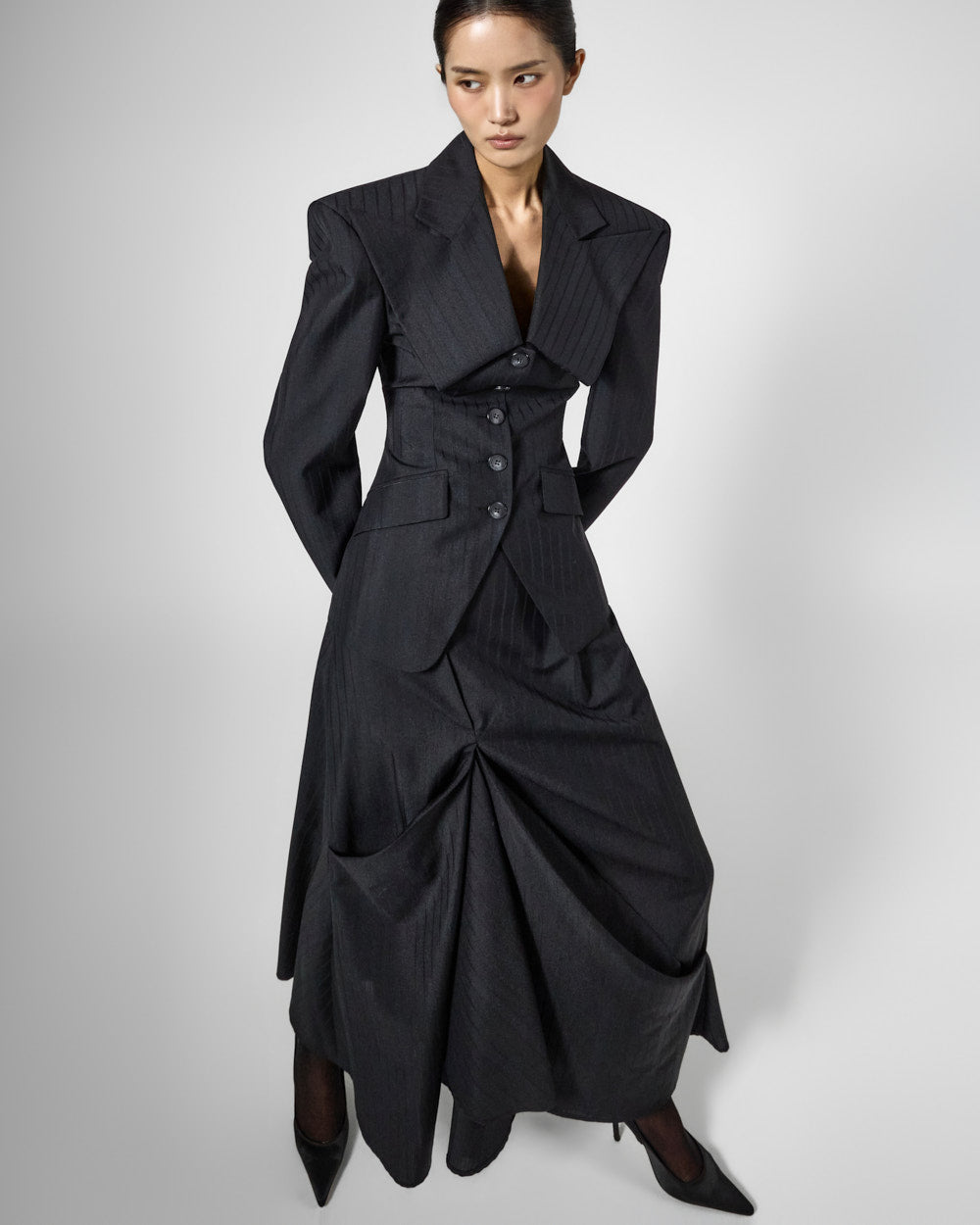 正面的褶裥细节营造出层次感,