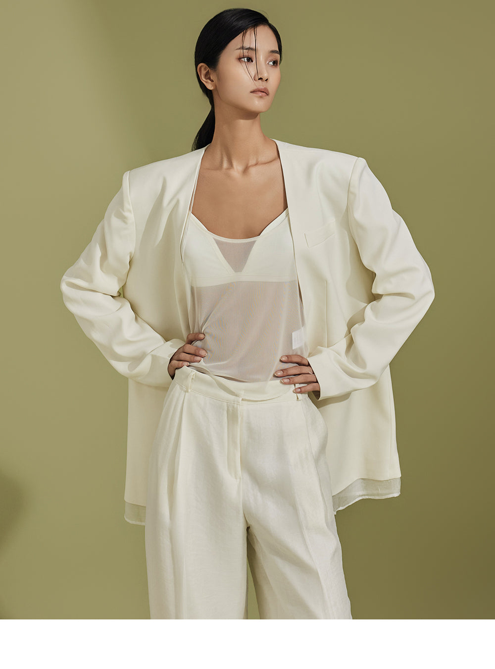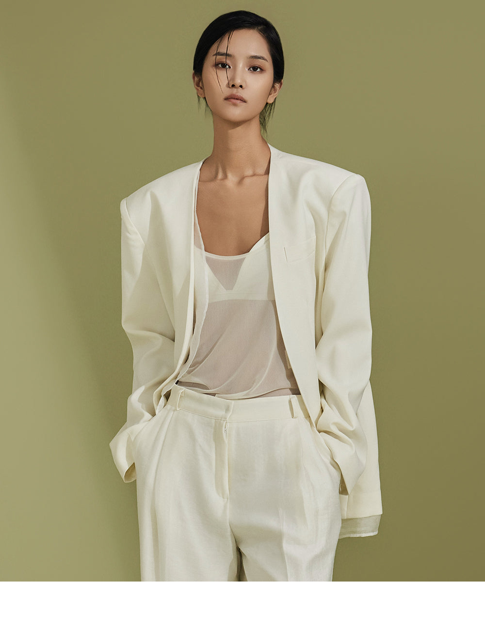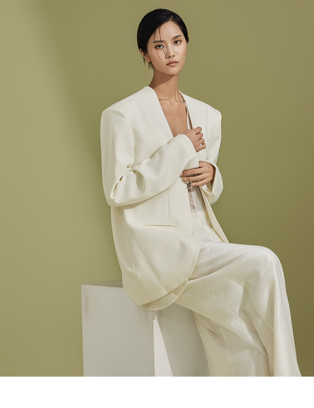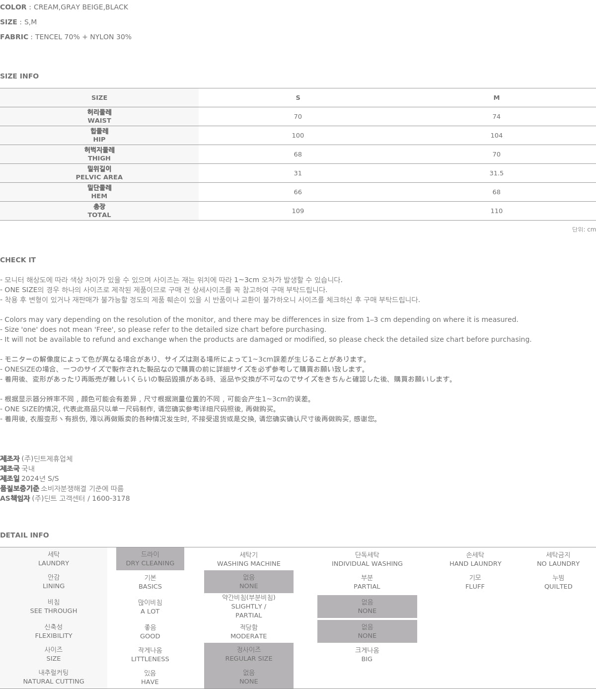 由身高 173 厘米的模特展示,穿着 CREAM 尺码的 S 码。