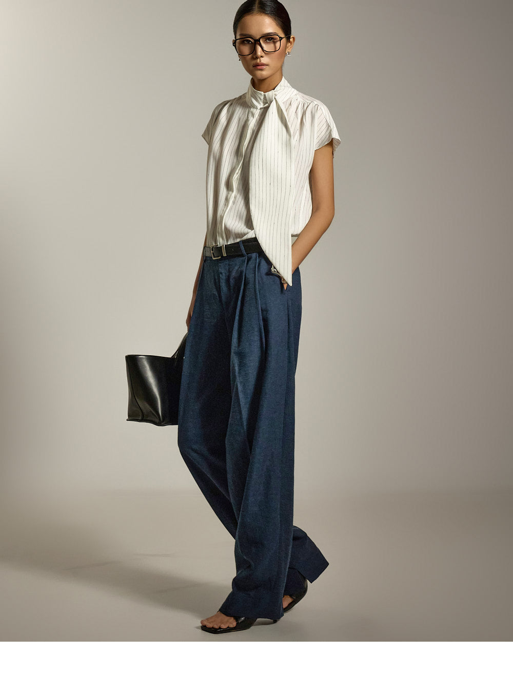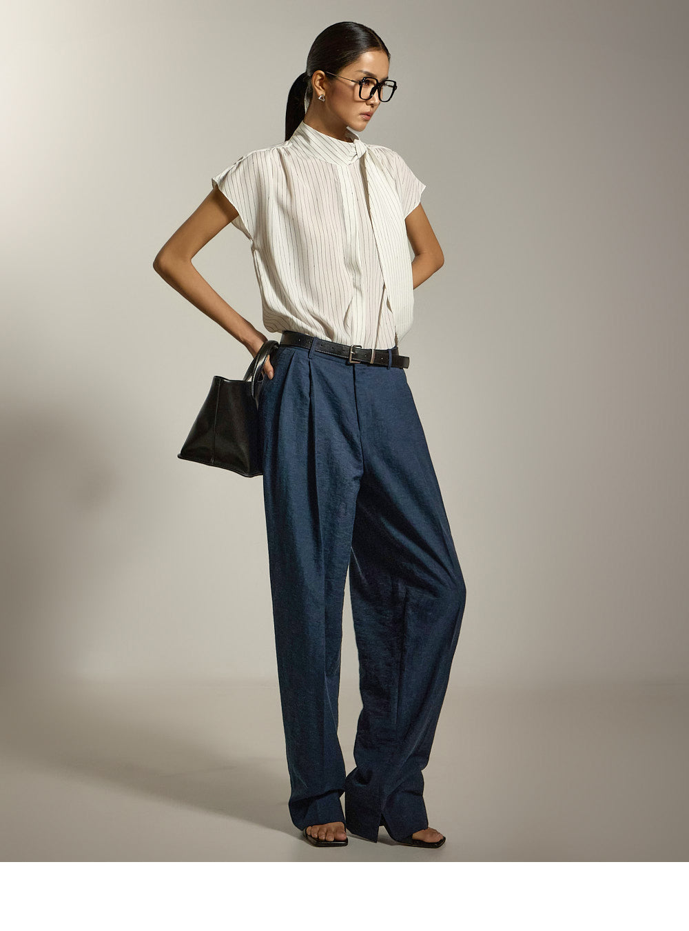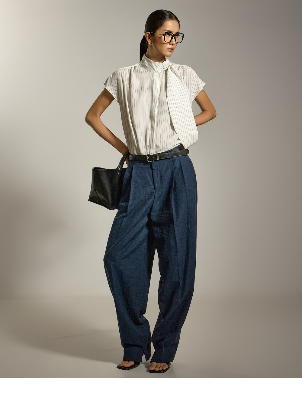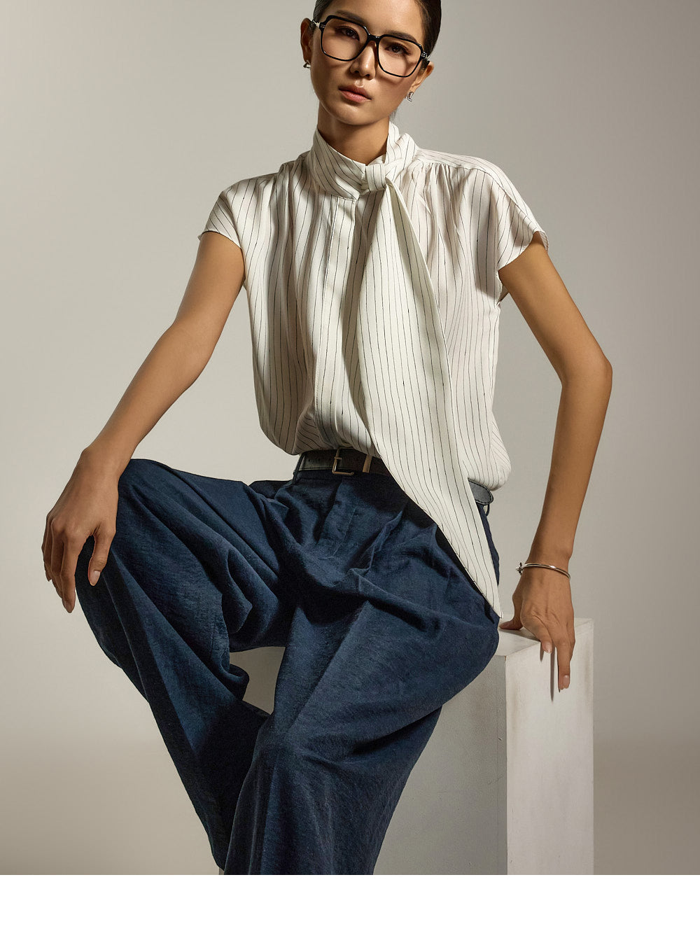 采用简洁的褶裥细节和下摆的微妙开衩,