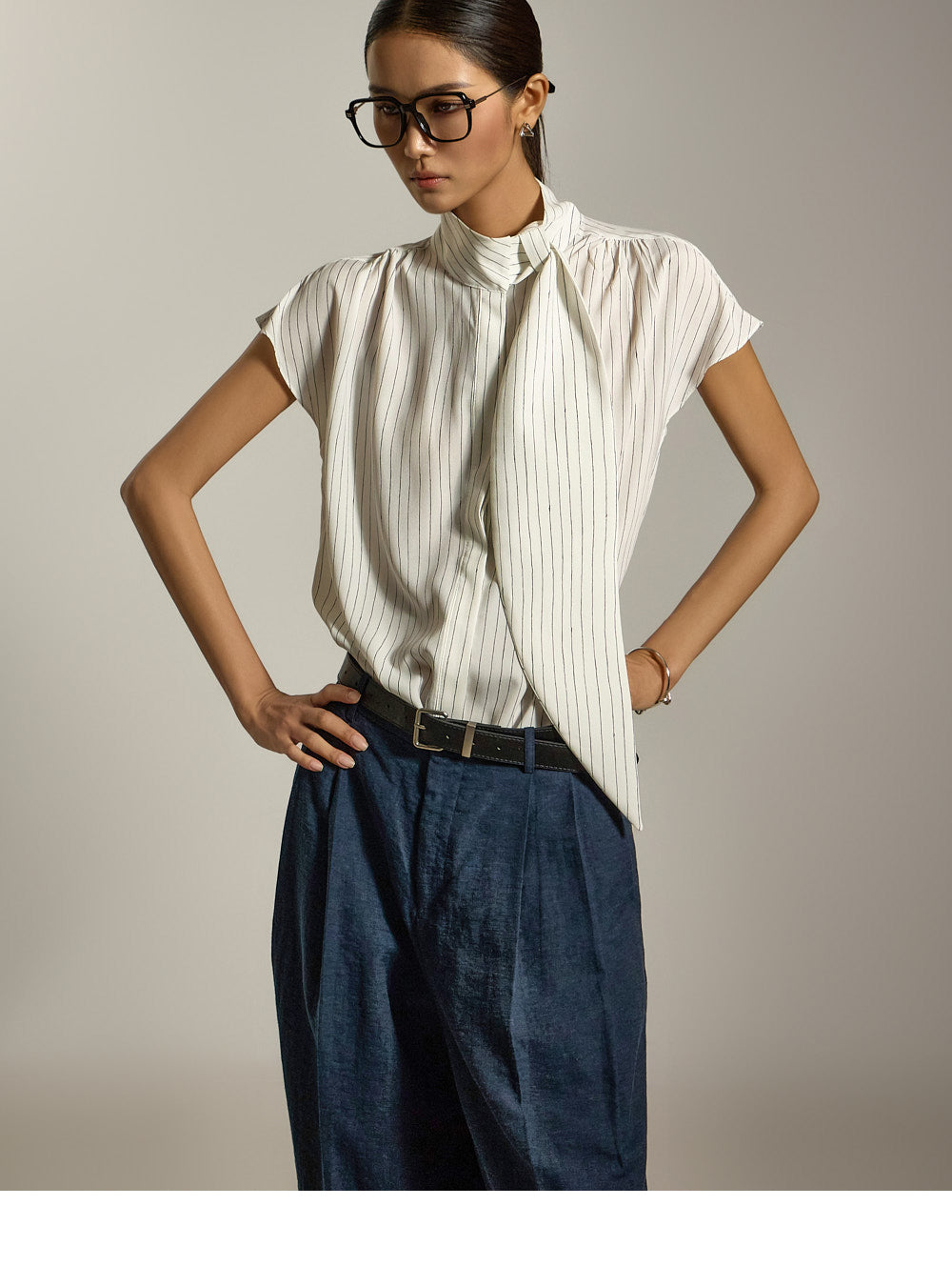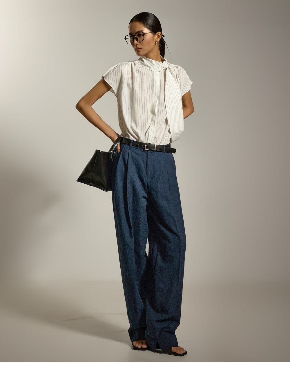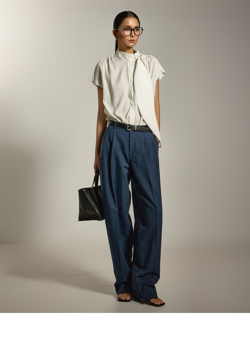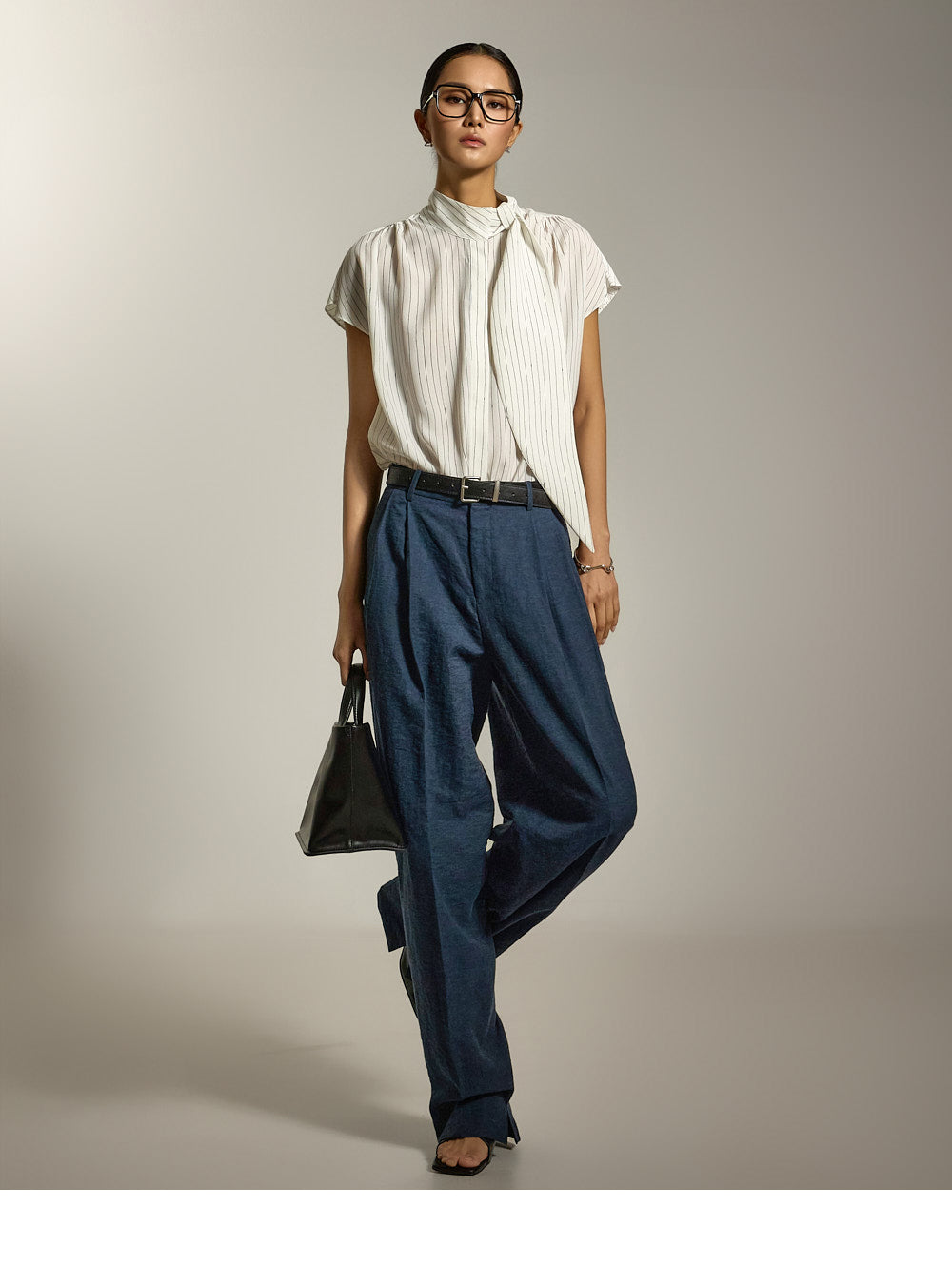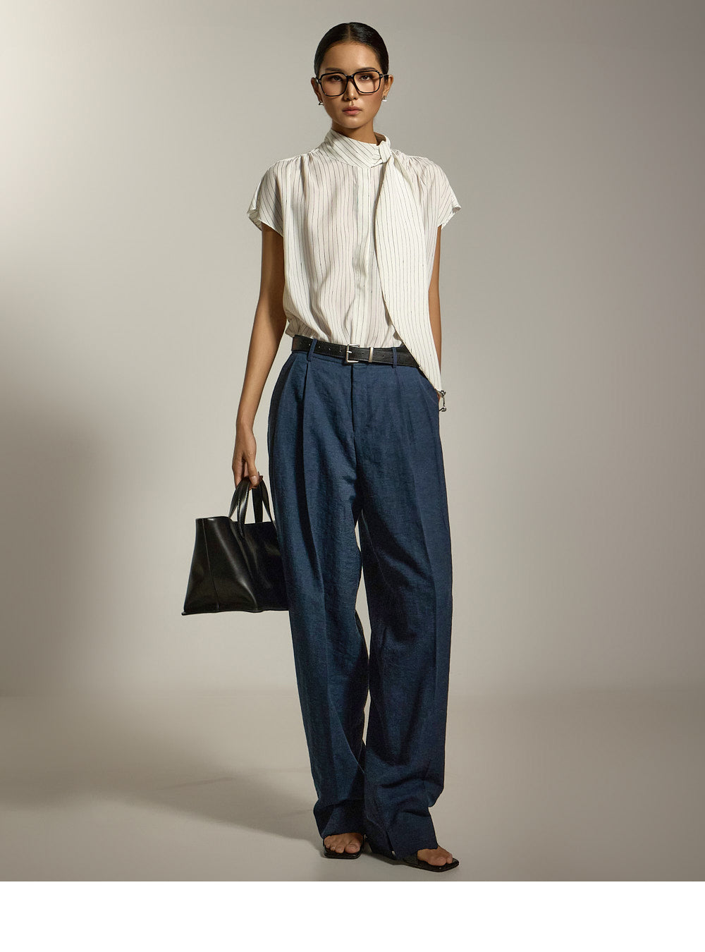 采用简洁的褶裥细节和下摆的微妙开衩,