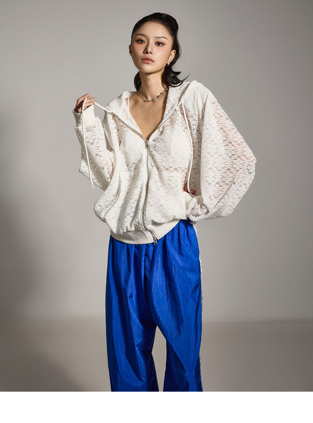 模特身高 171 厘米,穿着均码的蓝色衣服。