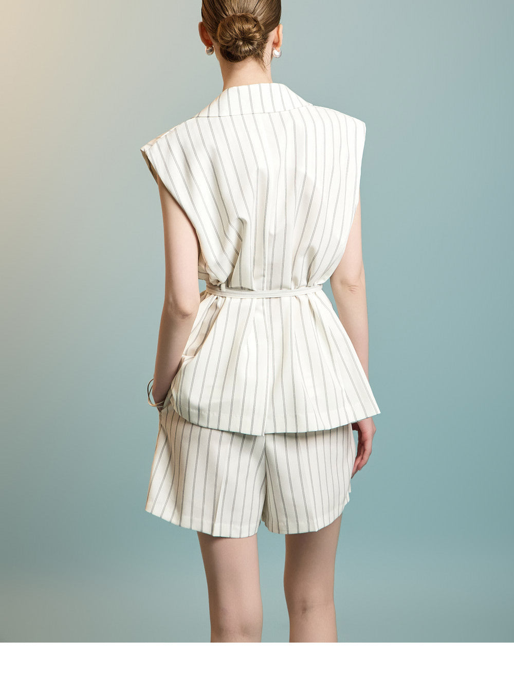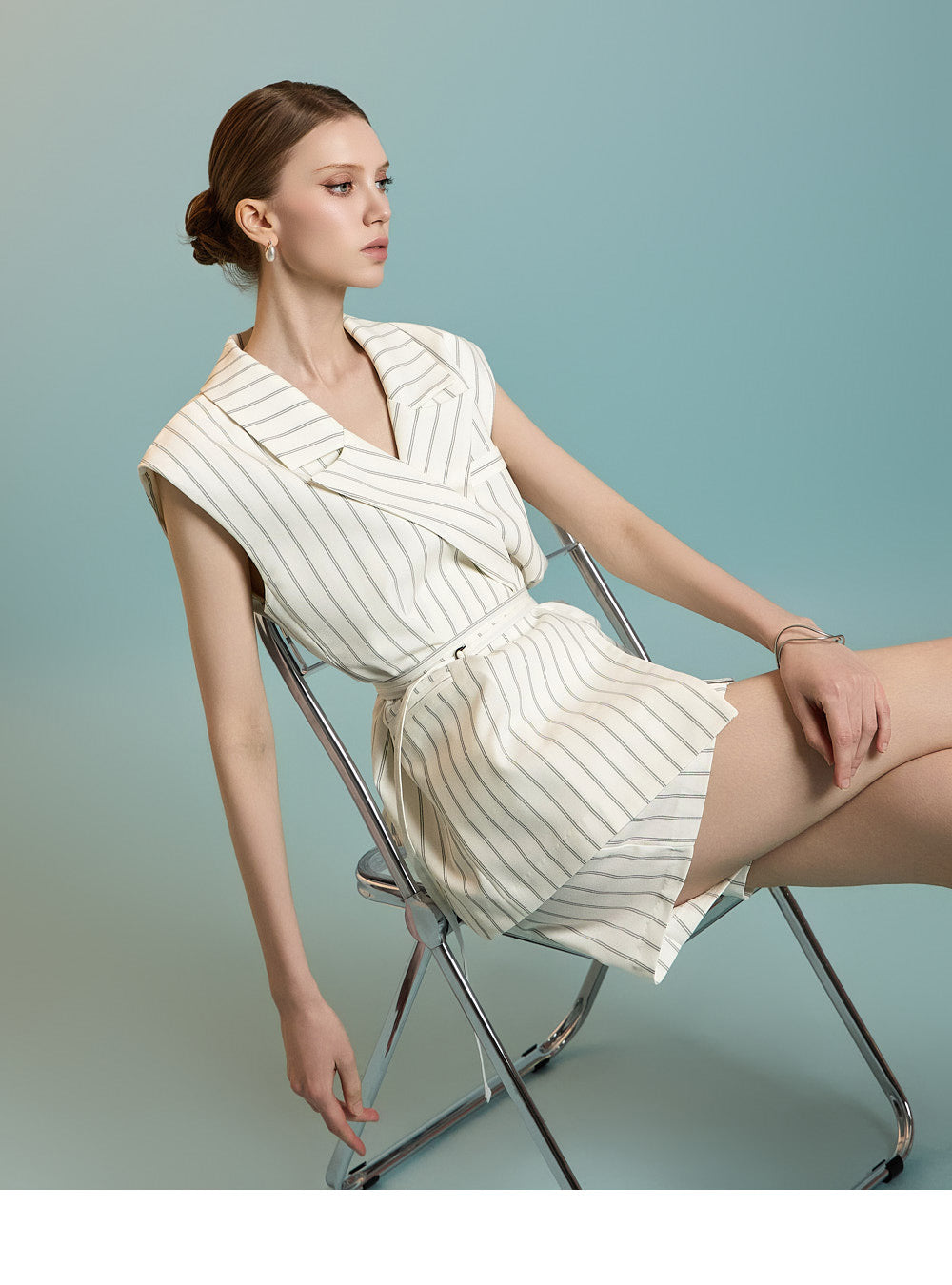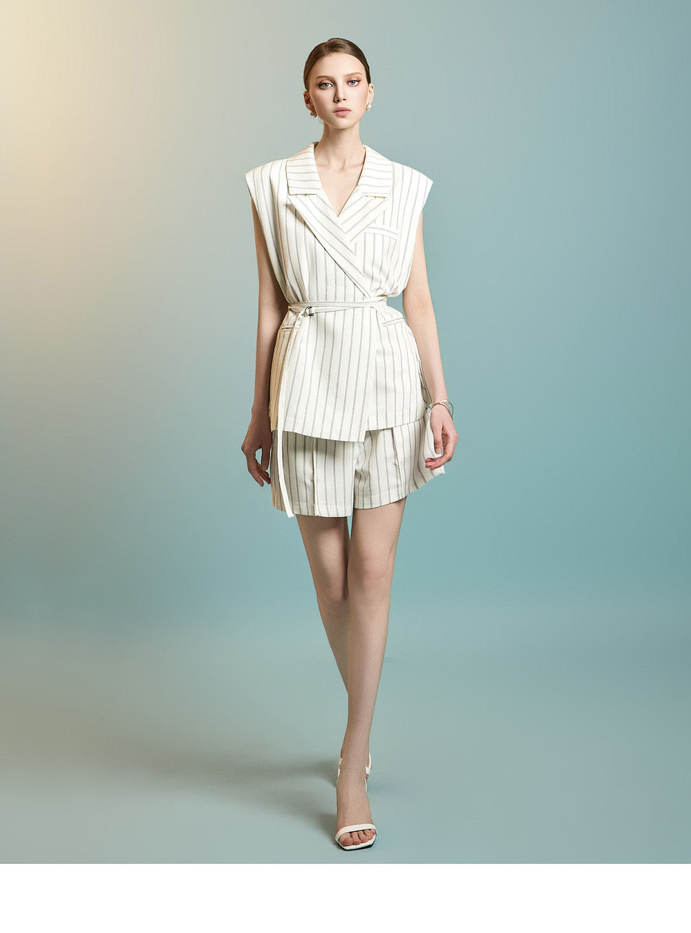 模特身高 174 厘米,穿着象牙色 S 码的衣服。