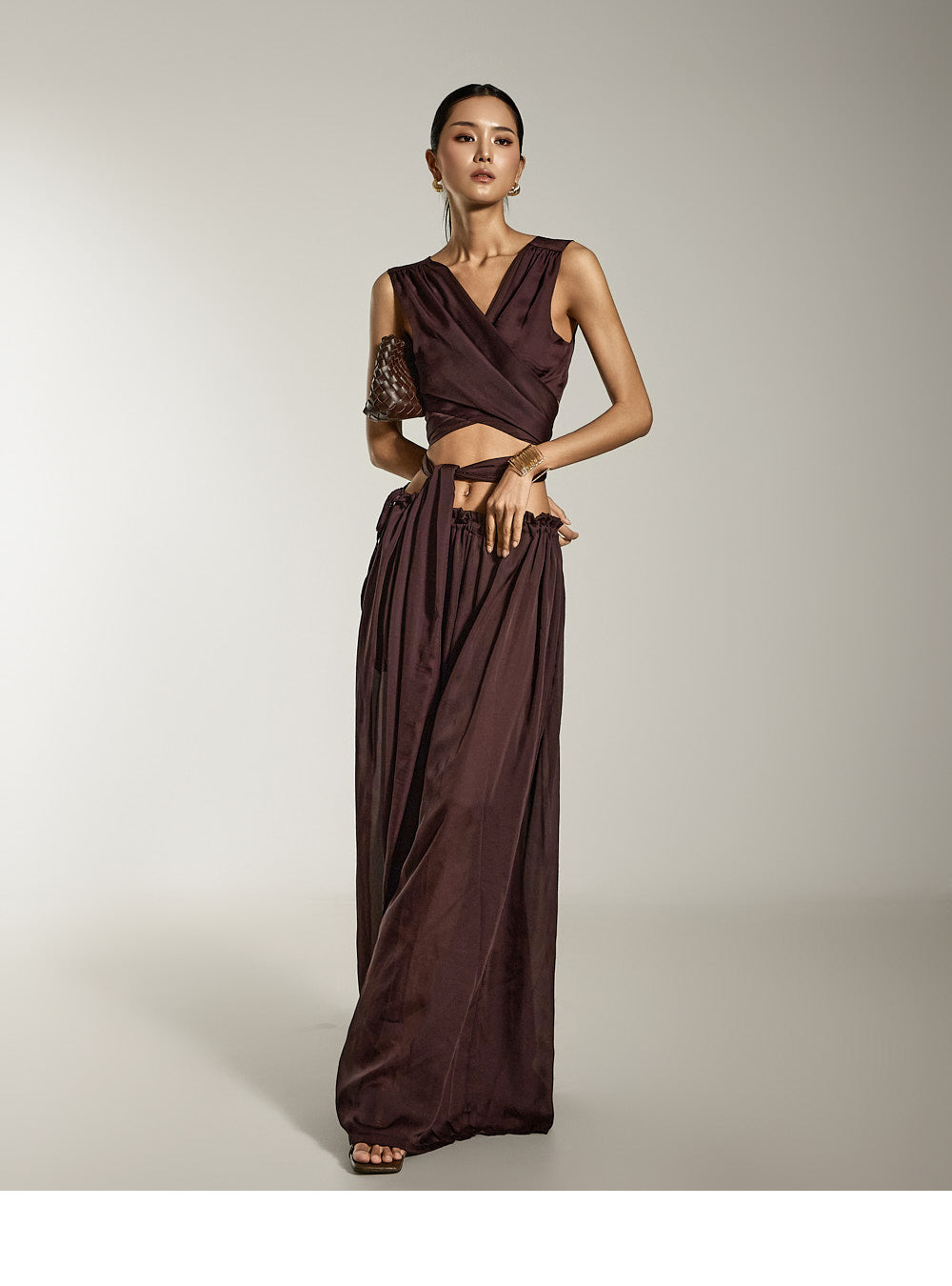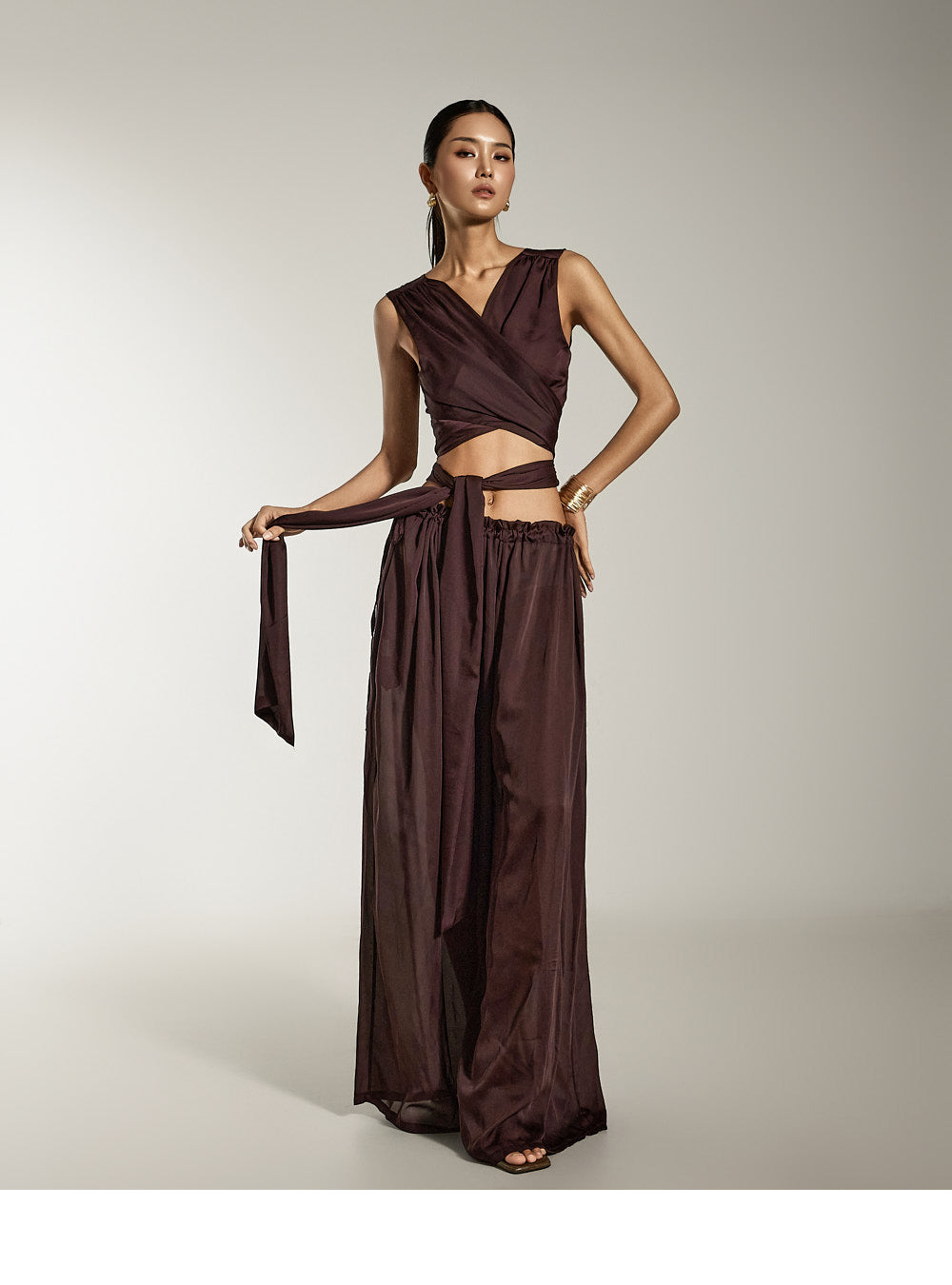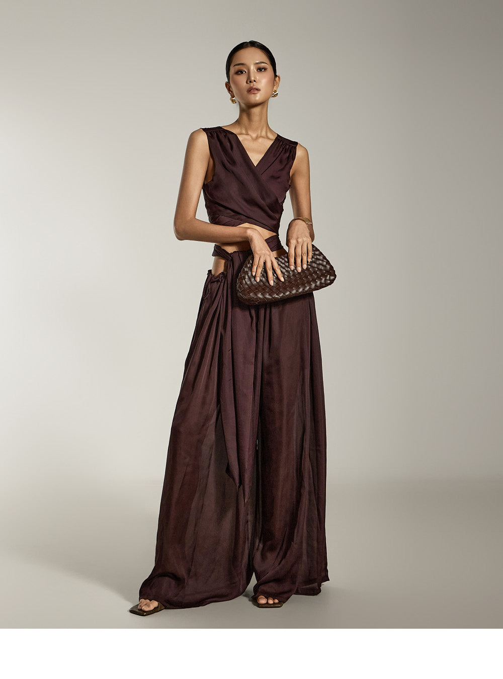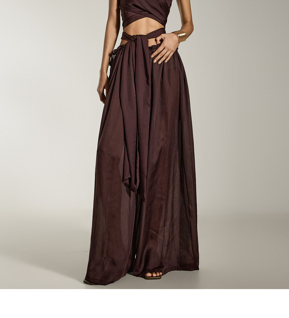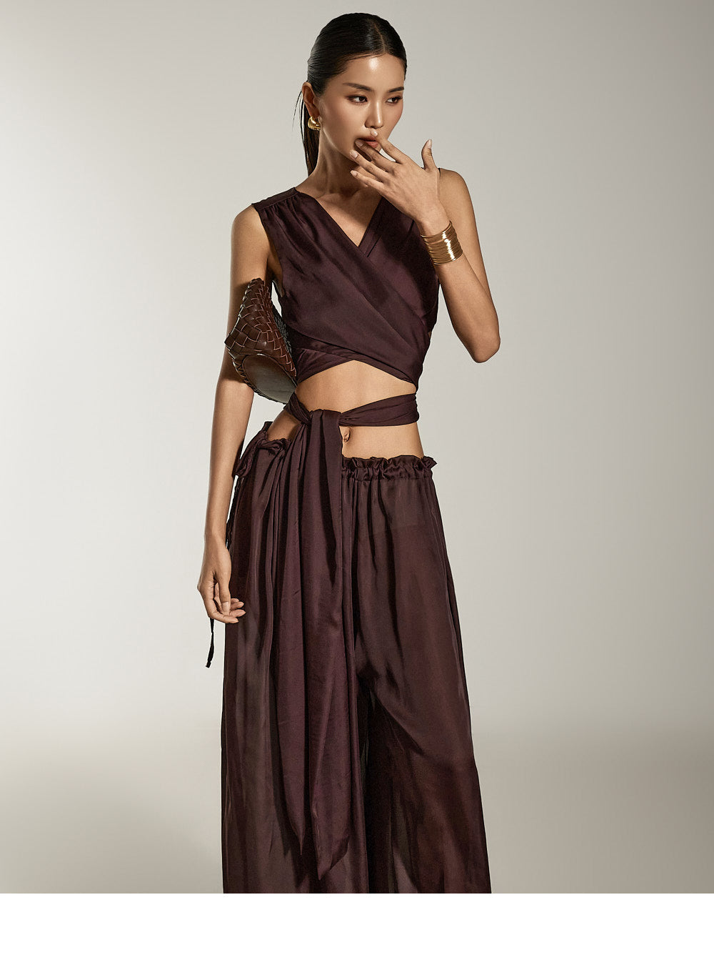 这是缎面宽裤,具有别致而现代的气息。
