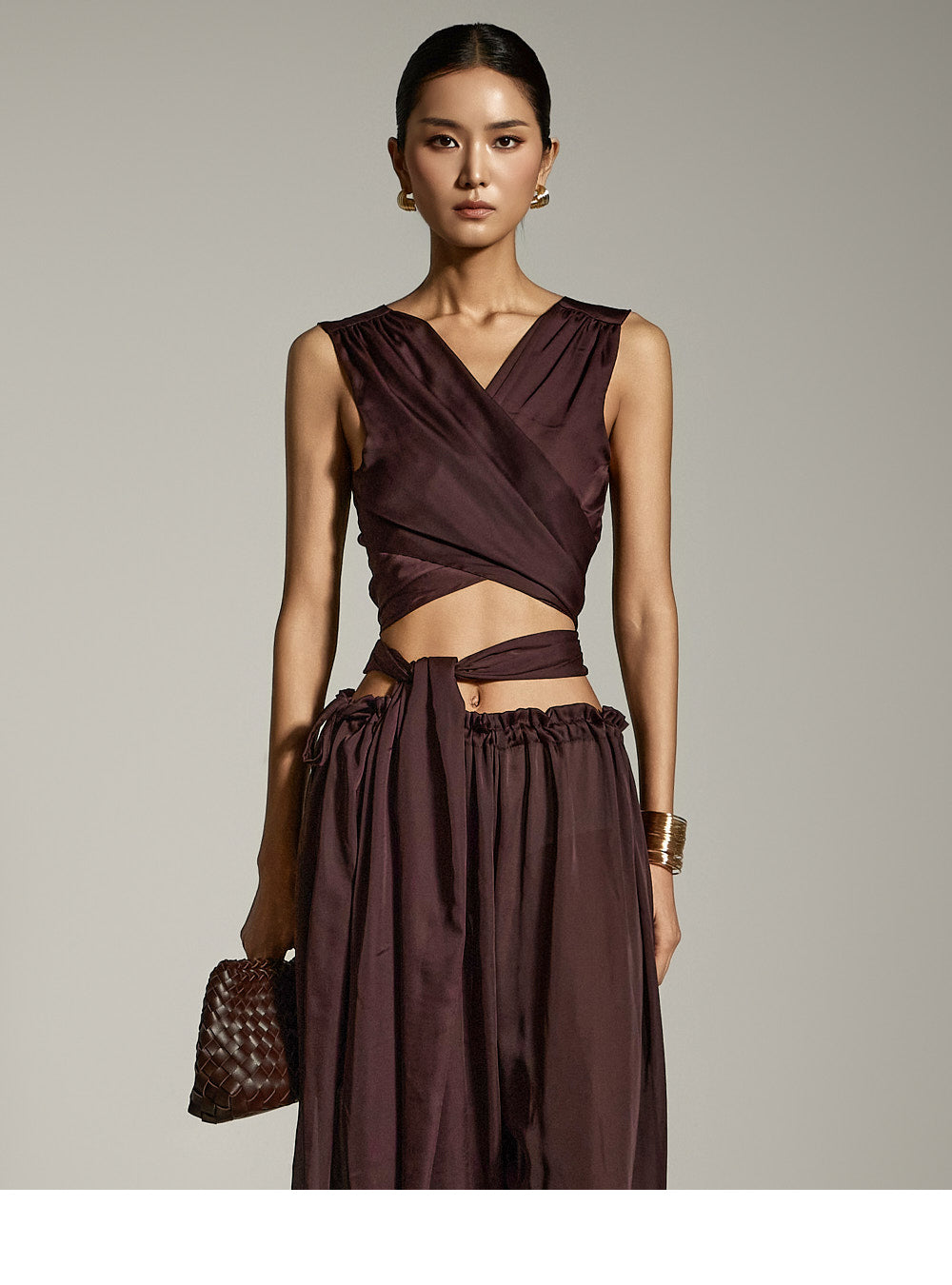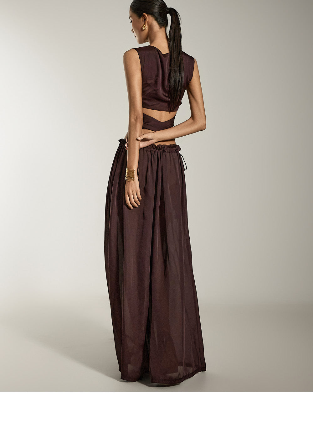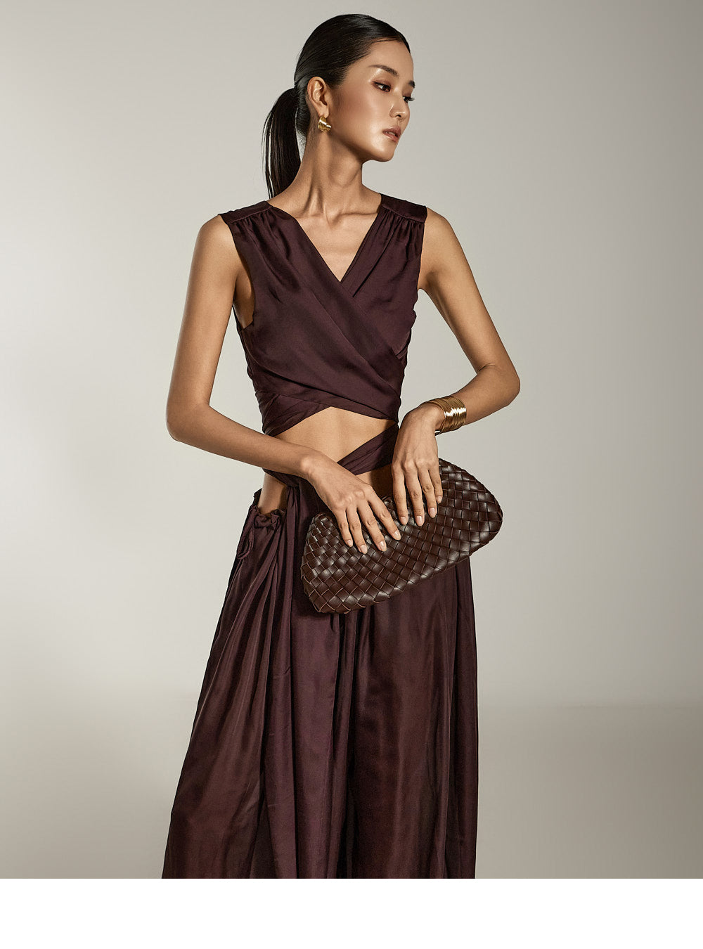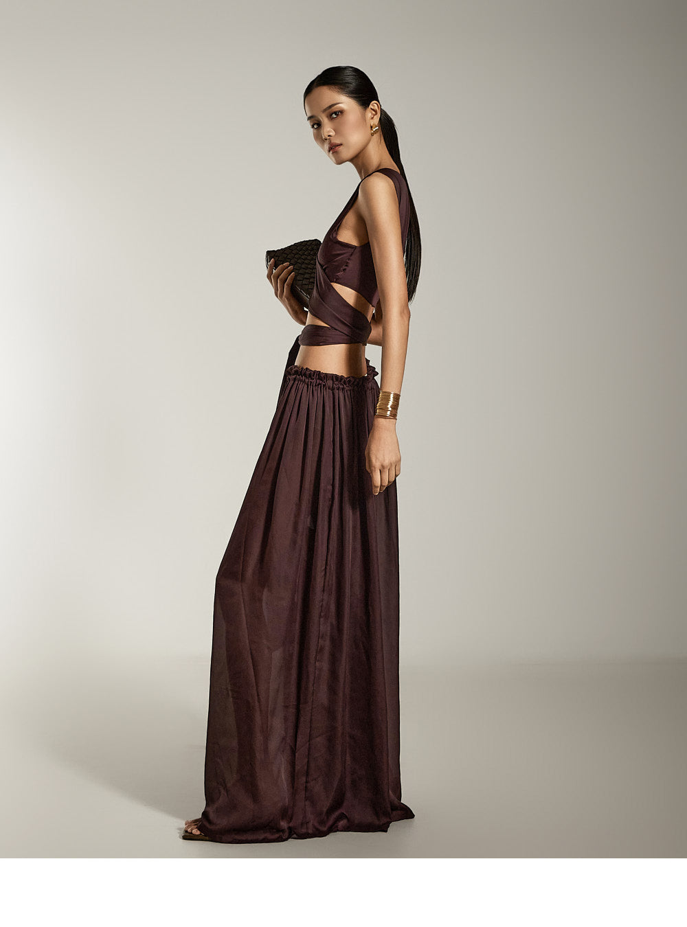 这是缎面宽裤,具有别致而现代的气息。