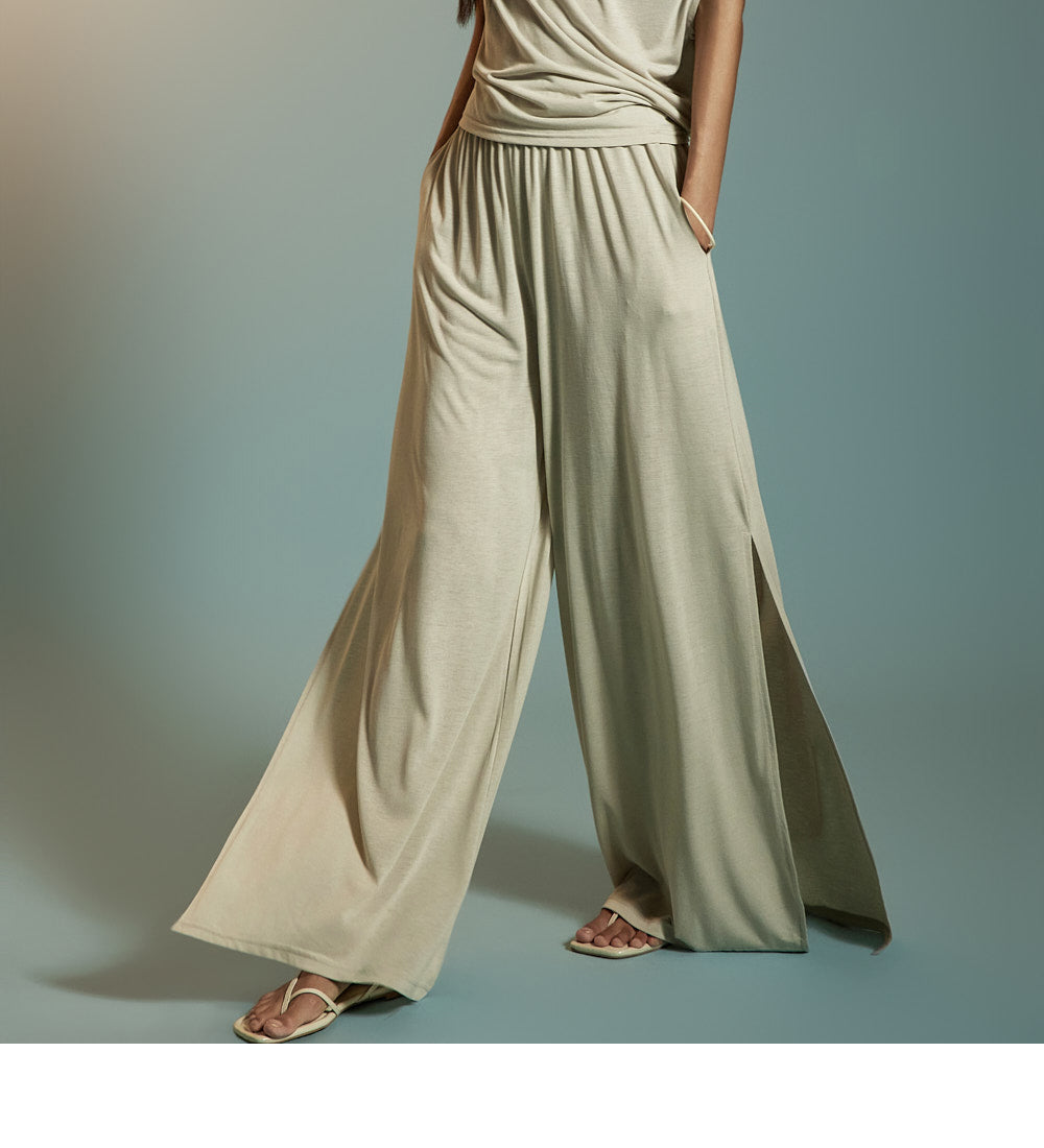 这是一条休闲风格的收腰阔腿裤。