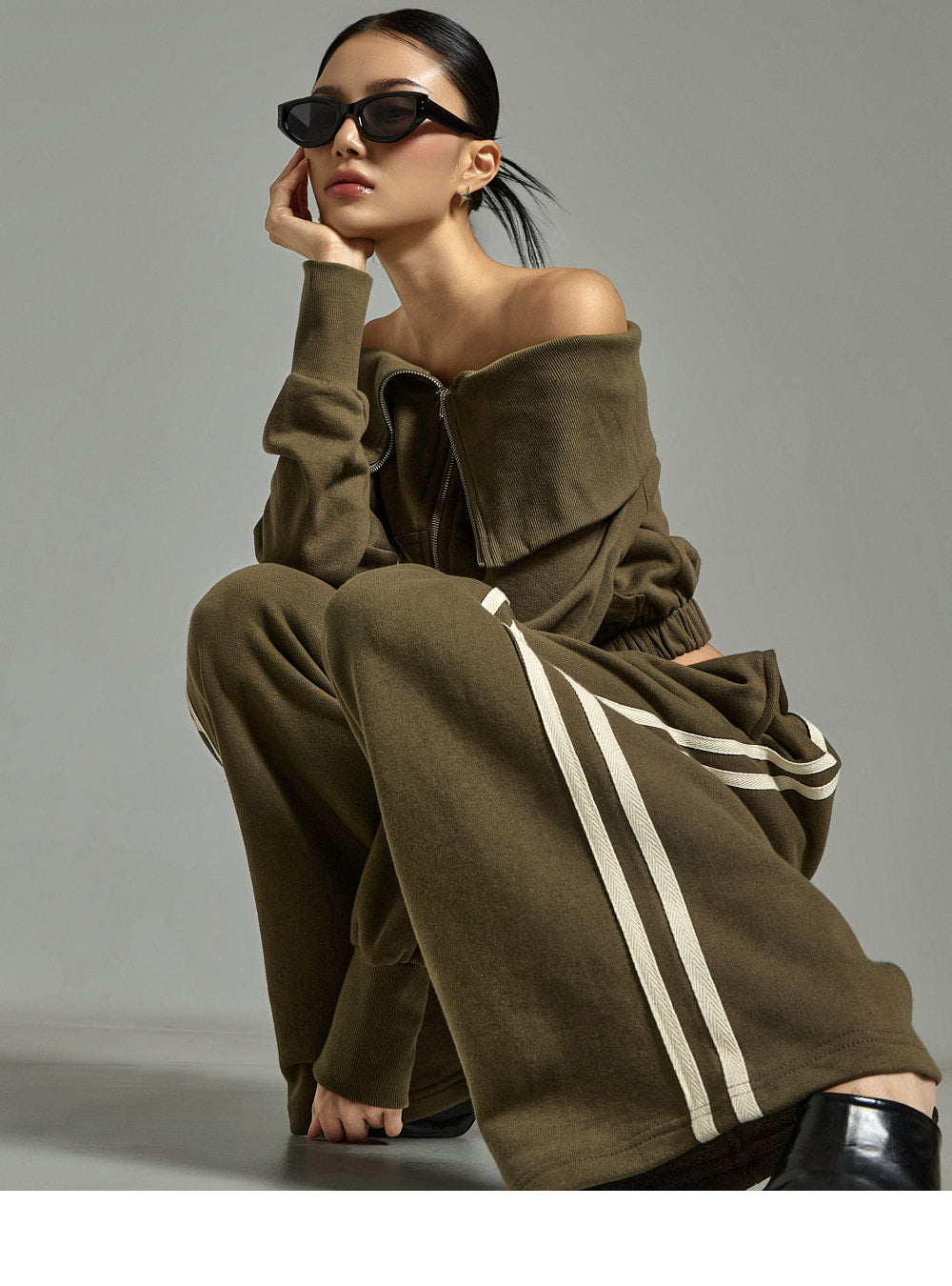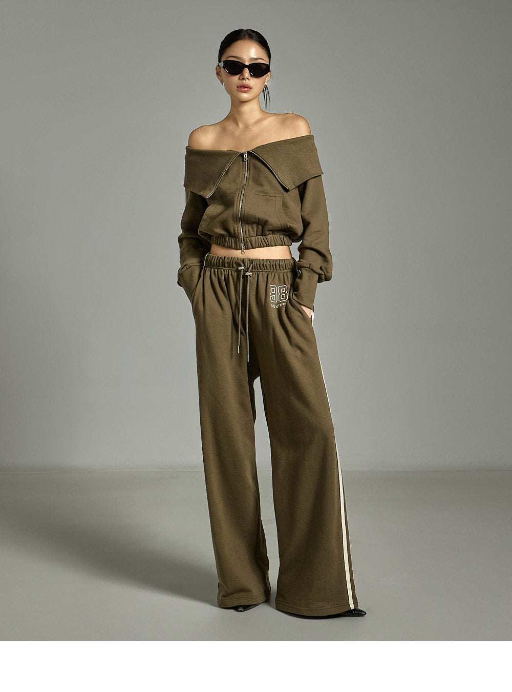 The 171cm model is wearing size ONE in the KHAKI color.