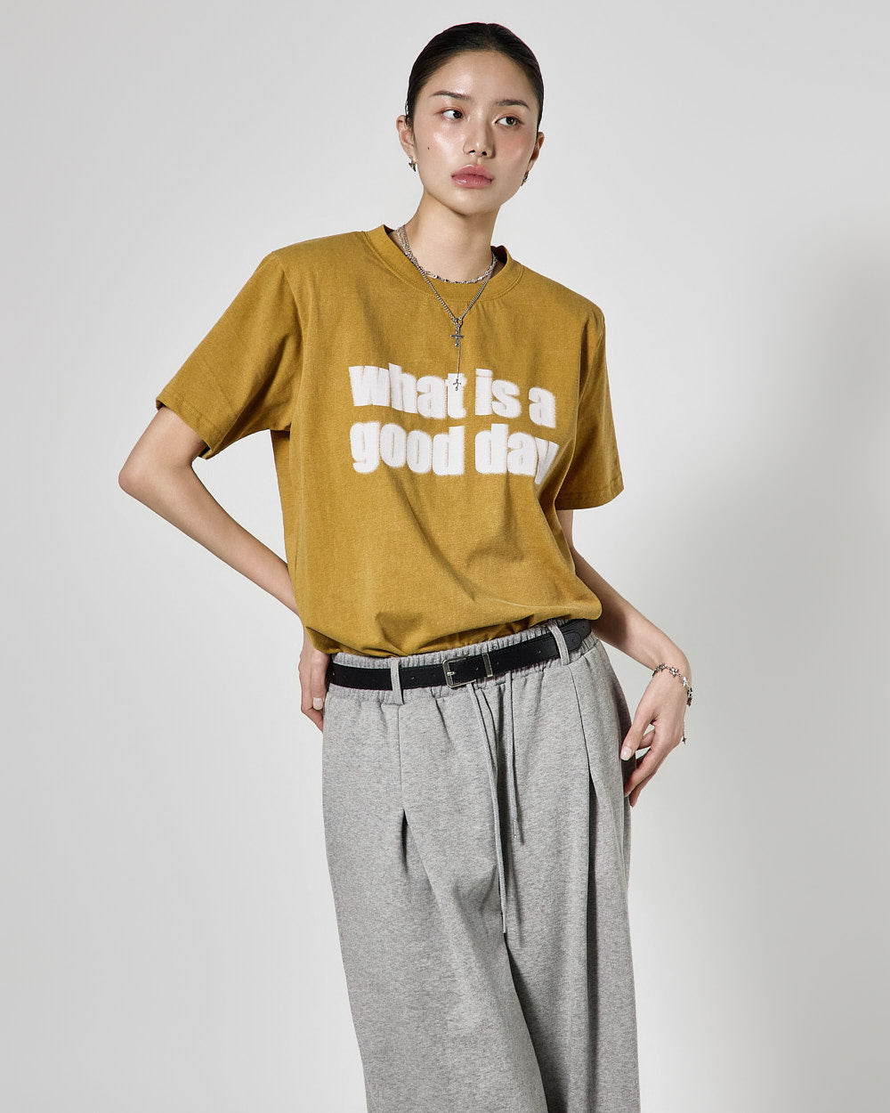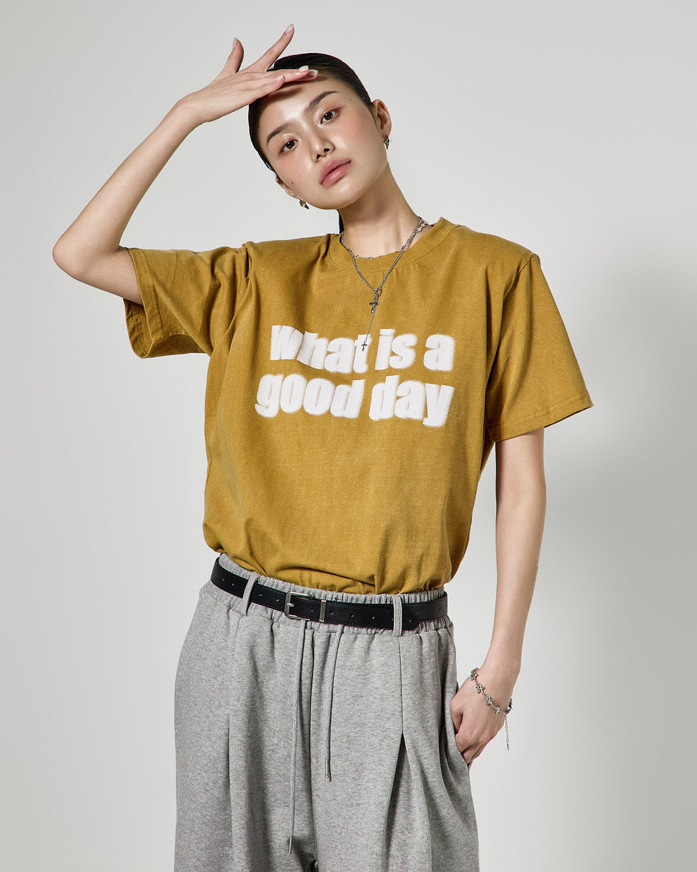 The 171cm model is wearing size ONE in GRAY.