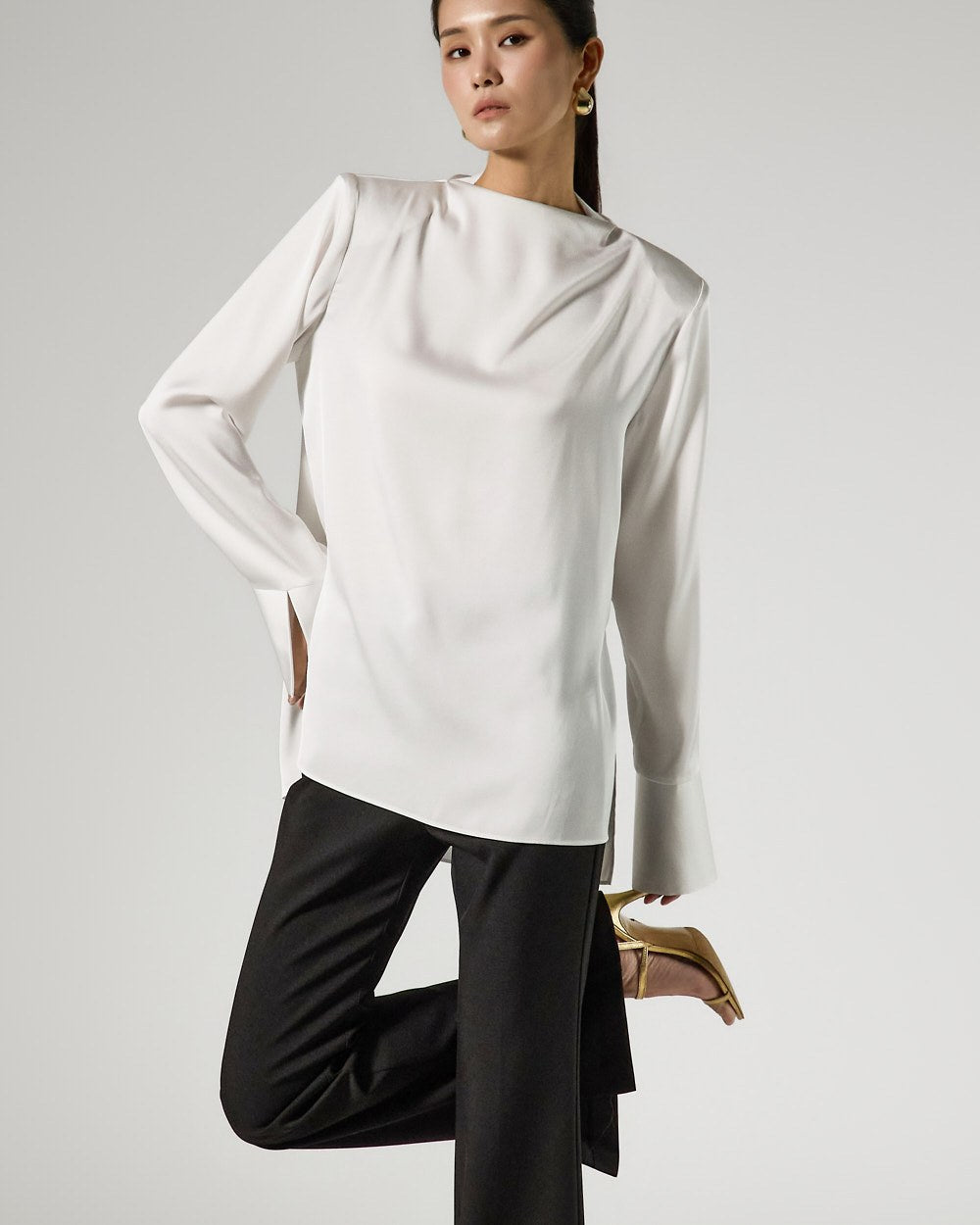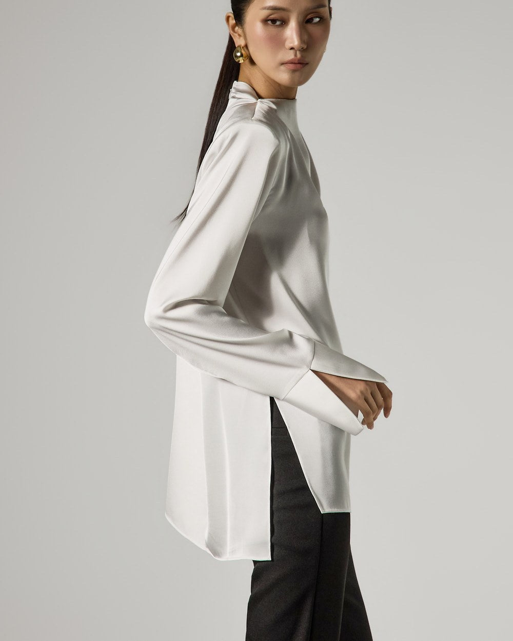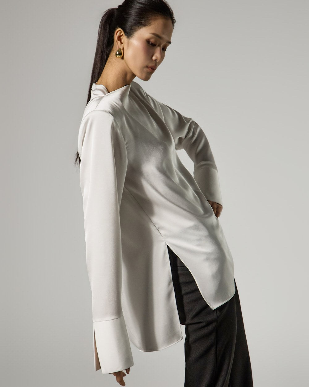 The added hem slit detail enhances mobility and