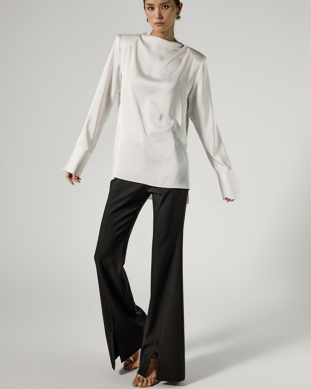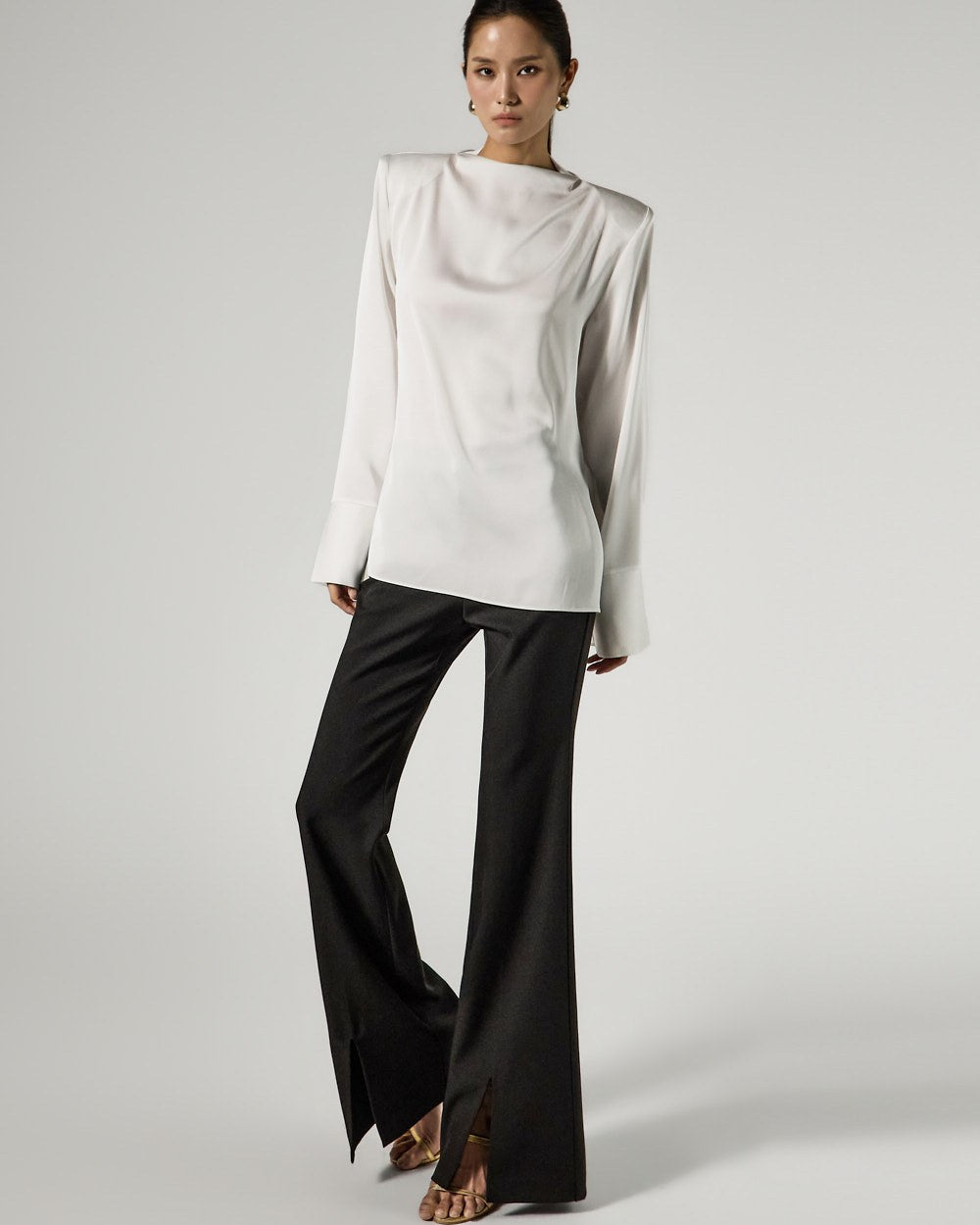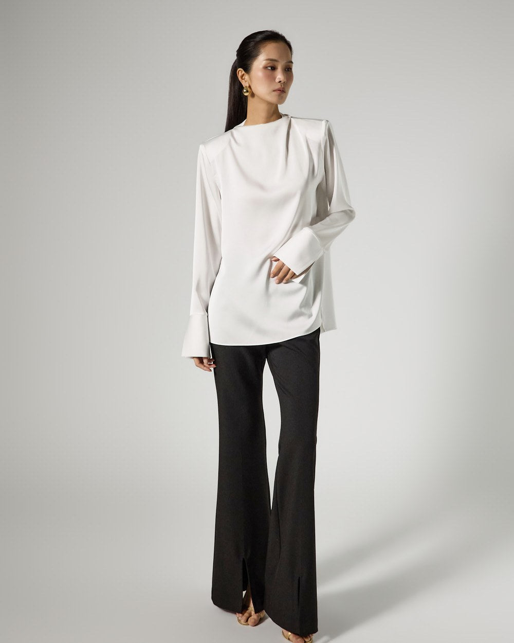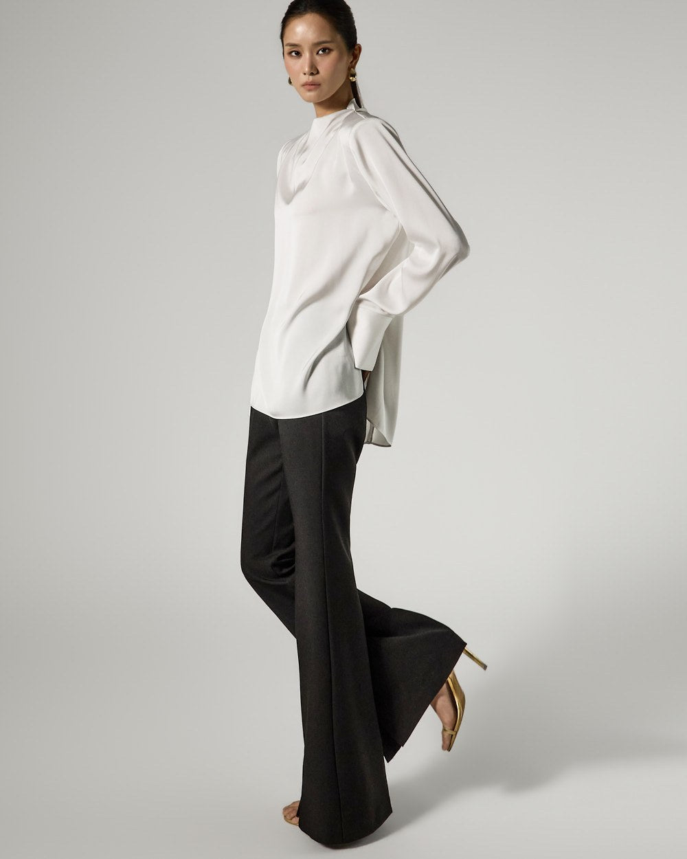 and the silhouette flares slightly towards the hem,