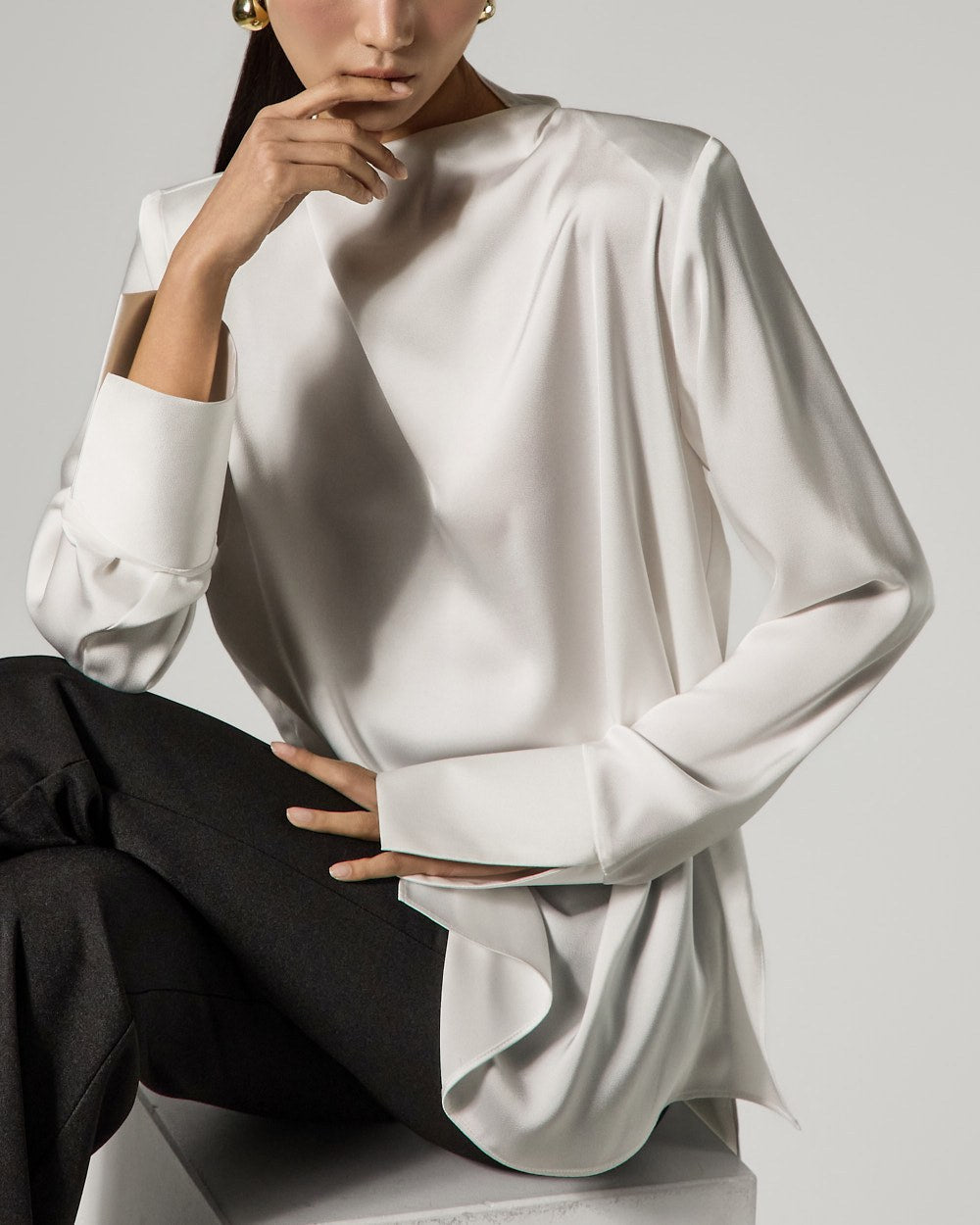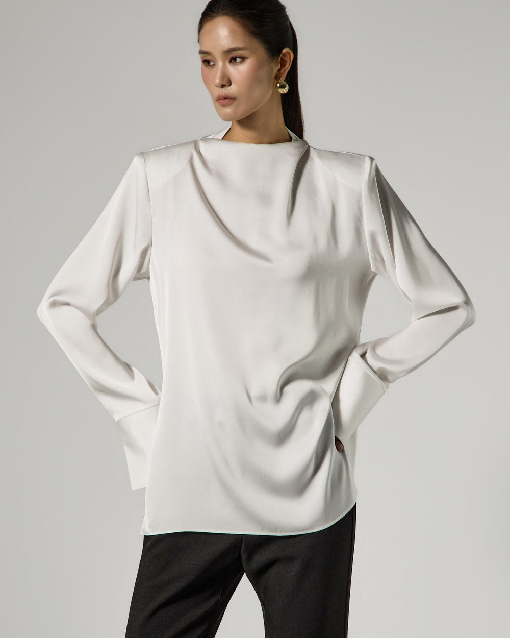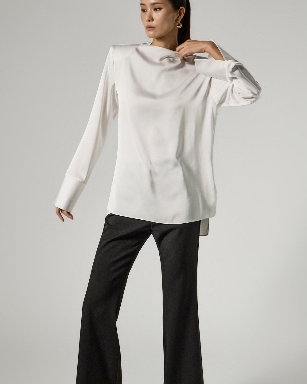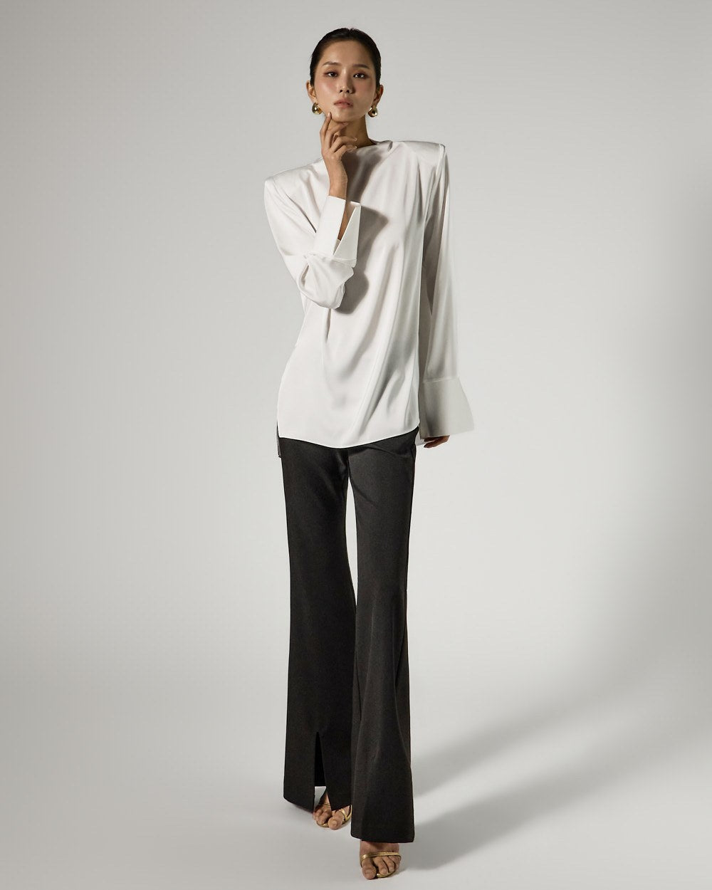and the silhouette flares slightly towards the hem,