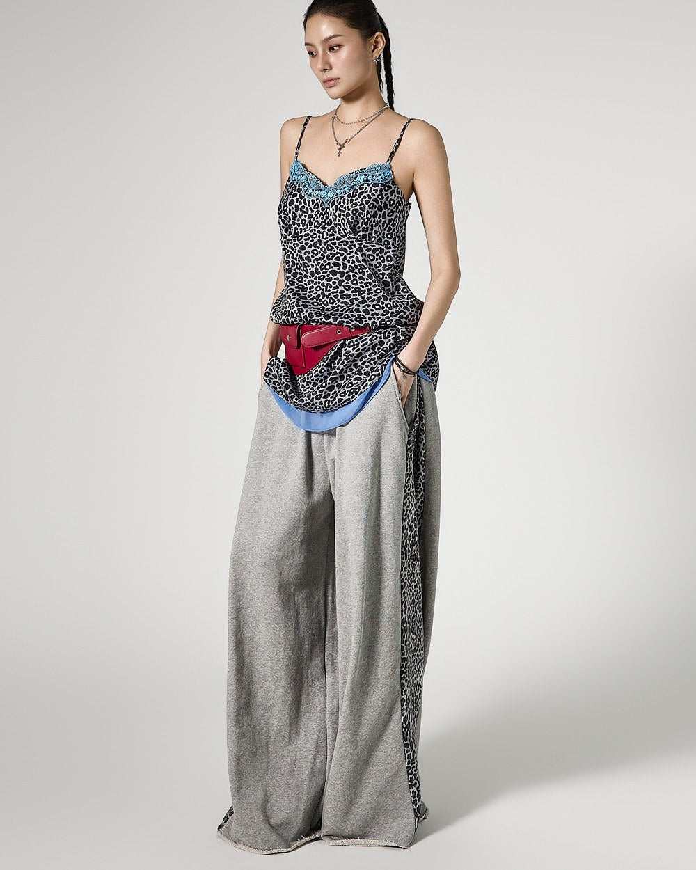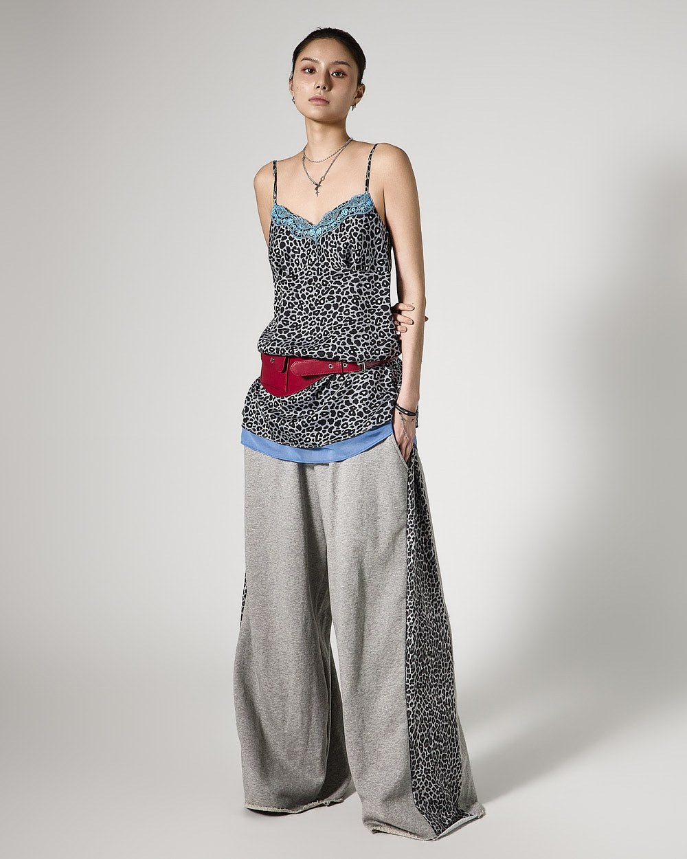 P3758 豹纹撞色运动裤