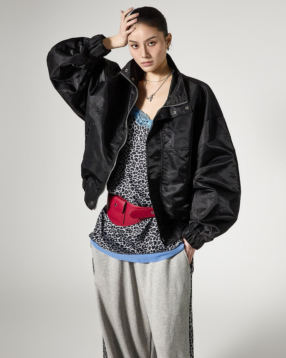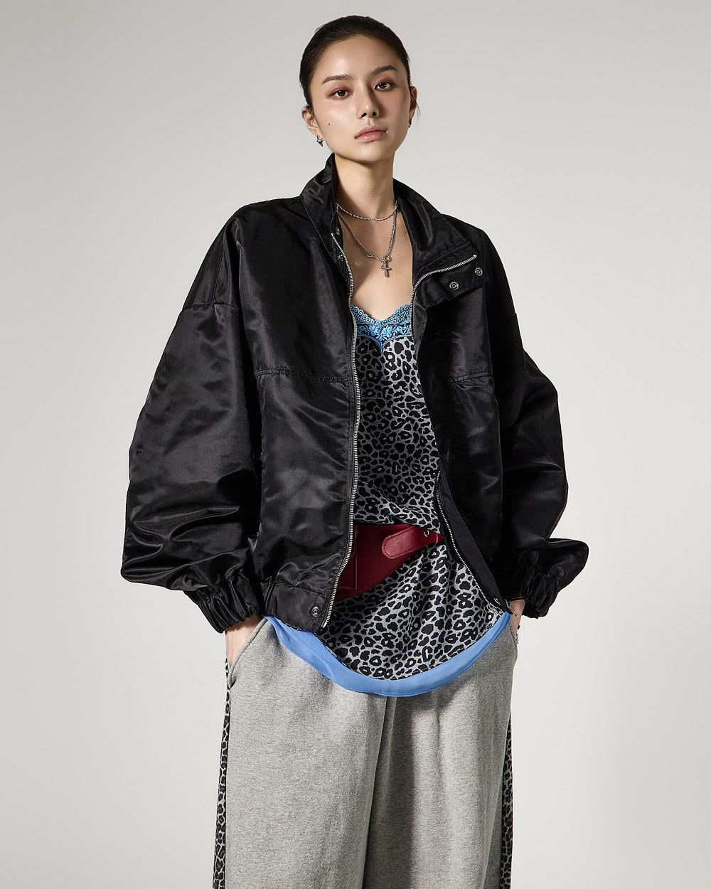 休闲设计辅以豹纹撞色点缀,