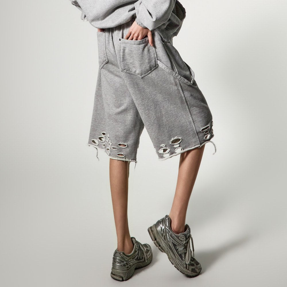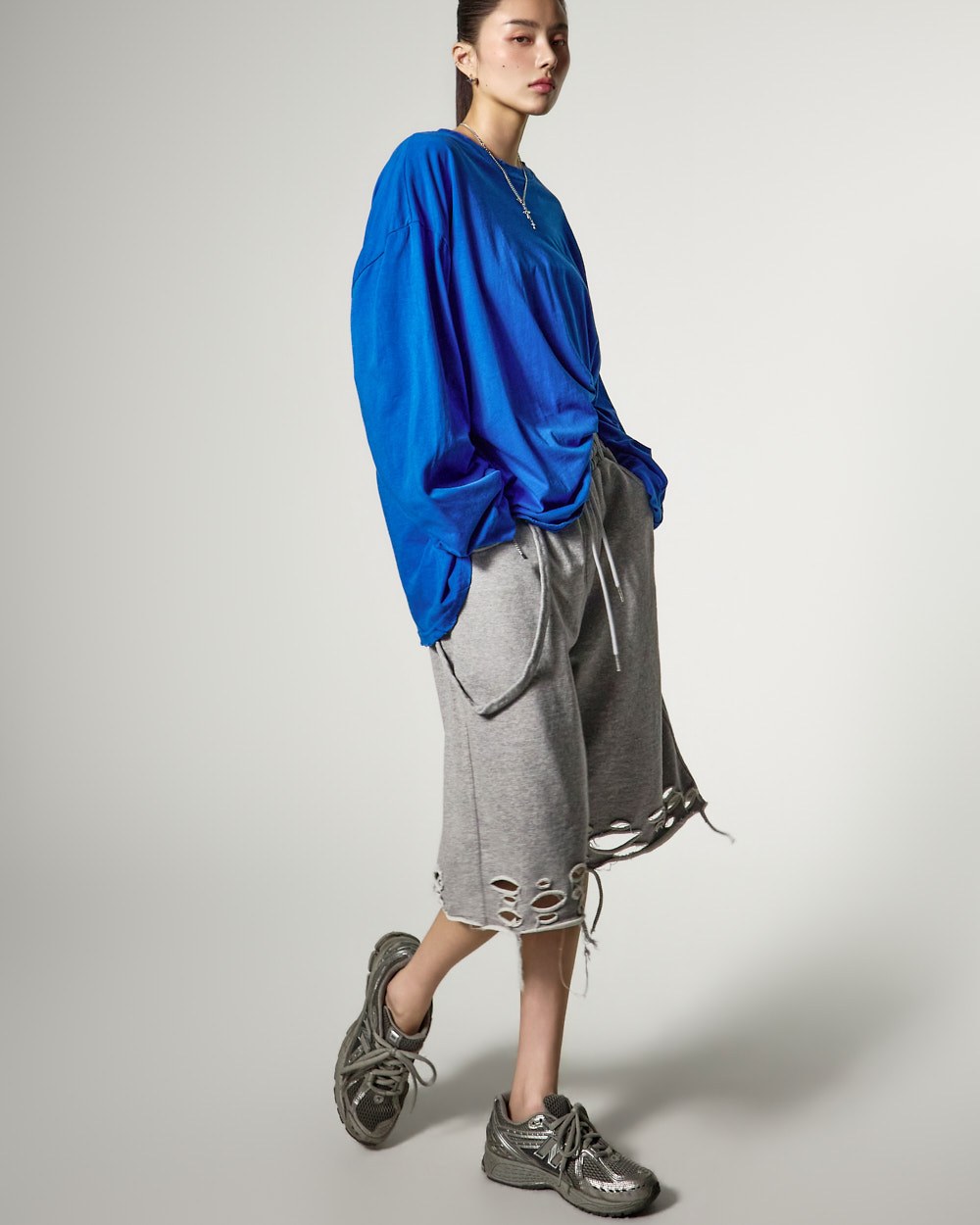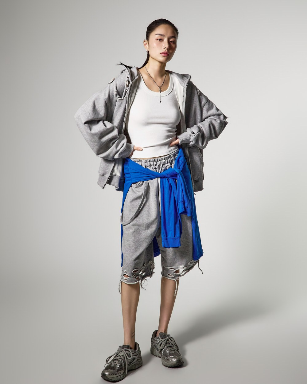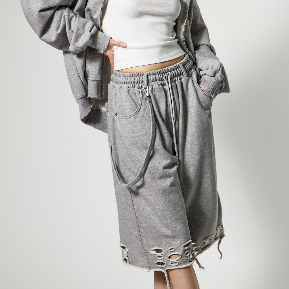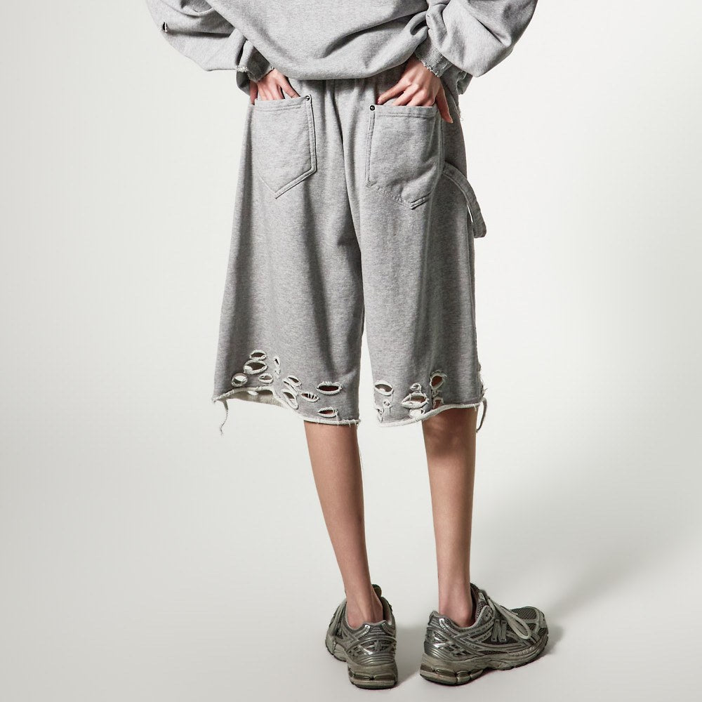 裤脚的自然剪裁和破损细节